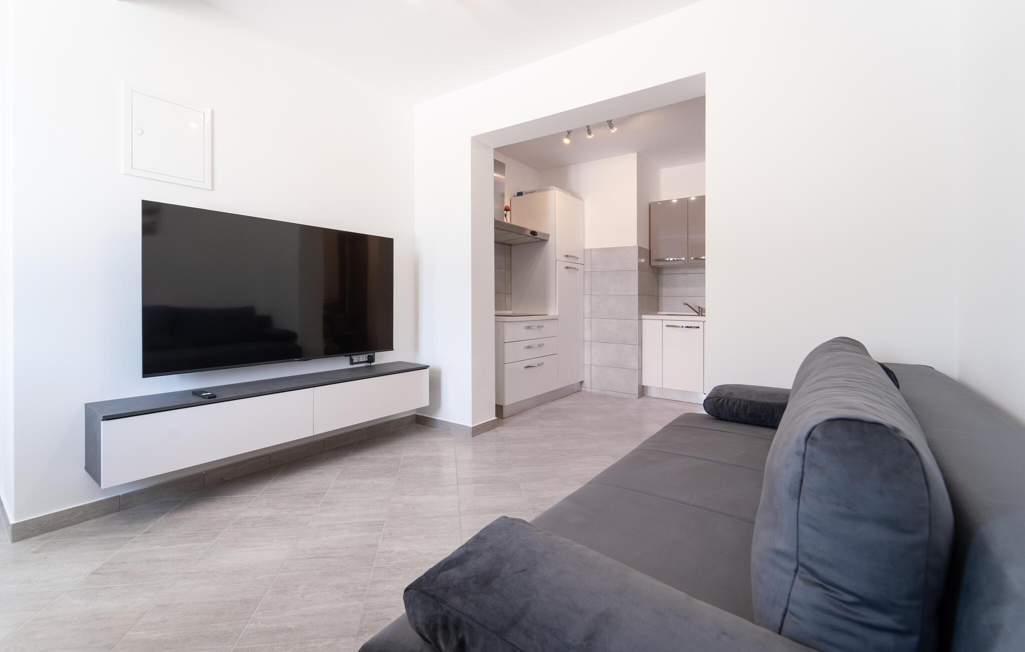 Denne moderne ferielejlighed er noget særligt med sit enkle, elegante design og stilfulde indretning. Tilbered lækre retter i det moderne køkken og Begynd dagene med en afslappet morgenmad her. Nyd afslappende timer i den behagelige sofa, stream jeres yndlingsfilm på det store fladskærms-tv eller hel jer til en god bog, som I ikke har tid til i hverdagen.