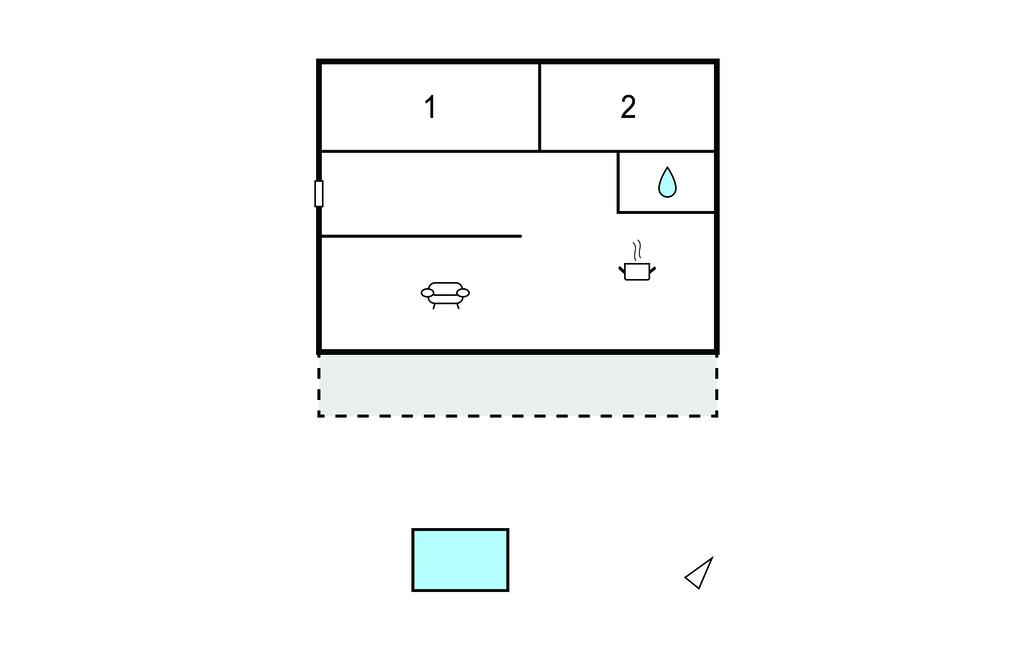 Opholdsstue/køkken 20m2 - 2 Sovepladser. (Sofa, madras eller lignende).
