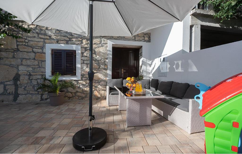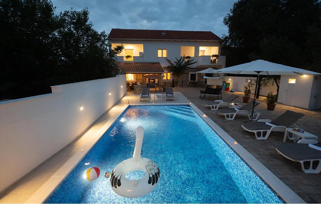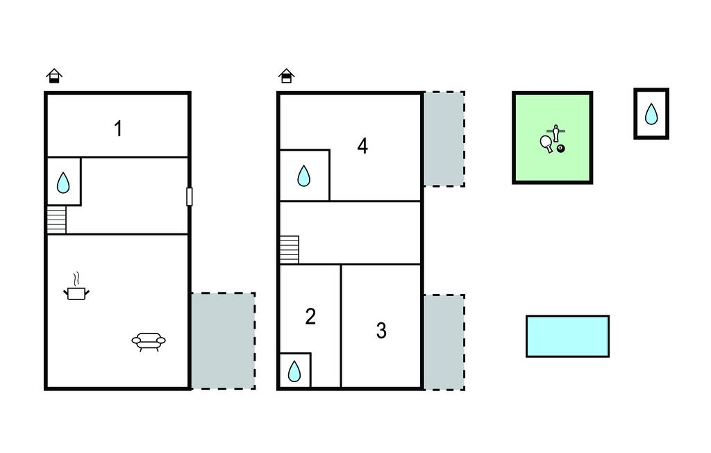 Dette charmerende feriehus tilbyder ideelle betingelser for en afslappende ferie i rolige omgivelser. Midtpunktet er det store poolområde med liggestole, en gyngestol og en grill, der lægger op til at slappe af og nyde det. Flere terrasser, hvoraf nogle er overdækkede, skaber hyggelige rum til fælles måltider eller afslapning i skyggen.