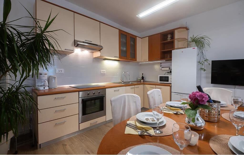 Indenfor finder I en komfortabel opholds- og spisestue med et fuldt udstyret køkken. Bordfodbold, bordtennis og et spillehjørne sørger også for underholdning for familier.
