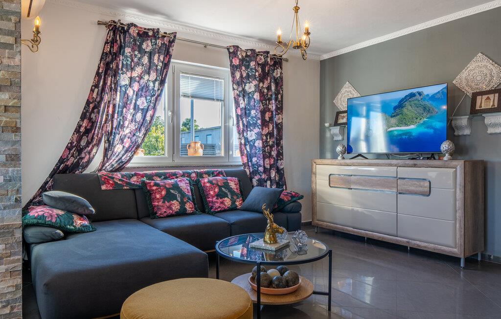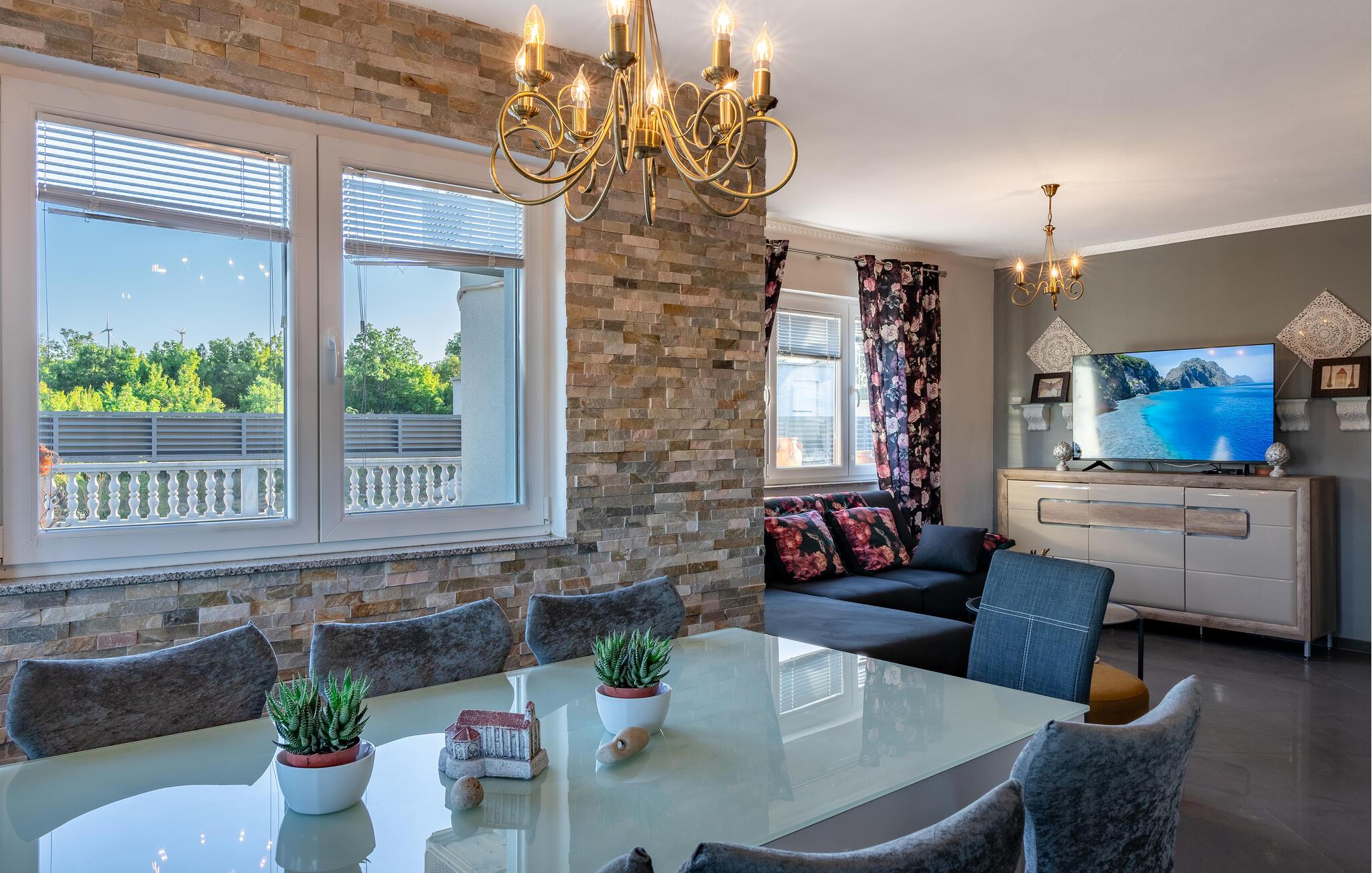 Dette rummelige feriehus har et komfortabelt og kærligt møbleret interiør, hvor selv en større familie kan nyde afslappende dage med moderne bekvemmeligheder. Tilbered lækre måltider, planlæg jeres aktiviteter over hyggelige måltider, og slap af efter en lang dag med en film eller en spilleaften i den indbydende stue.