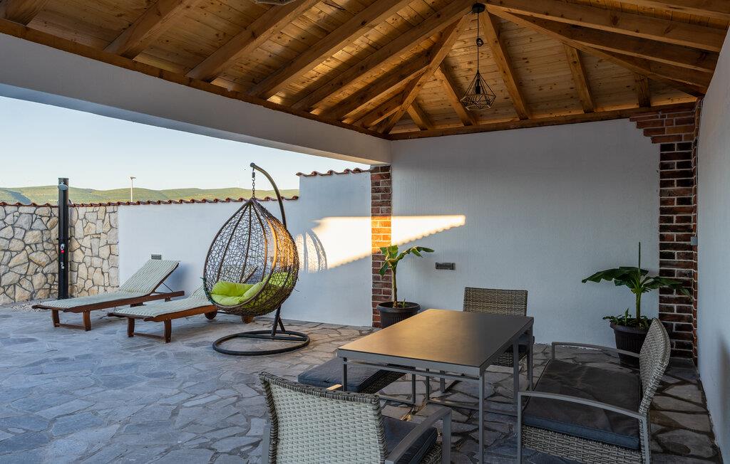 Jeres private terrasse inviterer jer til hyggestunder i timevis under den blå himmel. Forfrisk jer selv i poolen, når I har lyst, lad batterierne op på liggestolene og få en god snak over vin og stearinlys til langt ud på de lune sommernætter.