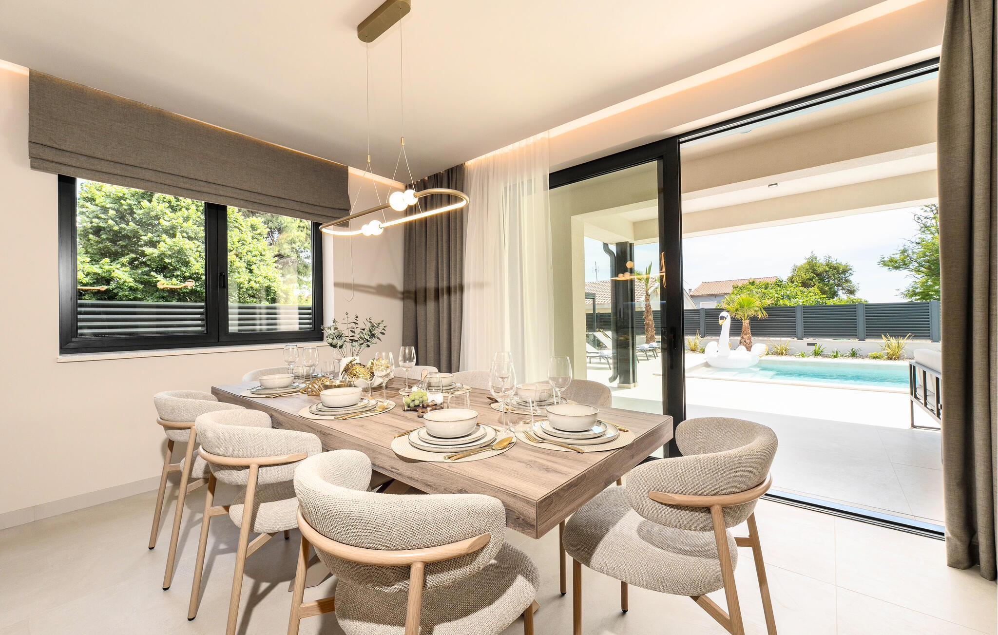 Denne moderne luksusvilla forkæler jer med et lyst, stilfuldt og eksklusivt interiør samt adskillige komfortable ekstrafunktioner. Server et glas vin, mens I tilbereder kulinariske lækkerier i det åbne køkken, og fejr jeres tid sammen med stemningsfulde måltider i den elegante, åbne opholdsstue. Sæt jer i den komfortable designersofa, og stream jeres yndlingsserier.