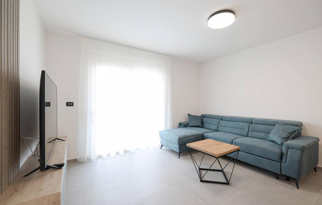 Hold en afslappende familieferie i denne moderne lejlighed ved havet med stilfuld komfort.