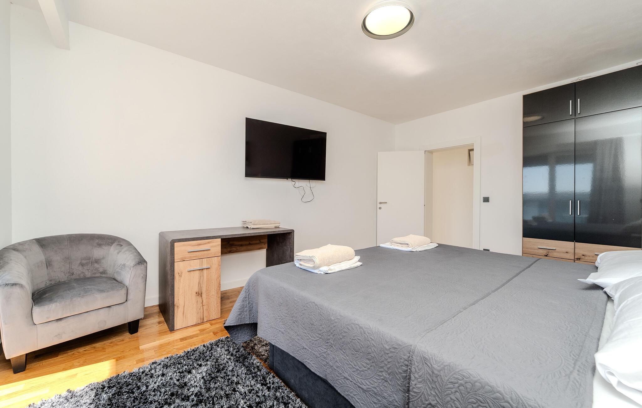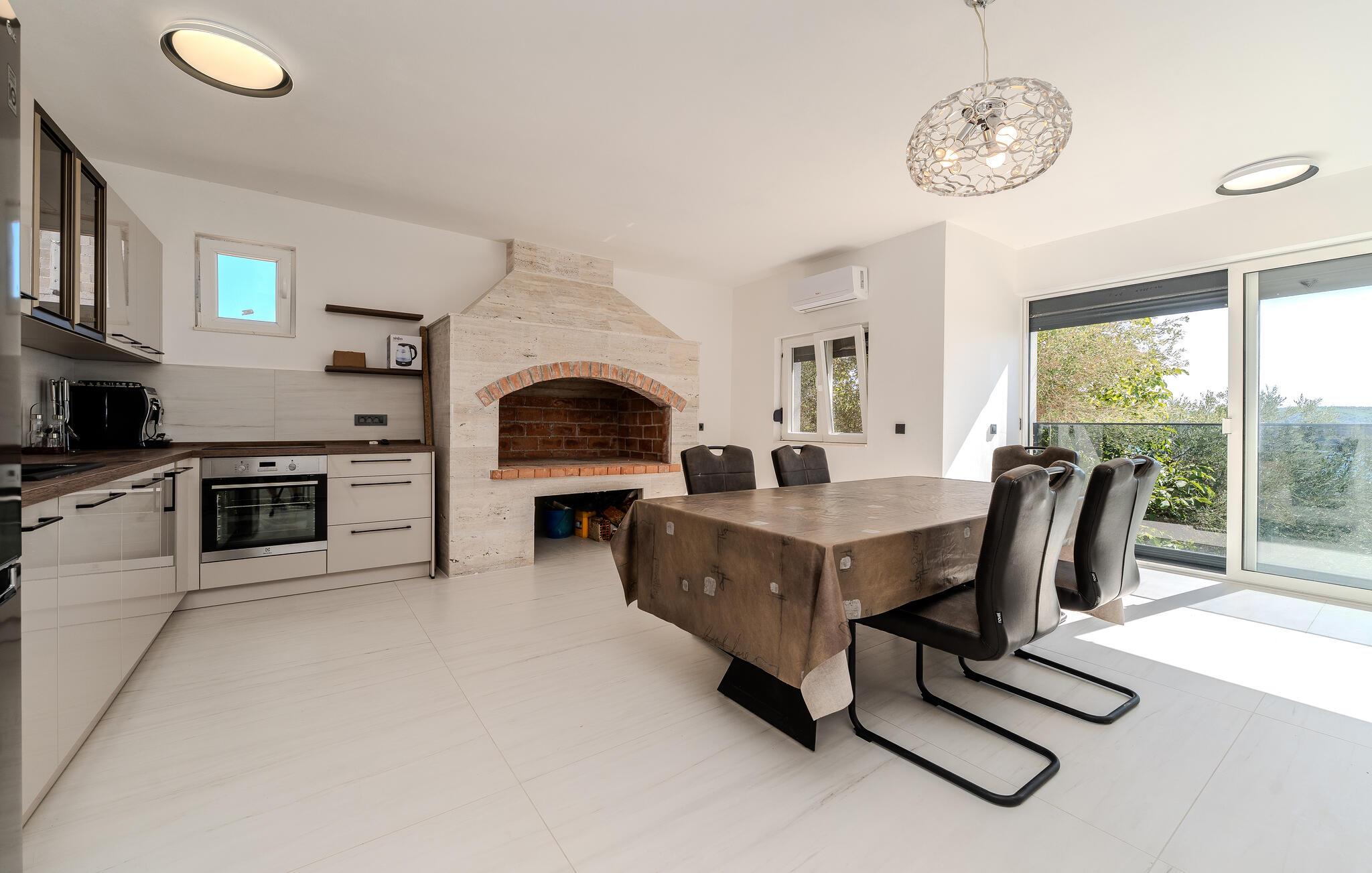 Oplev en afslappende ferie i dette praktiske feriehus med en fantastisk havudsigt. Huset er indrettet i diskrete farver og tilbyder alt, hvad I behøver for en afslappende flugt fra hverdagen. Slap af her og nyd jeres velvære præcis, som I ønsker. Gulv-til-loft-vinduer lukker ikke kun masser af lys ind, men tilbyder også en fantastisk udsigt over havet. I det moderne udstyrede køkken kan I tilberede lækre måltider og servere dem med et glas vin. Gå en afslappet tur til stranden og nyd det klare vand og den rolige atmosfære ved Rtina-kysten. Tag en tur til den nærliggende by Zadar, hvor historiske seværdigheder, livlige pladser og det berømte Havorgel venter på jer. Udnyt de mange svømmemuligheder i området – fra uberørte bugter til familievenlige strande. Naturelskere kan også nyde udflugter til nærliggende nationalparker som Paklenica eller øen Pag.