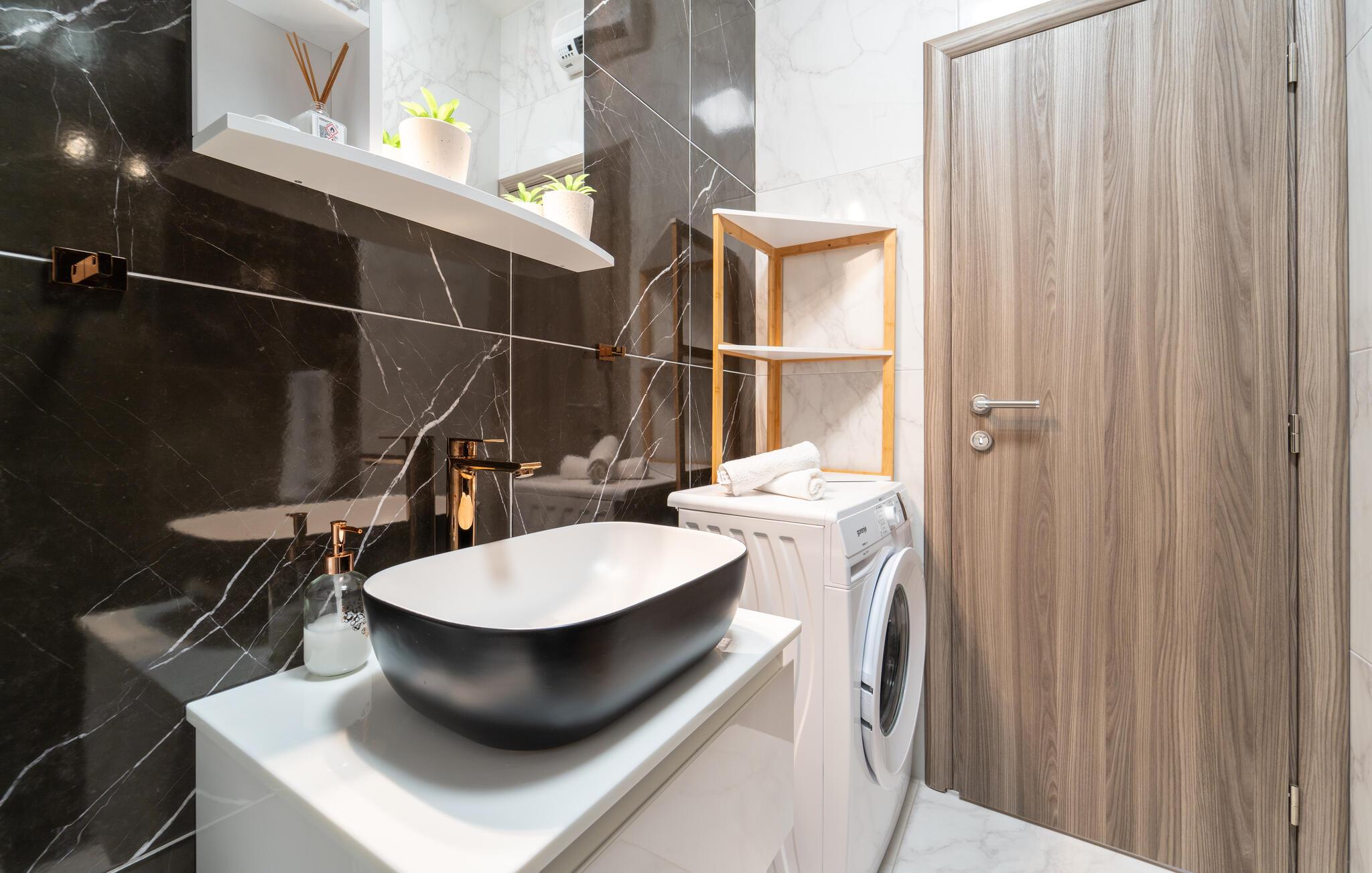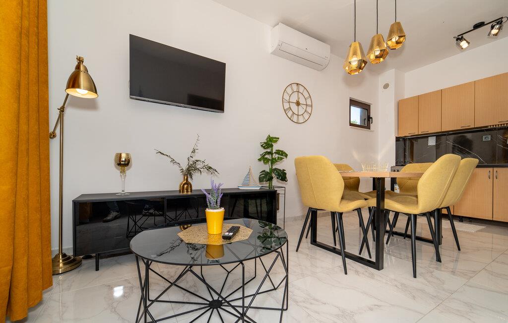 Dette feriehus tilbyder jer de ideelle rammer for afslappende dage ved den kroatiske adriaterhavskyst. Nyd roen på jeres feriedestination og drag fordel af nærheden til Paklenica Nationalpark og havet. Tilbring jeres tid i smagfulde værelser med moderne bekvemmeligheder. Det lyse køkken-alrum kombinerer stilfuldt design med praktiske funktioner. Brug det store spisebord til fælles måltider, og slap af i den behagelige sofa, mens I ser tv eller læser.