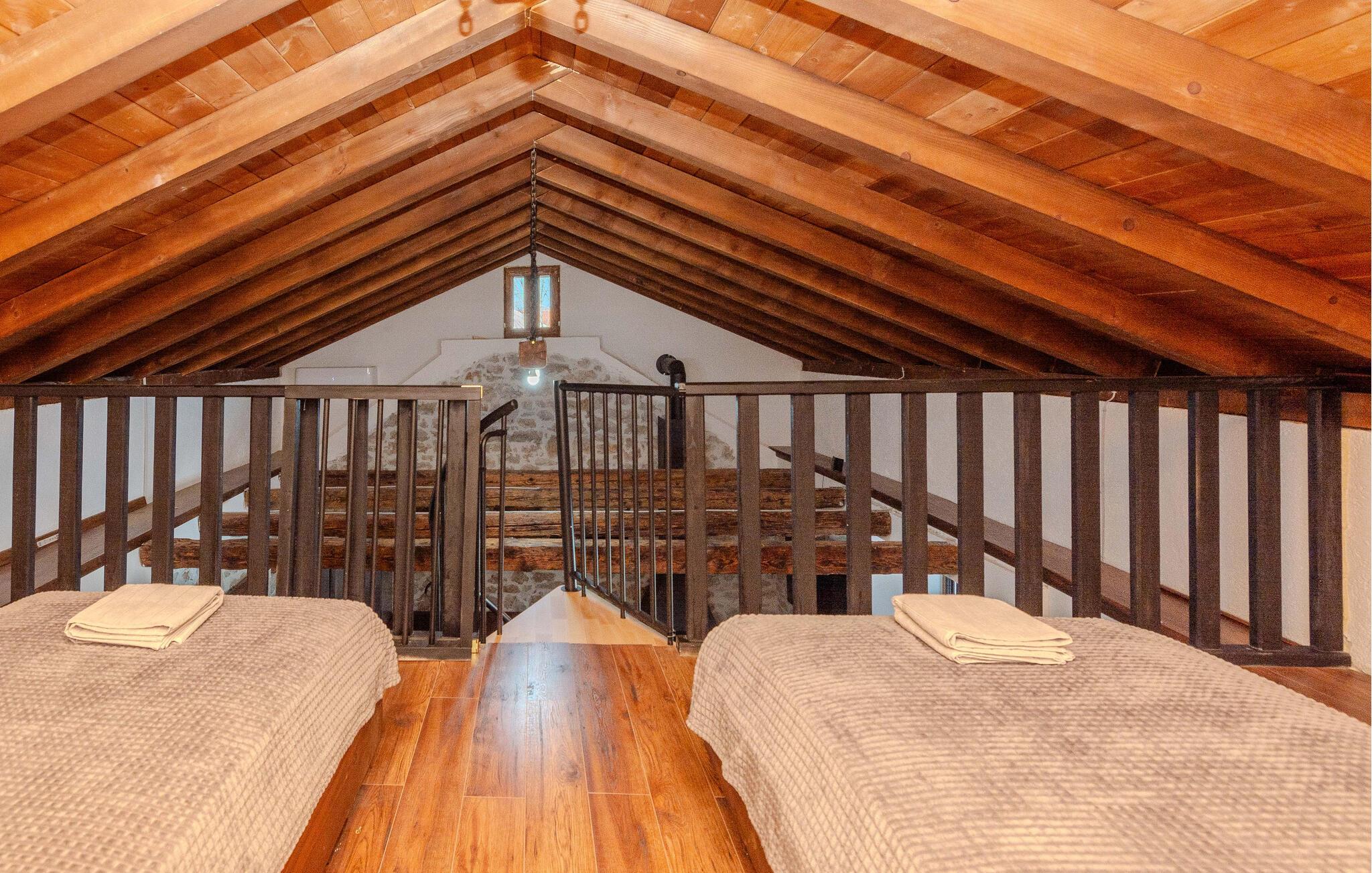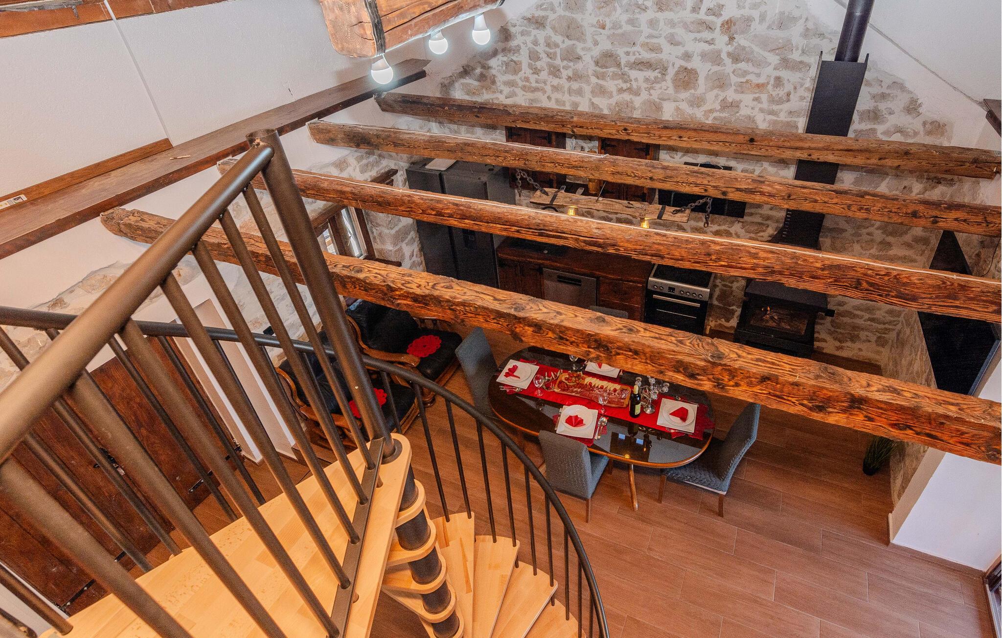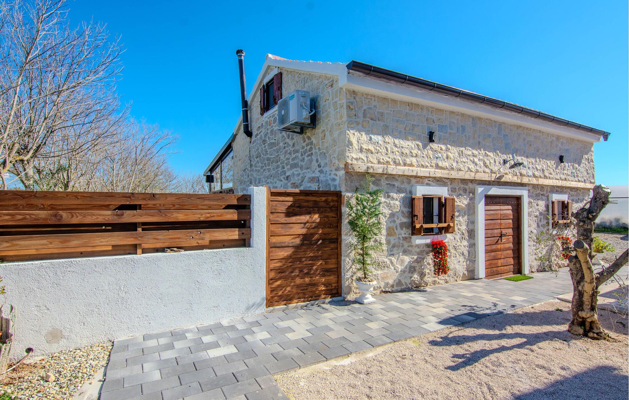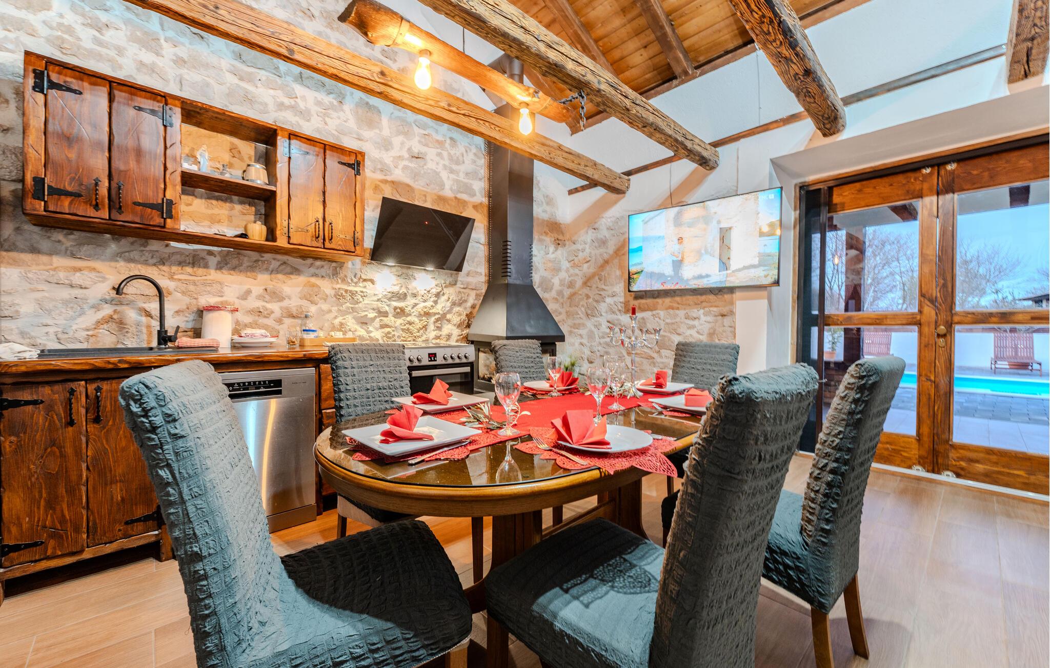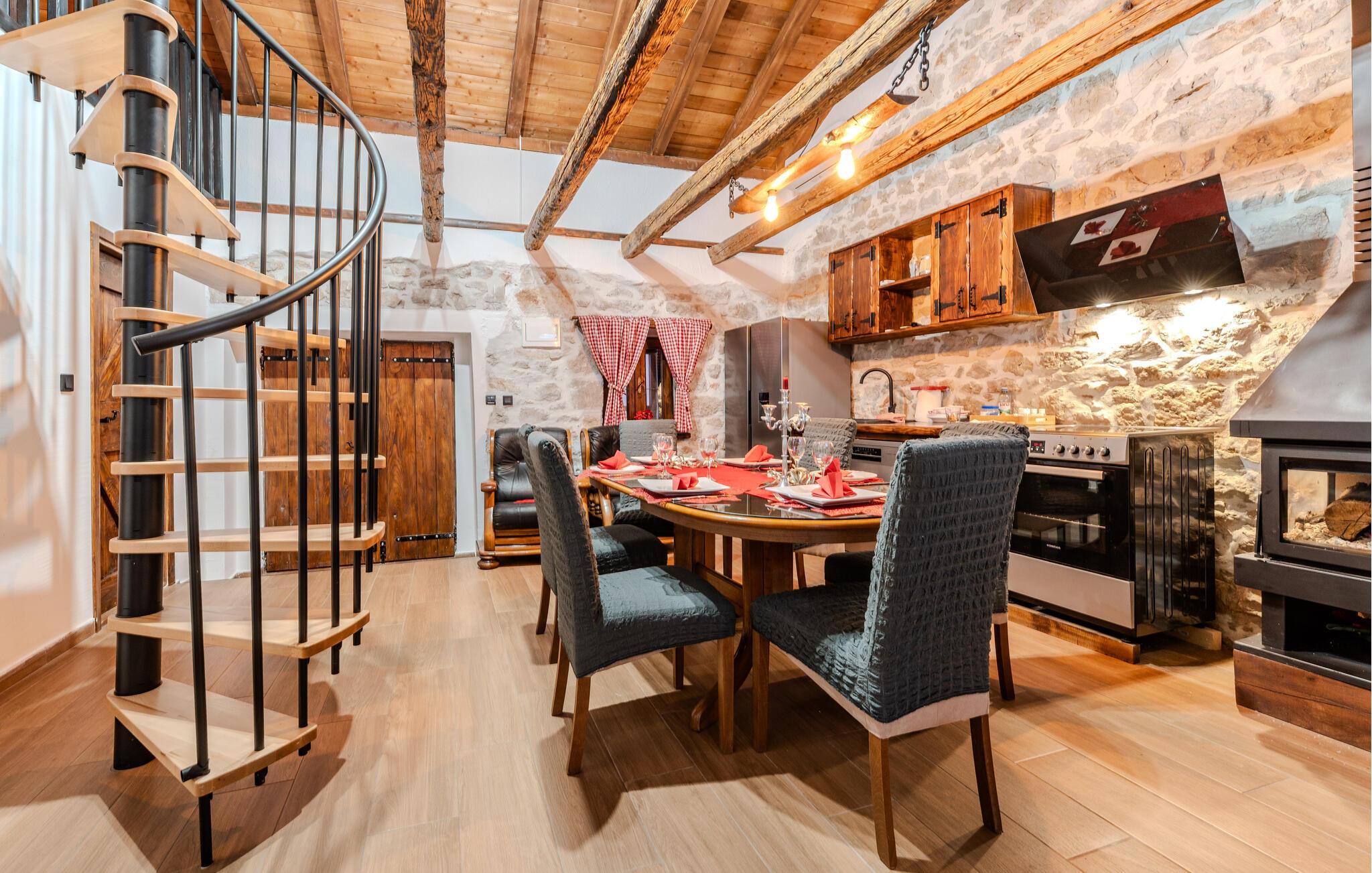 Beliggende på en velholdt havegrund byder dette charmerende feriehus jer velkommen med rustik charme og moderne bekvemmeligheder. Tilbered friske måltider i det åbne køkken og nyd dem i den hyggelige spiseplads. På køligere aftener kan I tænde brændeovnen og lytte til ildens knitren, mens I spiller et brætspil.
