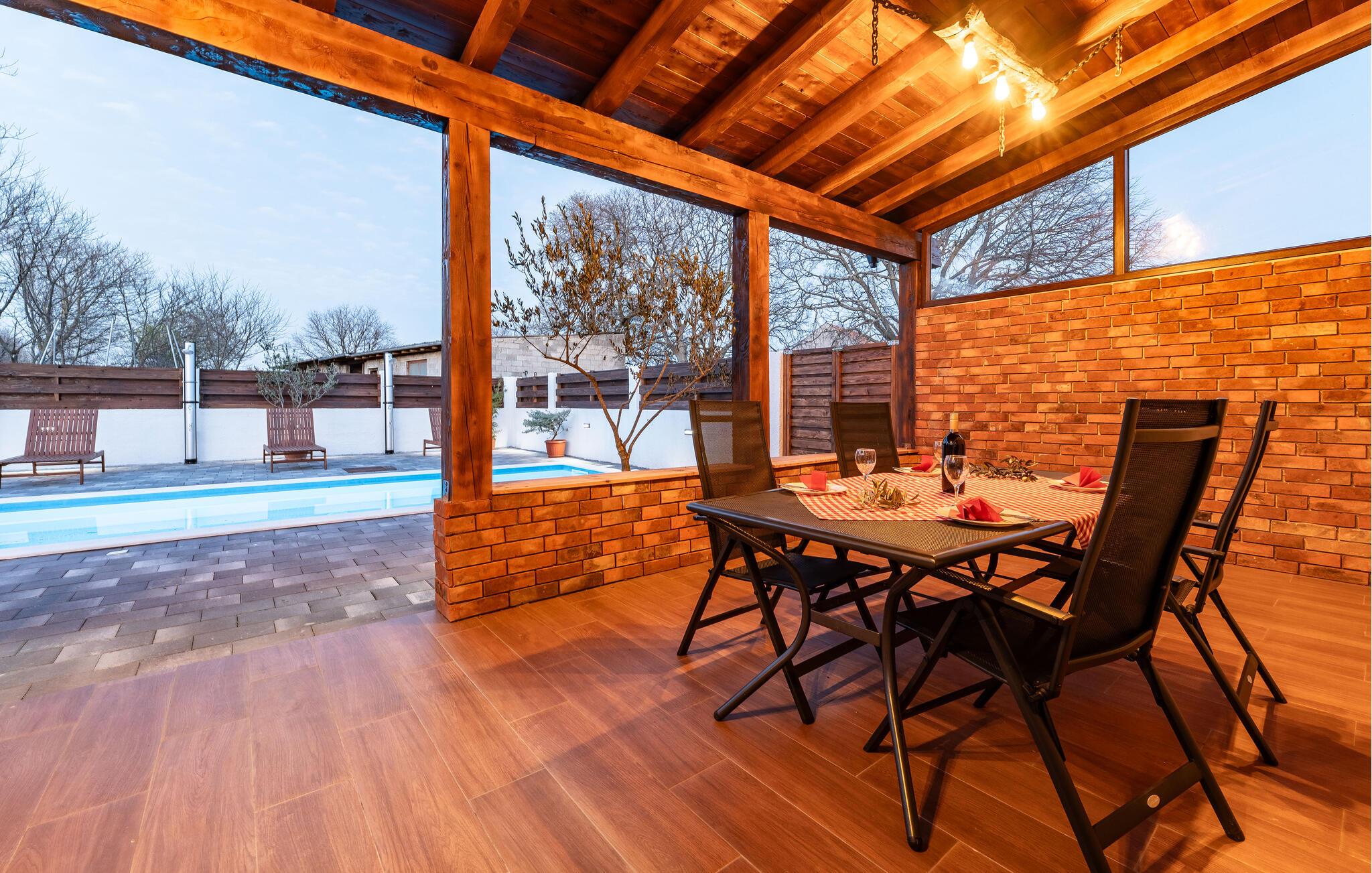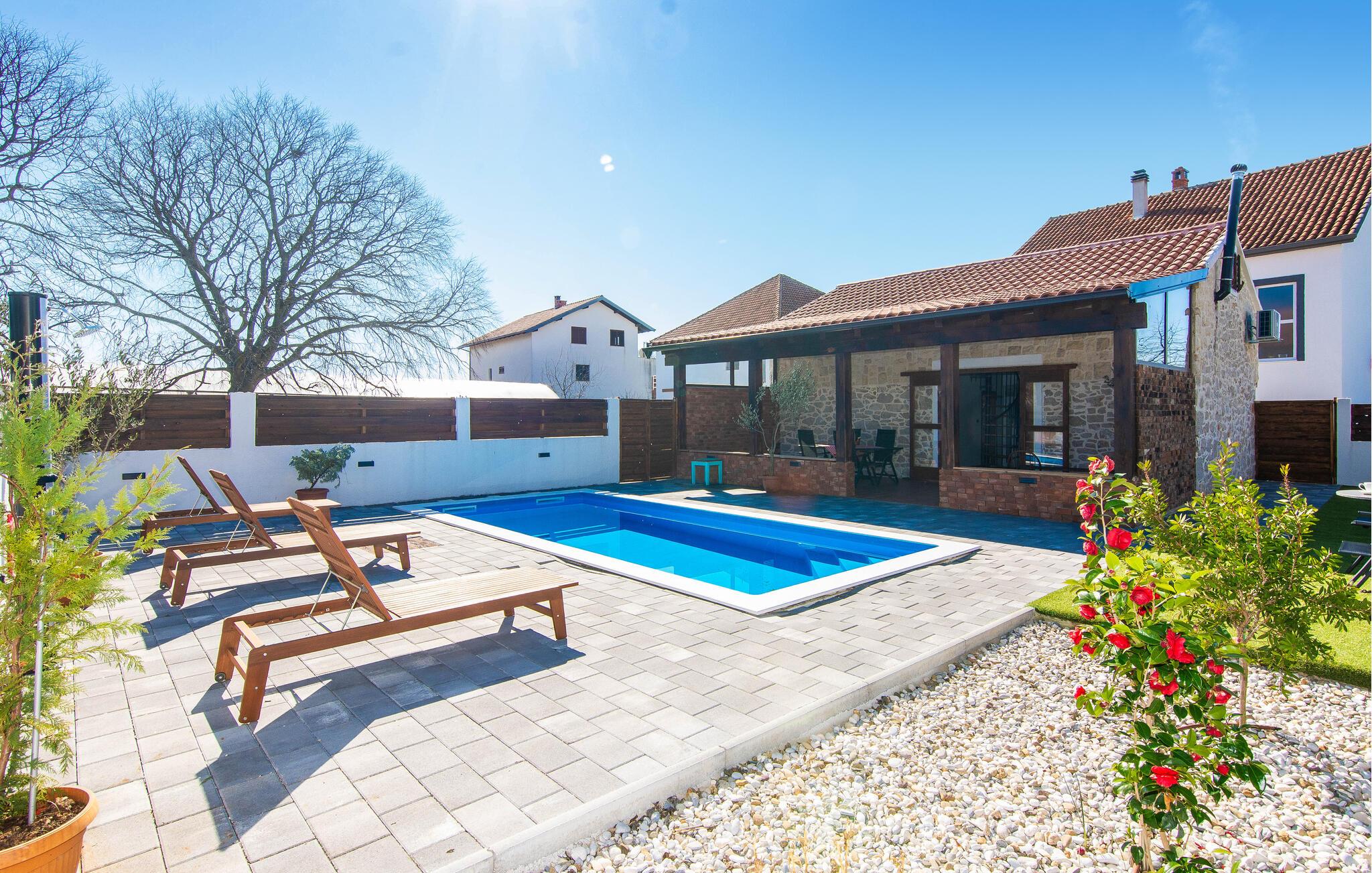 Nyd en afslappende ferie i dette charmerende feriehus med pool og start hver ny feriedag afslappet.