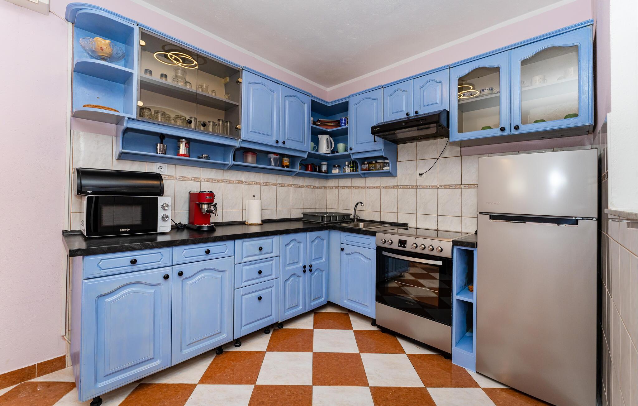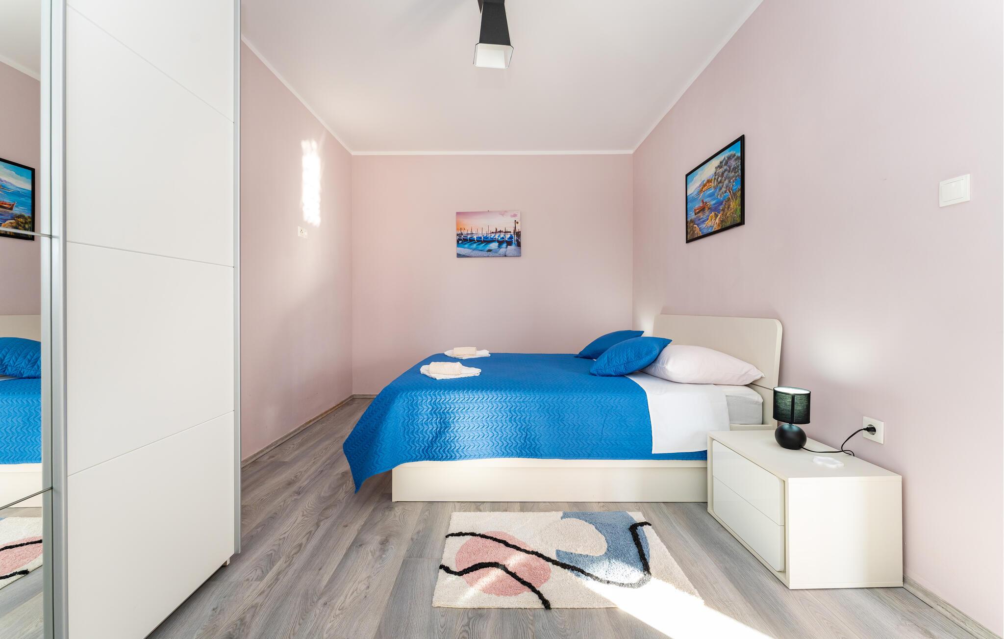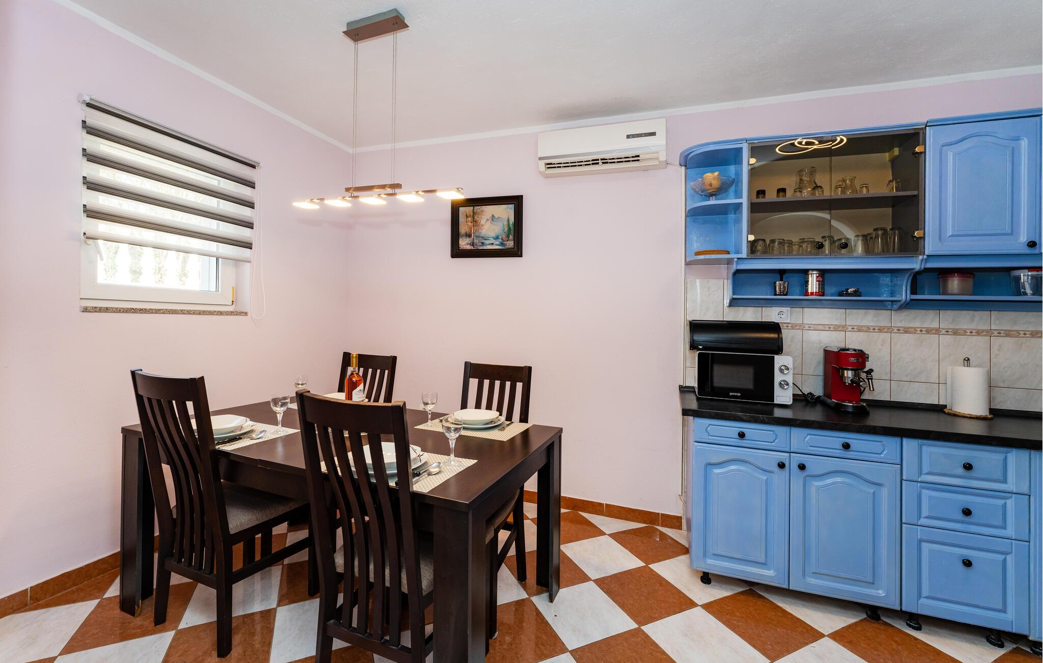 Din rummelige ejendom i Slivnica, nær Zadar, har to moderne indrettede lejligheder, der ikke lader noget tilbage at ønske. Lav mad sammen i et af husets to køkkener, som er noget særligt med moderne hårde hvidevarer og stilrent design. Og tilbring omgængelige timer i de hyggelige opholdsområder med en elegant atmosfære. Fra balkonen på øverste etage har I en fantastisk udsigt over det omkringliggende landskab.
