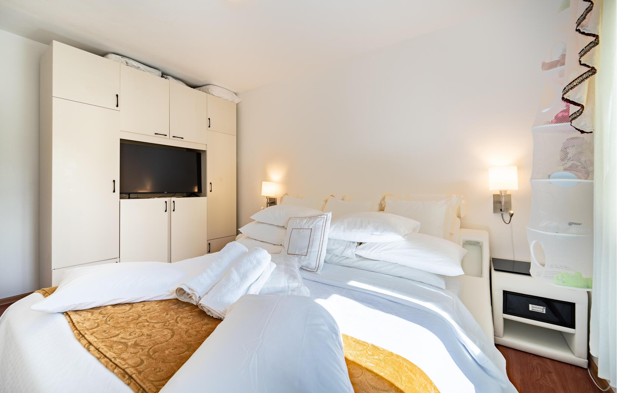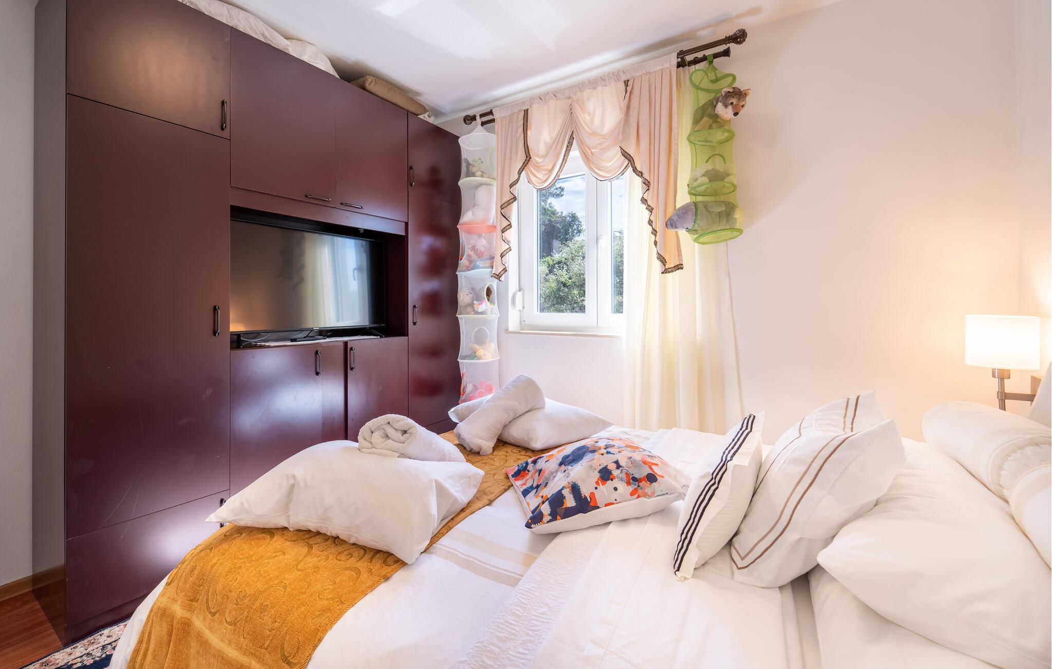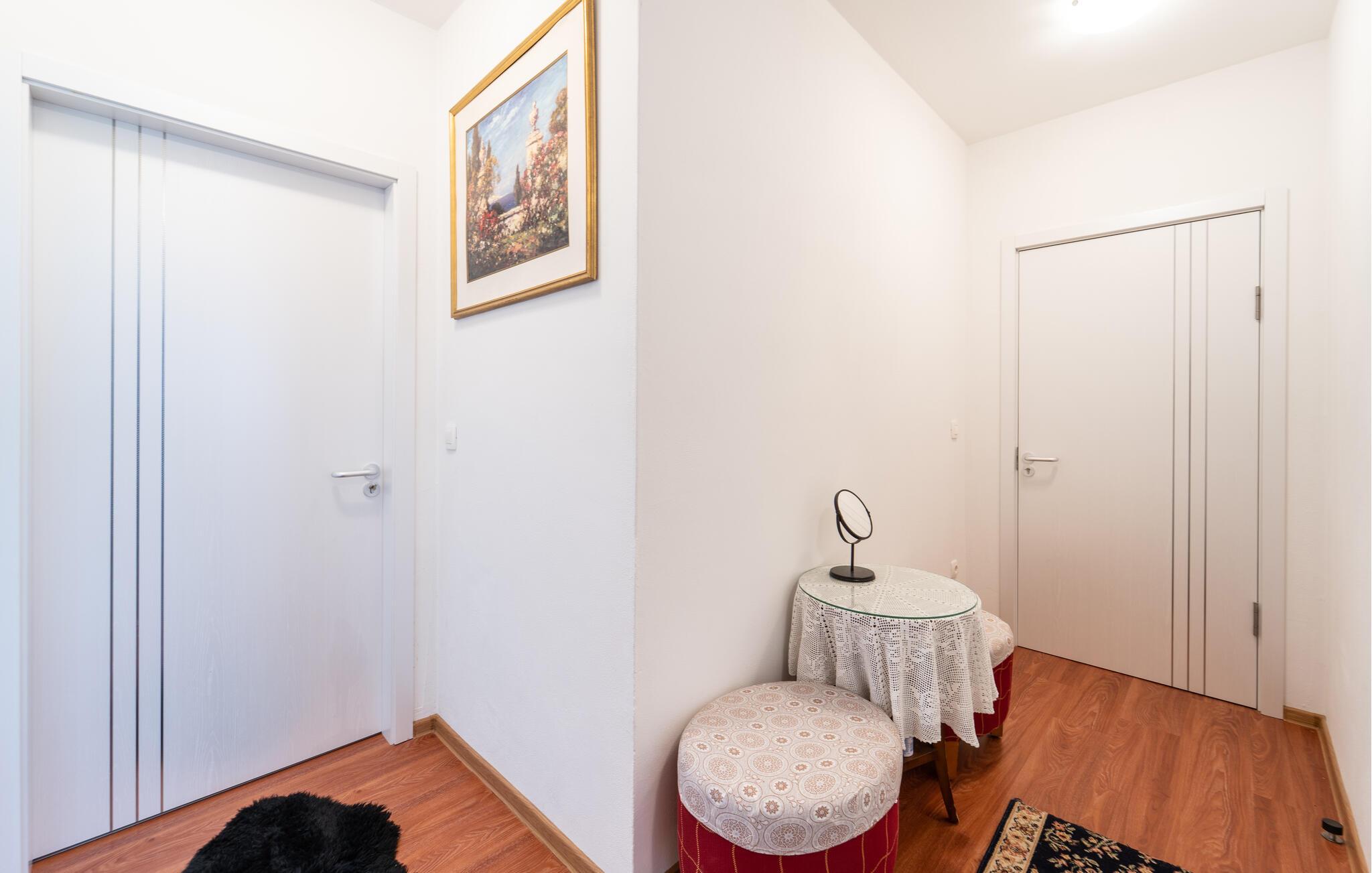 Tag familien under armen og rejst til Sukosan, hvor der venter jer en fuldt ud afslappende ferie i denne attraktive lejlighed. Her får I godt med plads til et ophold med den udvidede familie, uden I behøver give køb på den gode komfort. Lejligheden er flot indrettet og byder på alle de faciliteter, I har brug for, til at gøre gøremålene og madlavningen til en leg. Efter aftensmaden kan I gøre det lidt ekstra godt for jer selv og sætte jer til rette med et godt glas vin i boblebadet. I den helt anden ende af skalaen er der mulighed for at holde formen ved lige i fitness-rummet, der deles med de andre gæster.