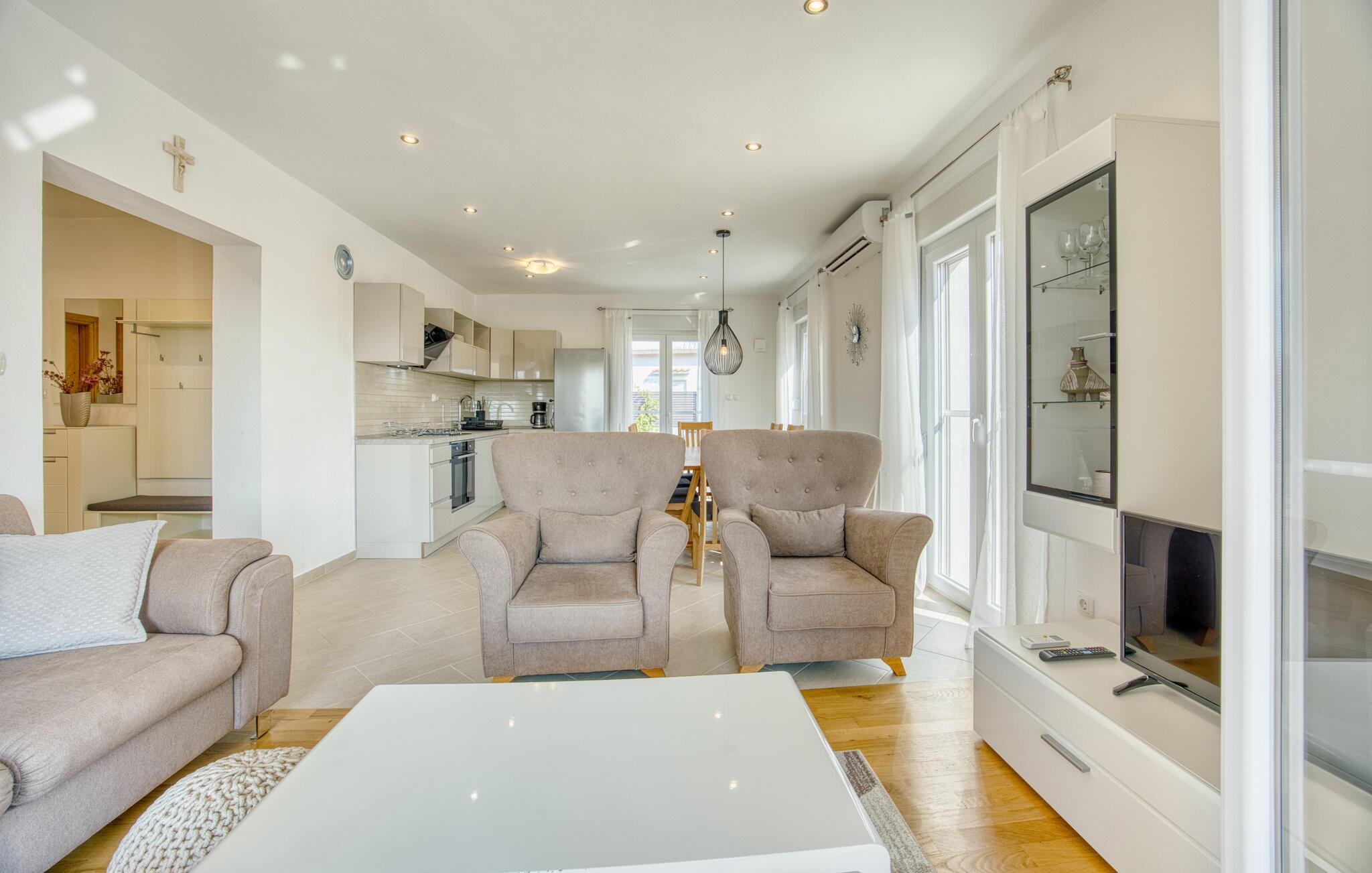 Tilbring dejlige feriedage i Sukosan og nyd det mediterrane liv i dette stilfuldt indrettede feriehus. Start dagen med en lækker morgenmad sammen med hele familien og slap derefter af på de komfortable liggestole på terrassen. Gør jer det også behageligt på sofaen i opholdsstuen, hvor I kan læse en god bog eller se en spændende film. Hele familien kan have det sjovt og være aktive på boldspilspladsen.