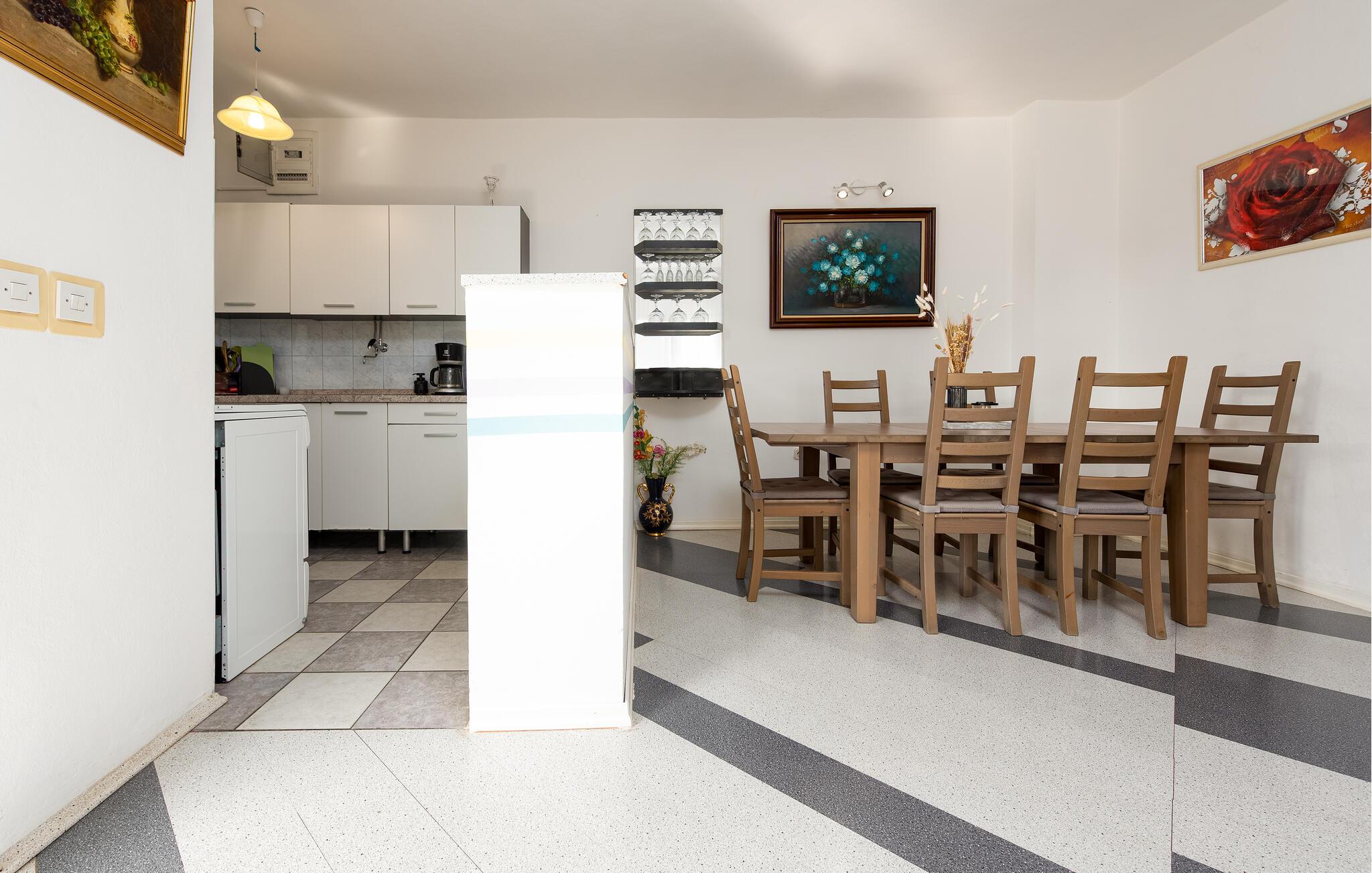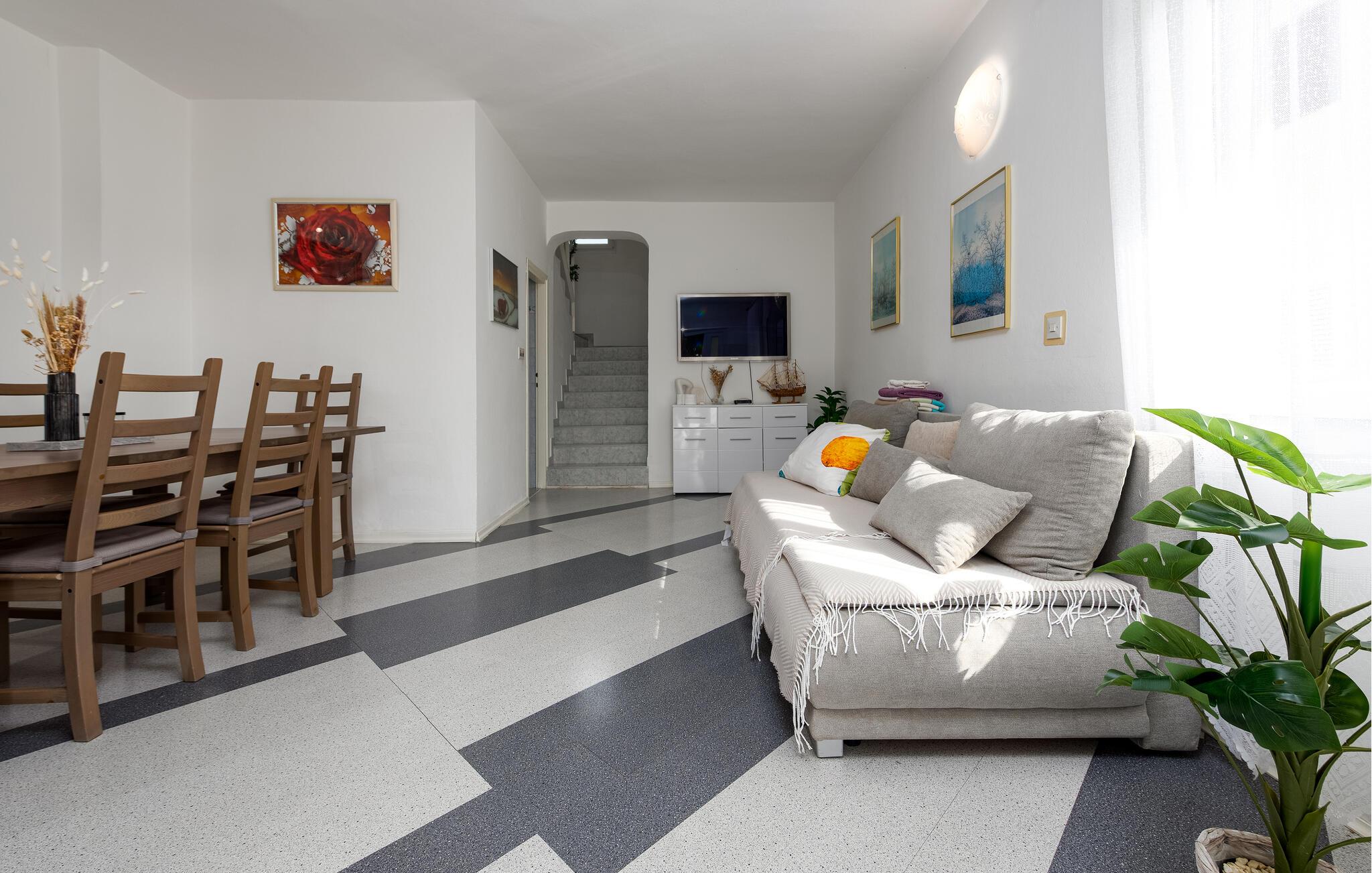 Dette rummelige dobbelthus byder jer velkommen kun nogle få skridt fra stranden med en frisk og venlig atmosfære. Her finder I masser af plads til hyggelige måltider og afslappende timer med familie eller venner. Glæd jer til at snakke, spise og spille spil ved spisebordet, og efter en begivenhedsrig dag i solen kan I streame en spændende film, som alle vil nyde.