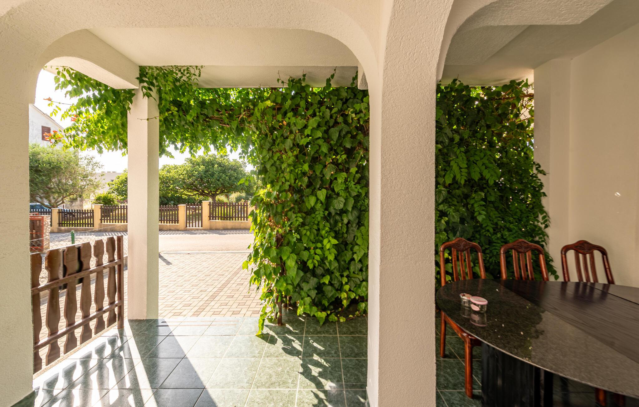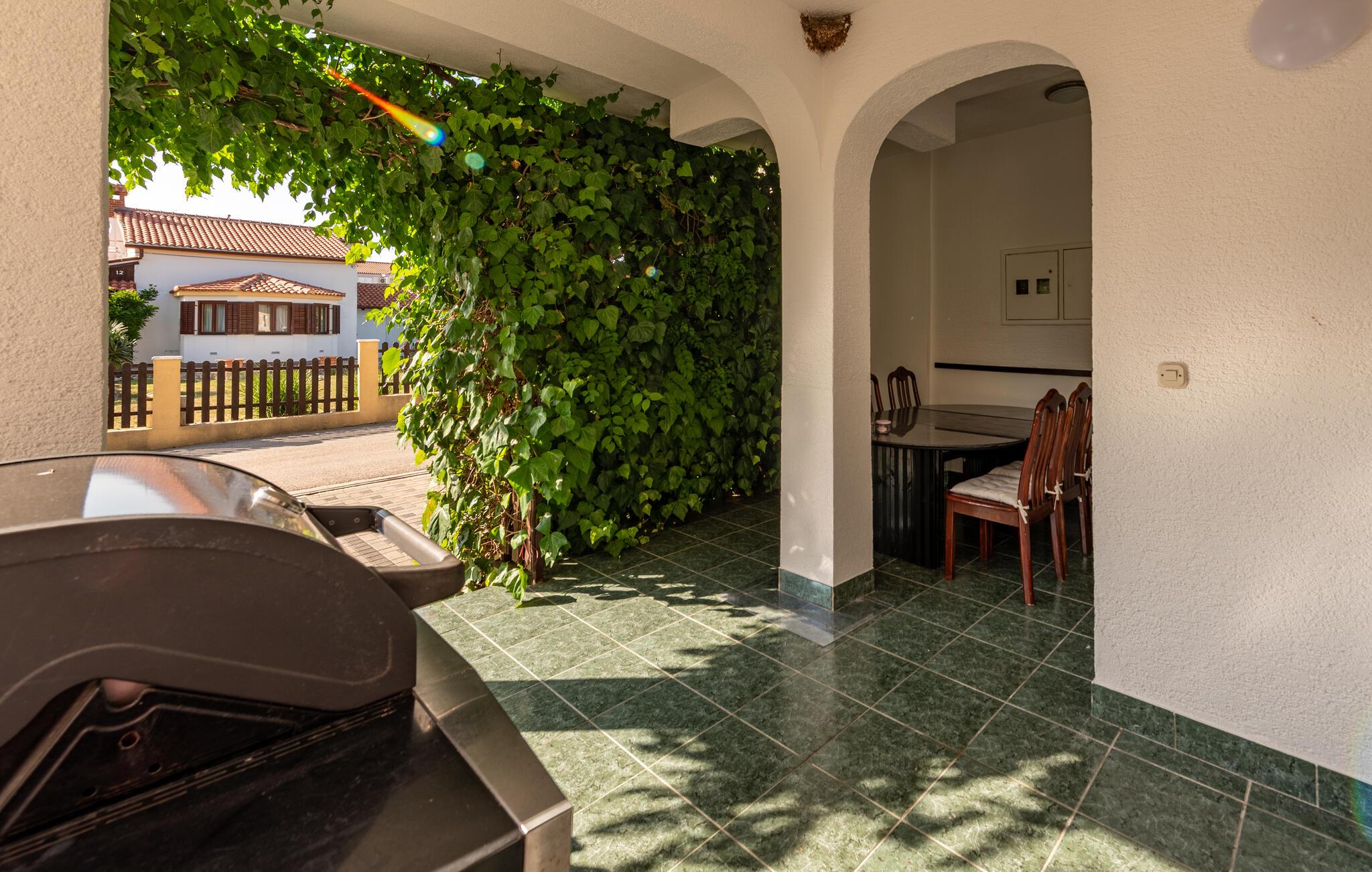 Dæk op til en lækker morgenmad i den milde morgensol, fordyb jer i jeres ferielæsning på de behagelige liggestole, og forbered alt til en stemningsfuld grillaften på den skyggefulde, overdækkede terrasse.