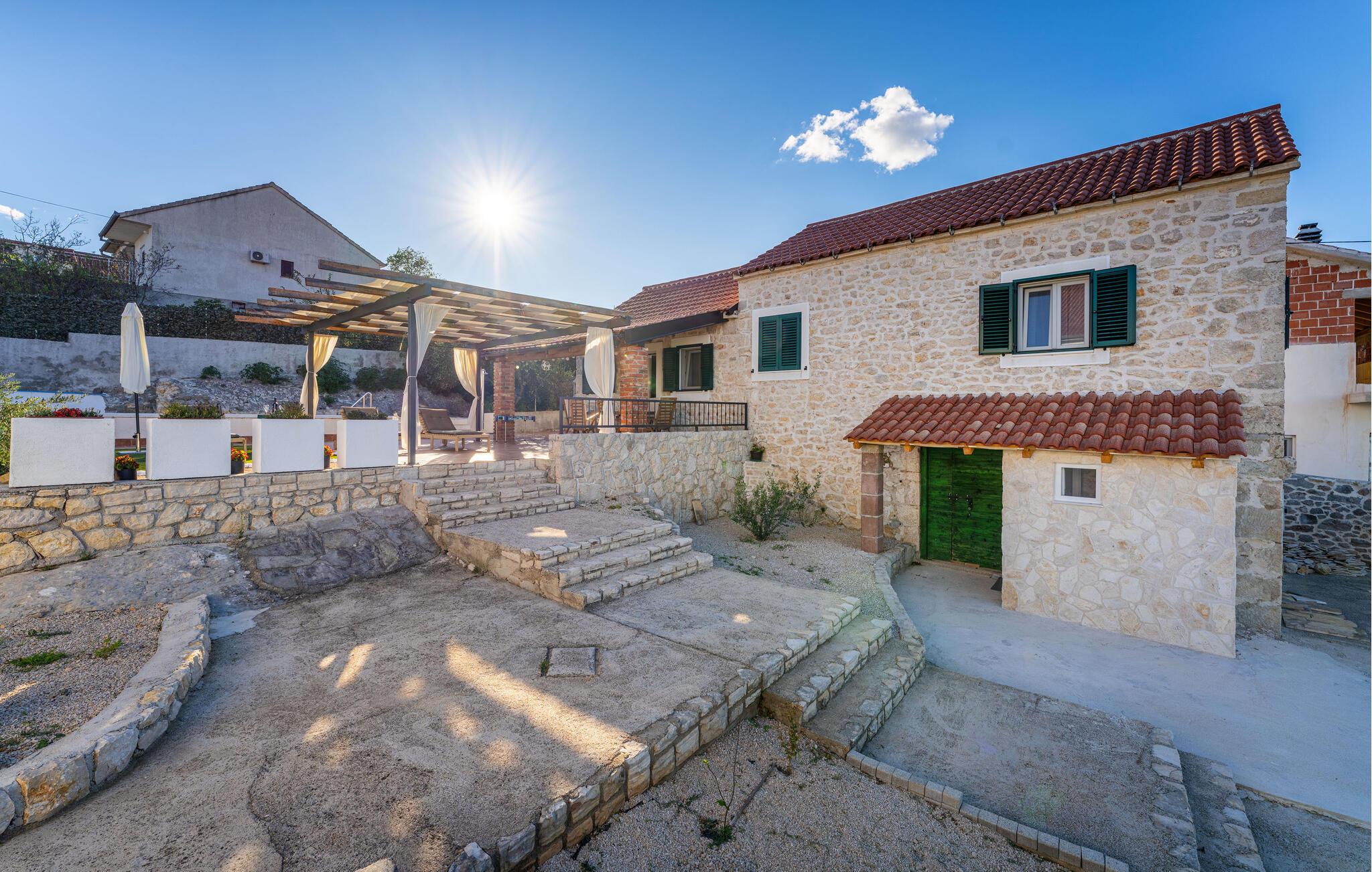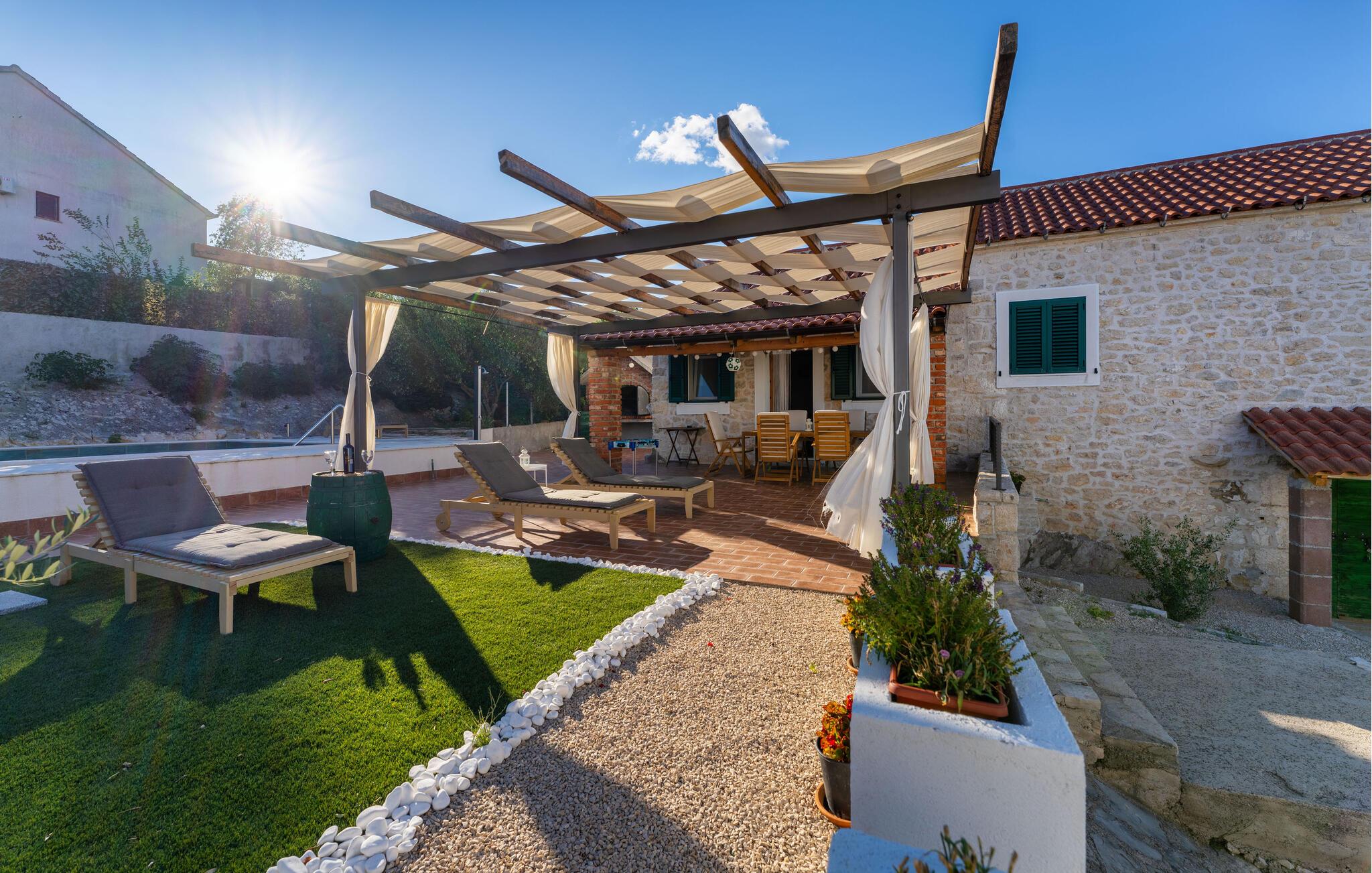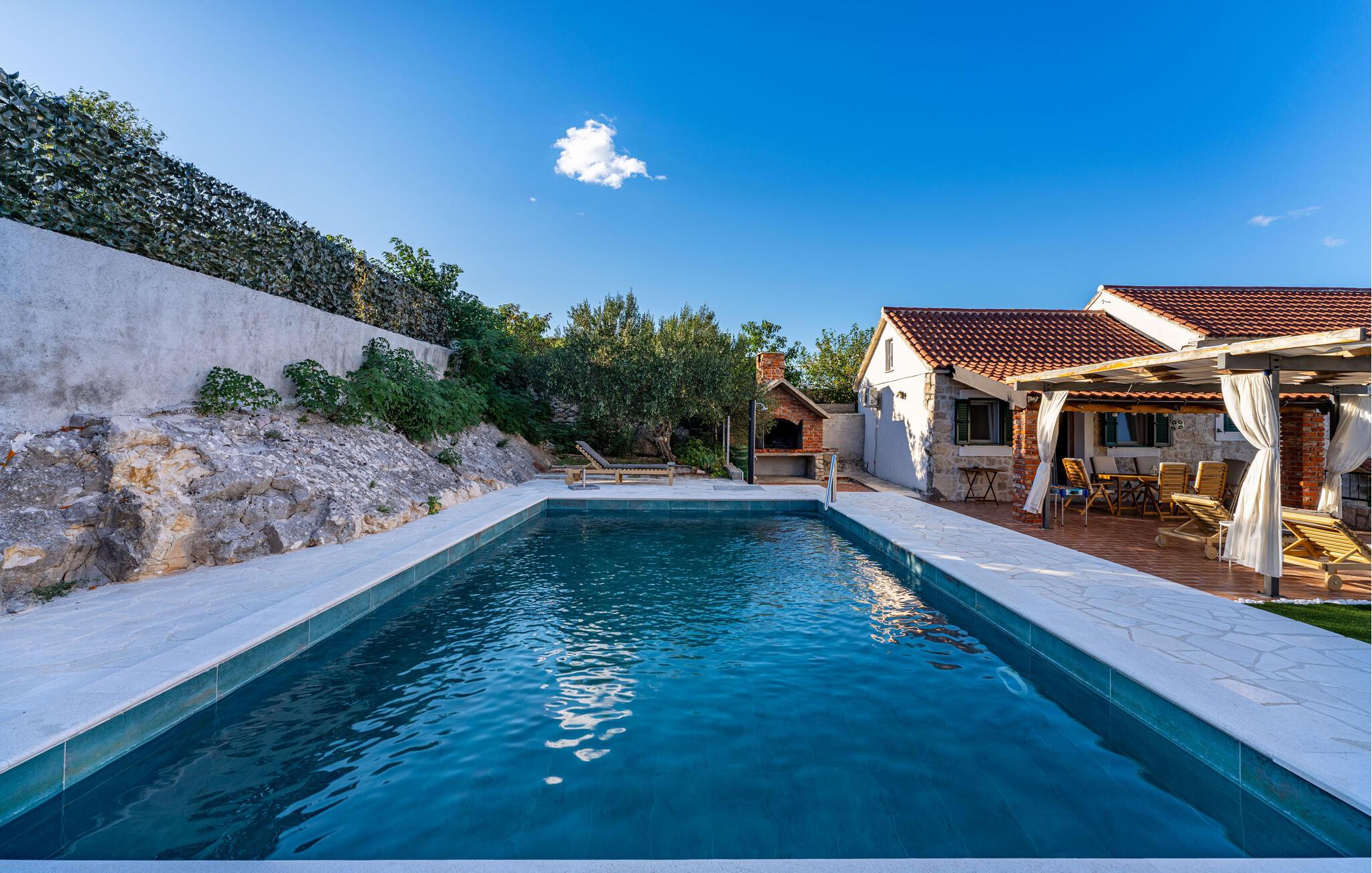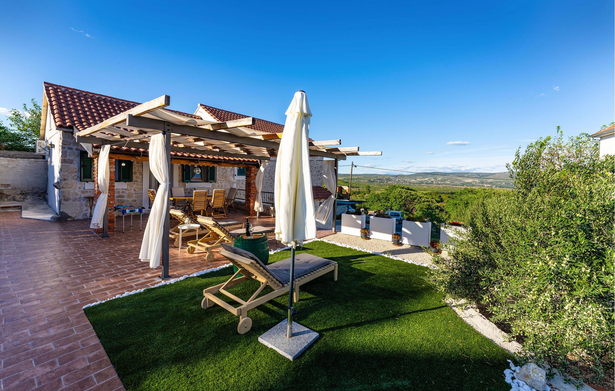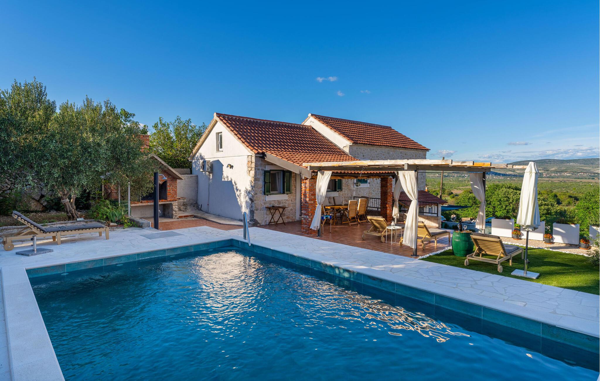 Nyd den vidunderlige udsigt over landskabet i dette flotte feriehus med pool.