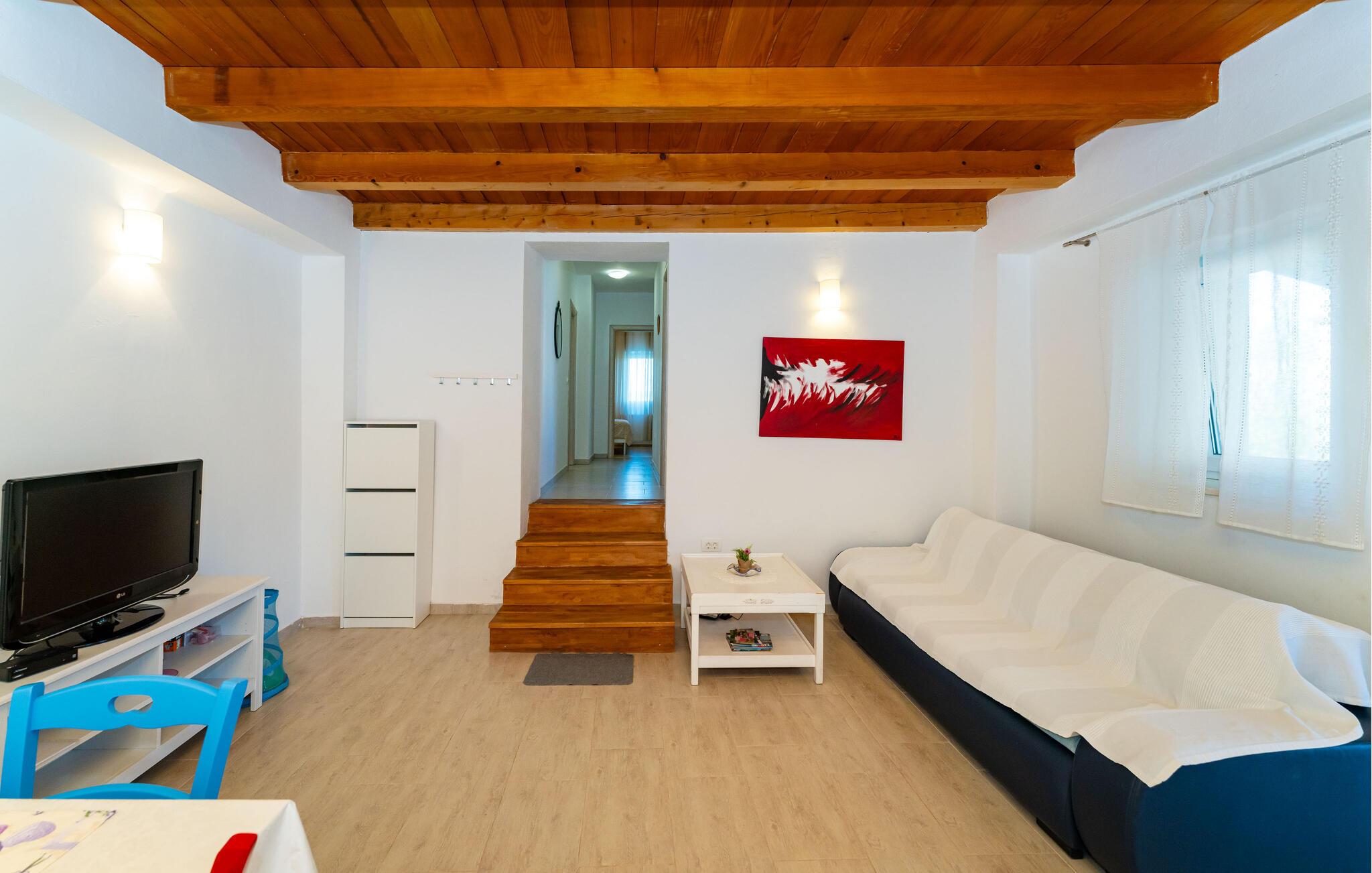 Velkommen til dette dejlige hus, der ligger helt fortryllende i baglandet til kysten, og hvor I får de ideelle rammer for en magisk ferie med familien. Indretningen fremtræder lyst, hyggeligt og hjemligt med smukke træmøbler, og i stuen er der godt med plads og komfort til hyggelige aftener med brætspil, kortspil eller en god film på tv'et.