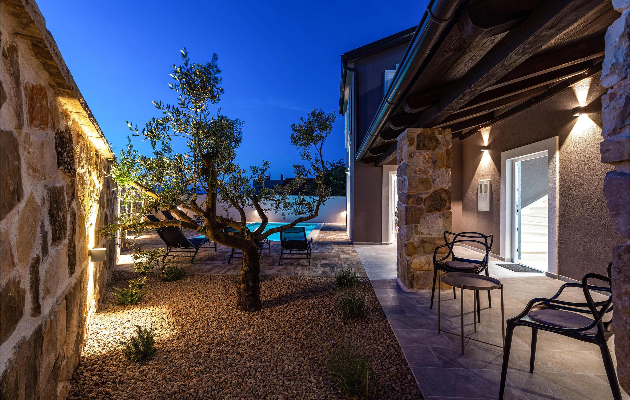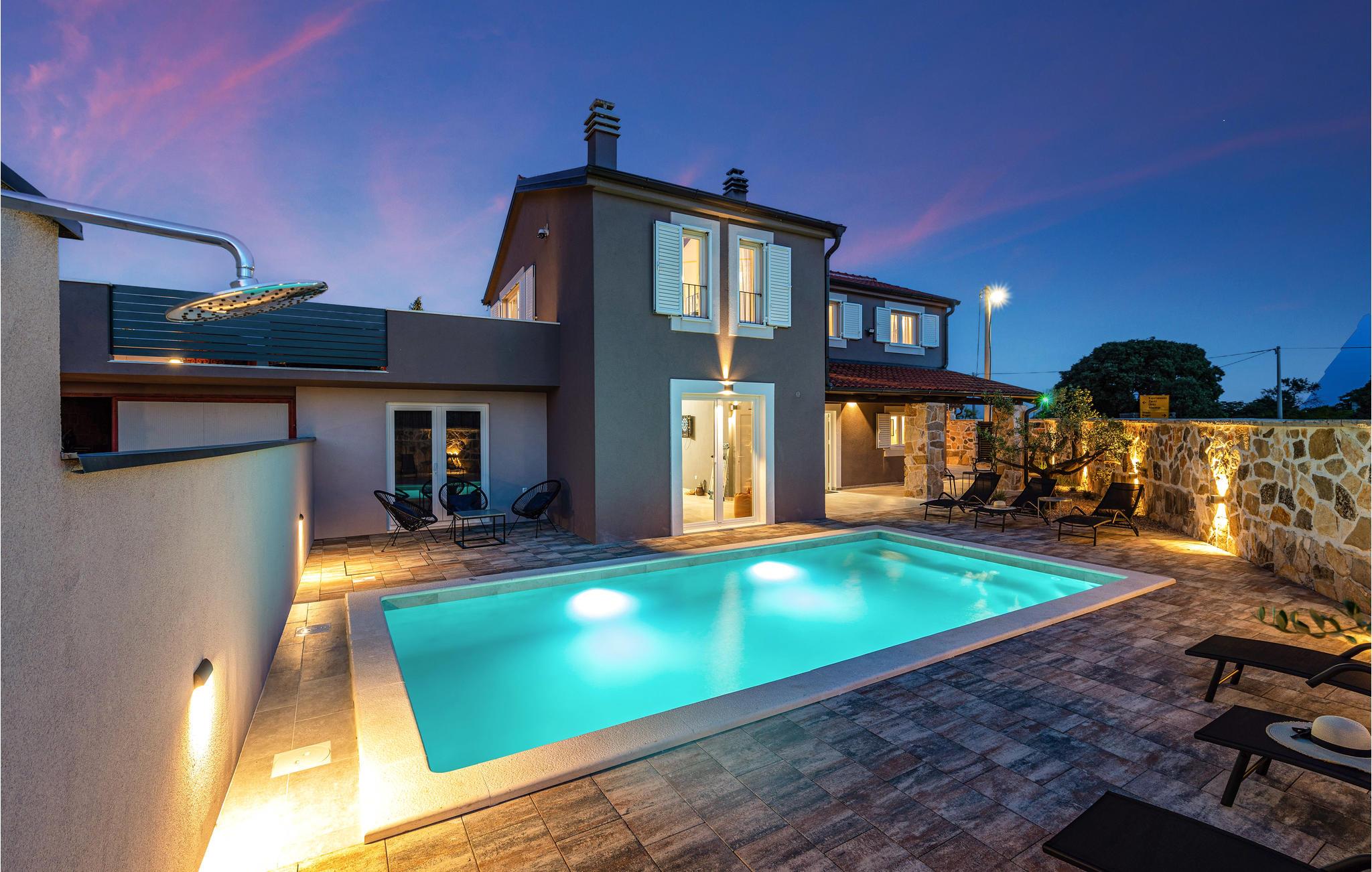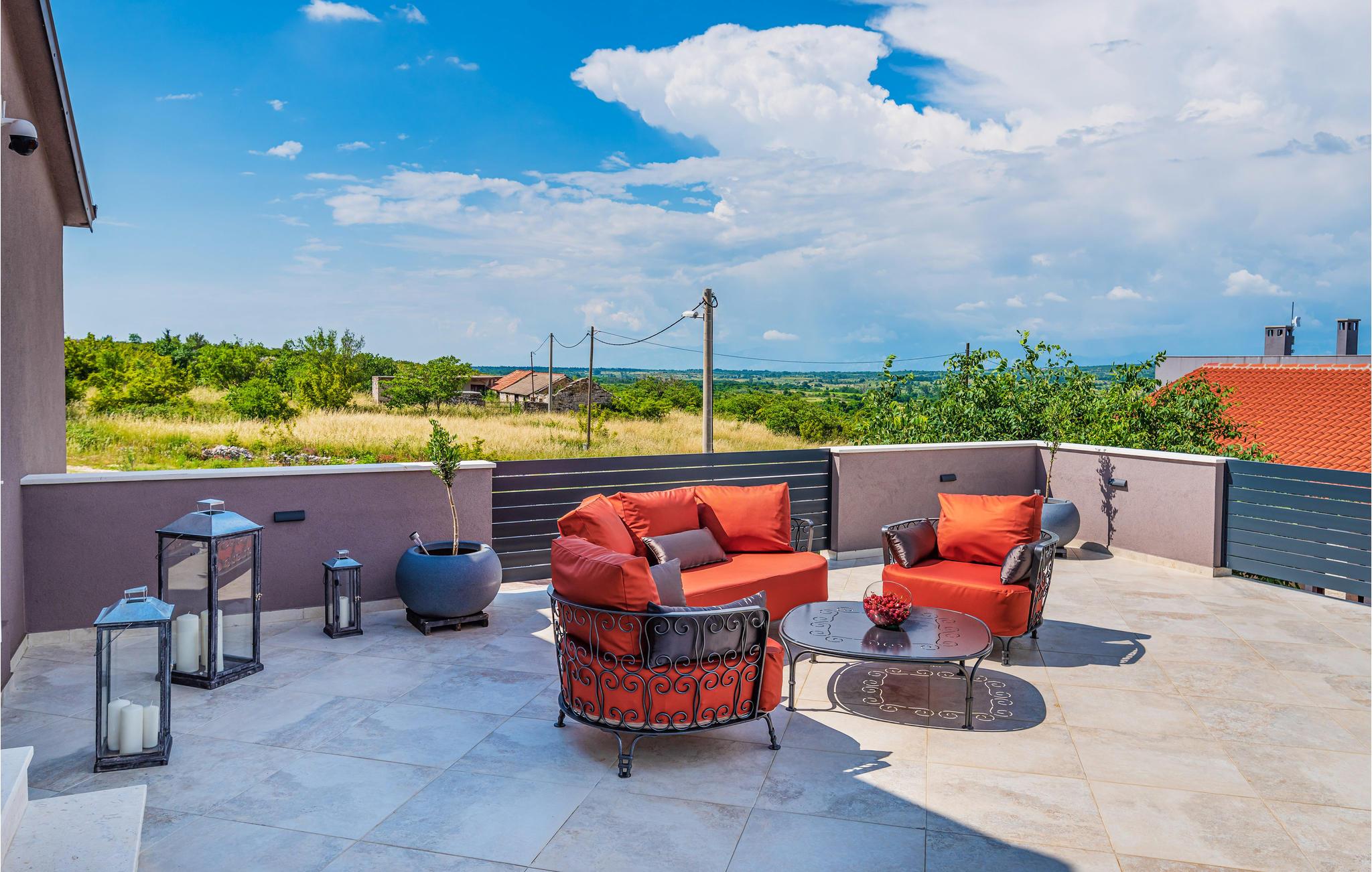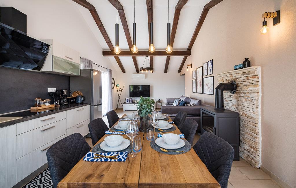 Slap af i dette rummelige og moderne feriehus med swimmingpool. Tilbring en uforglemmelig ferie med hele familien i dette smukke hus, der vil friste jer med sine mange faciliteter og underholdningsmuligheder. Glæd jer til husets indre, som venter jer med tiltalende komfort, hyggelige lokaler og et aktivitetsrum med leg og hygge. Spil dart, bordtennis og bordfodbold, før I begiver jer ud i det fri. Den store terrasse er det ideelle sted at nyde solen med en kølig drink. Se ud på det rolige landskab eller spring i den forfriskende pool for en svømmetur. Om aftenen kan I samles til en grill, mens de små udforsker legehuset og legetårnet ved siden af. Oplev kystens bagland, mens I vandrer og cykler, og planlæg ture til Kariner og Novigrader Meer samt til Adriaterhavets smukke stenstrande. Nyd at dykke ned i det krystalklare hav og lad jer blive båret på vandoverfladen. Prøv forskellige vandaktiviteter eller besøg byen Zadar, som byder på en række seværdigheder. Glæd jer til en uforglemmelig ferie i Dalmatien!
