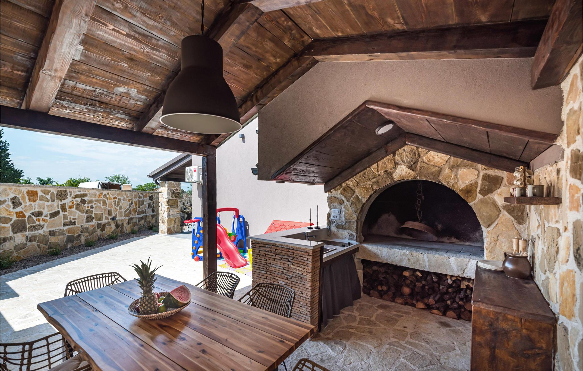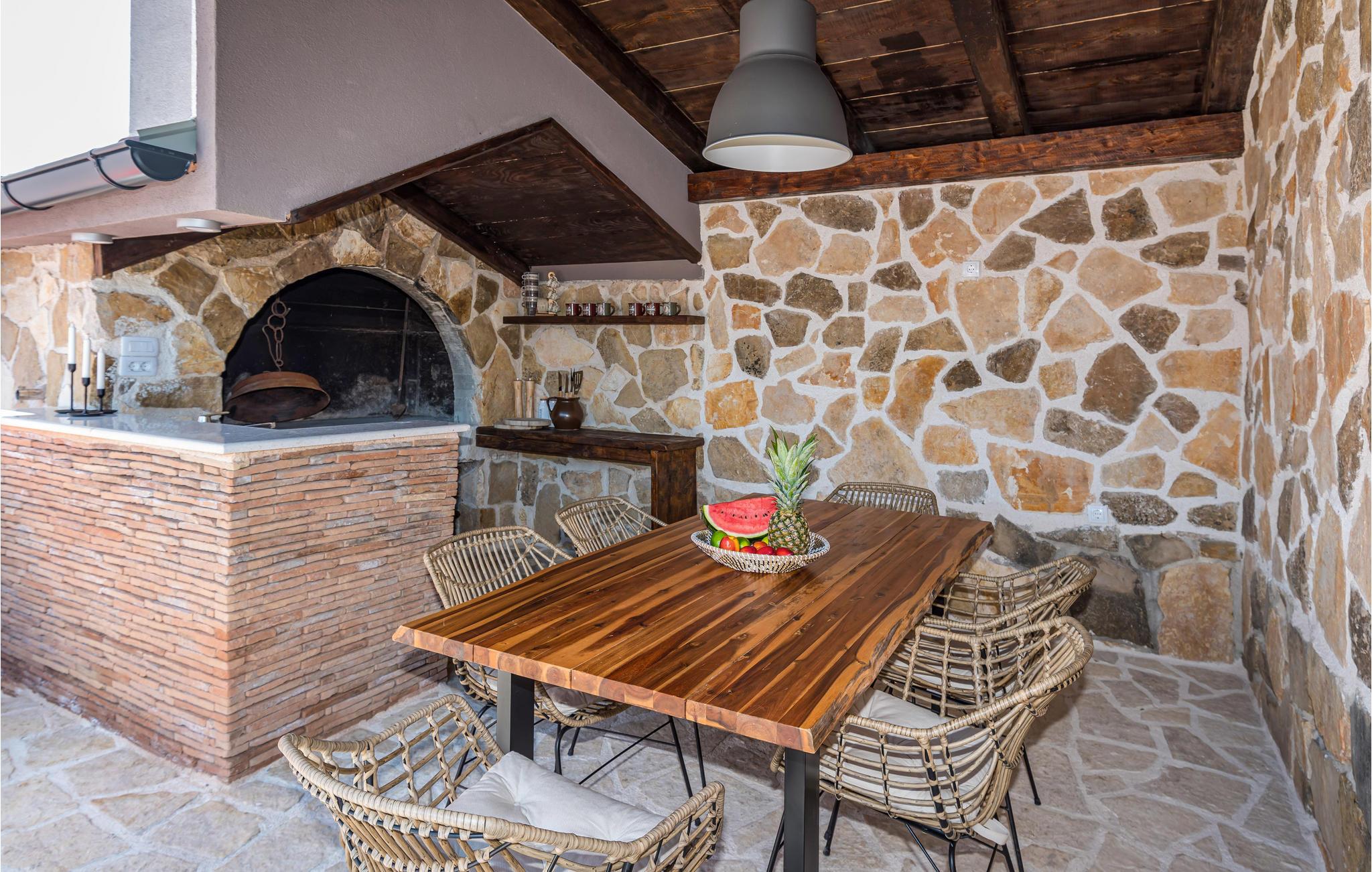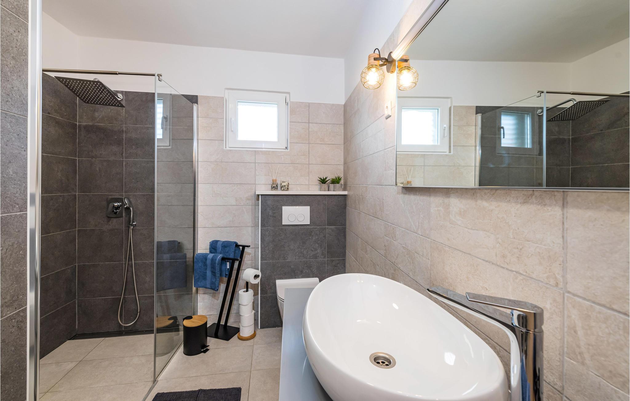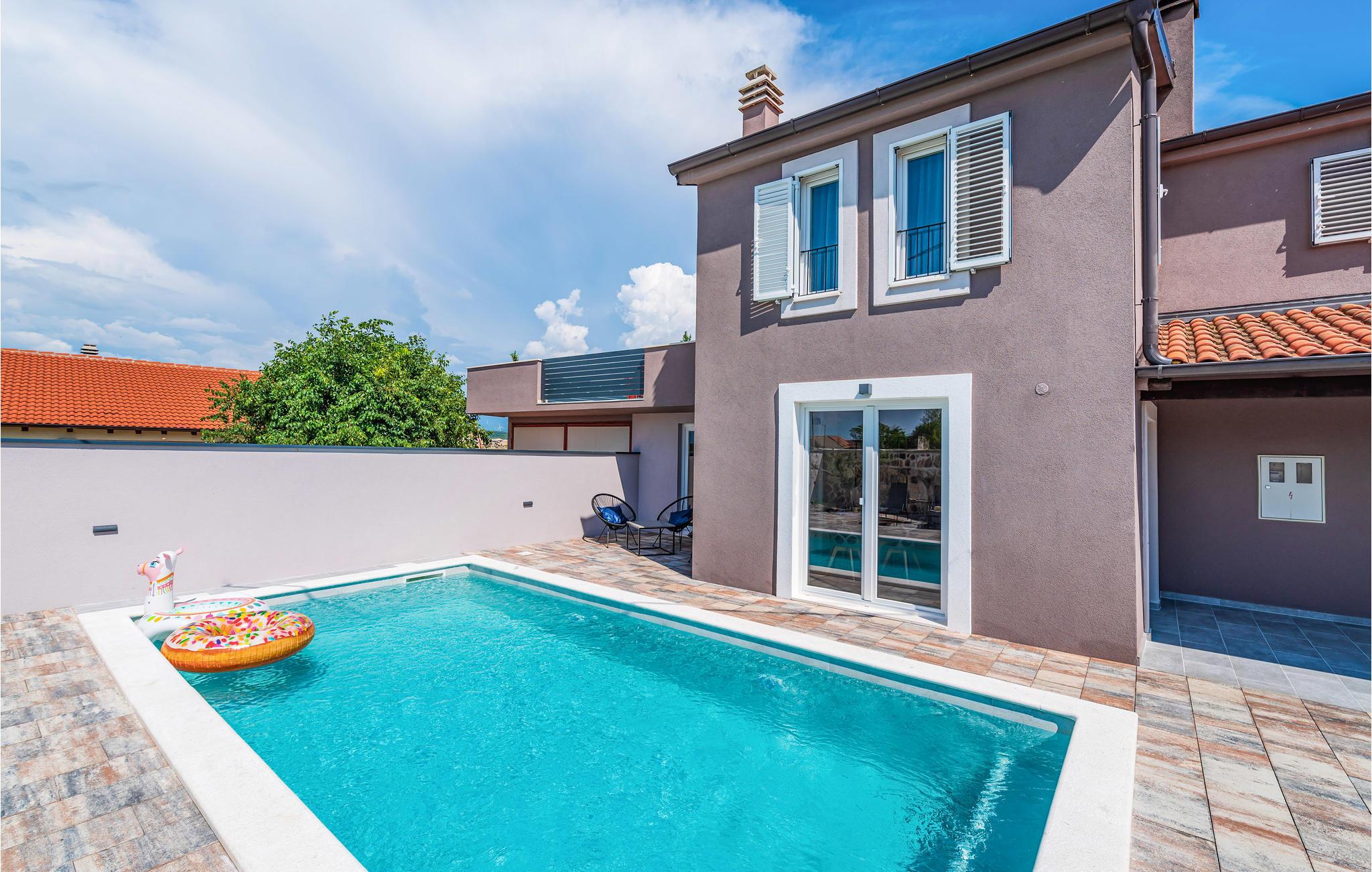 Slap af i dette rummelige og moderne feriehus med swimmingpool. Tilbring en uforglemmelig ferie med hele familien i dette smukke hus, der vil friste jer med sine mange faciliteter og underholdningsmuligheder. Glæd jer til husets indre, som venter jer med tiltalende komfort, hyggelige lokaler og et aktivitetsrum med leg og hygge. Spil dart, bordtennis og bordfodbold, før I begiver jer ud i det fri. Den store terrasse er det ideelle sted at nyde solen med en kølig drink. Se ud på det rolige landskab eller spring i den forfriskende pool for en svømmetur. Om aftenen kan I samles til en grill, mens de små udforsker legehuset og legetårnet ved siden af. Oplev kystens bagland, mens I vandrer og cykler, og planlæg ture til Kariner og Novigrader Meer samt til Adriaterhavets smukke stenstrande. Nyd at dykke ned i det krystalklare hav og lad jer blive båret på vandoverfladen. Prøv forskellige vandaktiviteter eller besøg byen Zadar, som byder på en række seværdigheder. Glæd jer til en uforglemmelig ferie i Dalmatien!