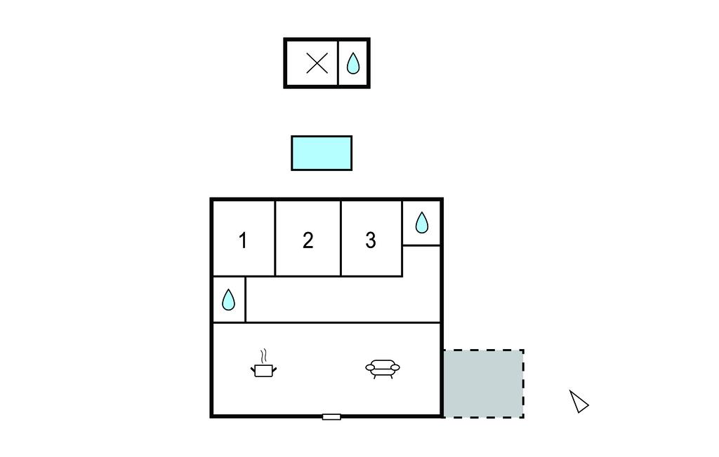 Opholdsstue/køkken 40m2 - 1 Soveplads. (Sofa, madras eller lignende).
