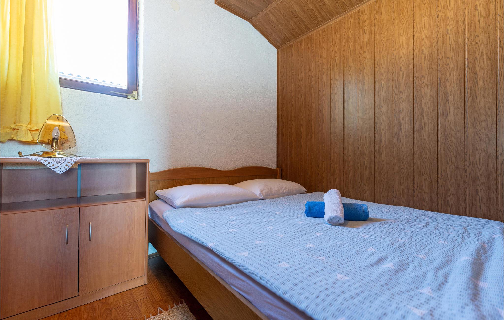Denne praktiske ferielejlighed ligger på bygningens øverste etage og er en perfekt base til en badeferie i Kroatien. Her kan I slappe af efter jeres udflugter og strandture med grill i fælleshaven og måaske falde i snak med nogle af de andre feriegæster. Begynd dagene med en lækker morgenmad på balkonen og nyd udsigten til Karinsko More.