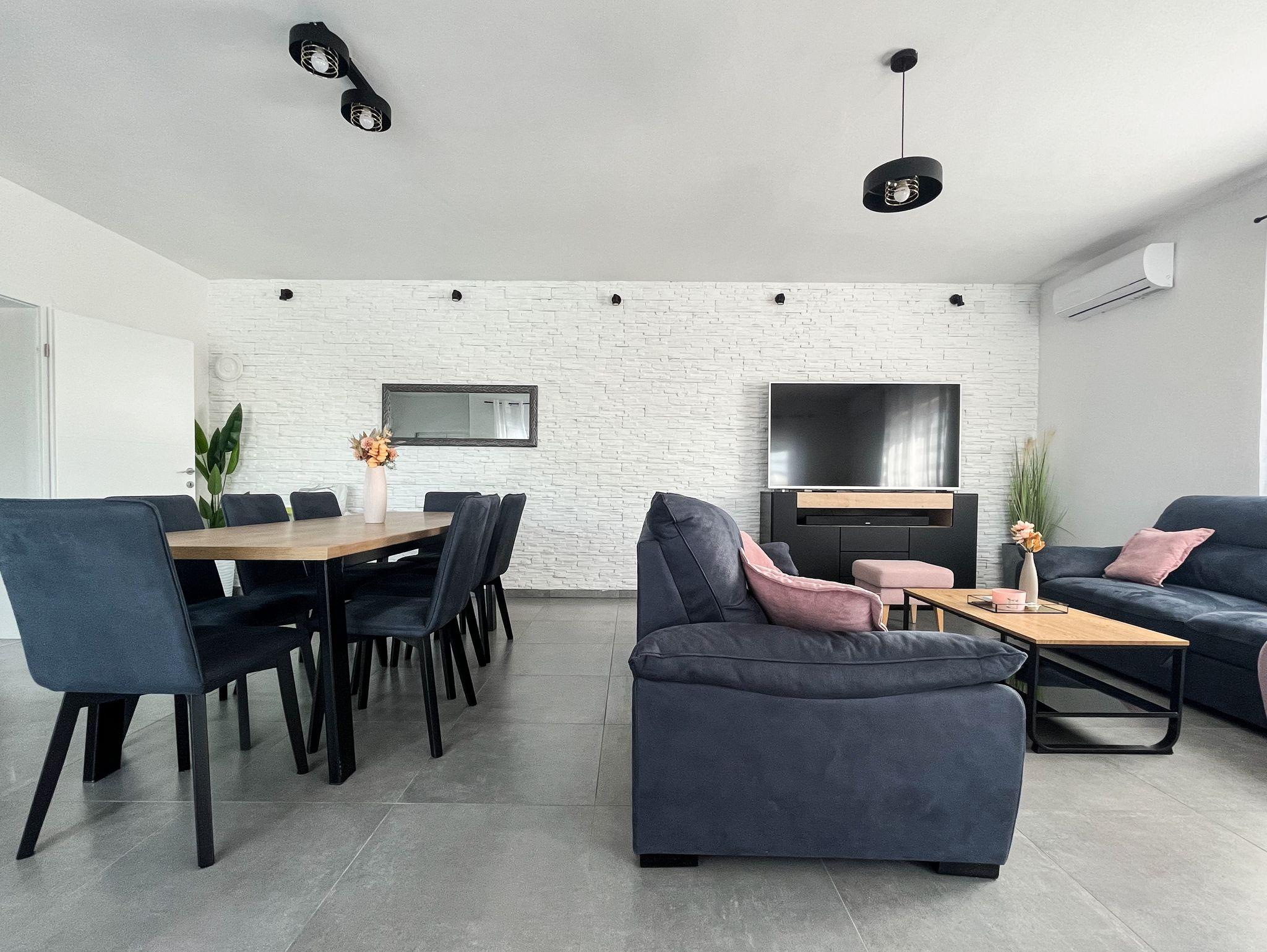 Haus bietet Platz für 10 Gäste. Die Betten sind in Schlafzimmern, die es 4 gibt, und in Wohnzimmer, innerhalb einer Gesamtfläche von 170m2, angeordnet. Die Gäste haben eine eigene Terrasse zur Verfügung, auf der sie in warmen Sommernächten genießen können. Für vollen Genuss und Entspannung gibt es einen privaten Grill für Gäste dieser Unterkunft. Während ihres Aufenthalts können sich Gäste im privaten Schwimmbad entspannen. IM PREIS INBEGRIFFEN: Kurtaxe, Endreinigung, Klimatisierung, Pool, Parkplatz, Internet, Kinderbett, Zusatzbett, Bügeleisen, Bügelbrett, Föhn. Die Verfügbarkeit zusätzlicher Dienstleistungen in Ihrem reservierten Termin und die Preise derselben (falls nicht aufgeführt) müssen im Voraus überprüft werden. Zusätzliche Dienstleistungen die in der Zahlungsaufforderung nicht aufgeführt sind werden direkt beim Vermieter bezahlt, angenommen der Gast nutzt auch diese.