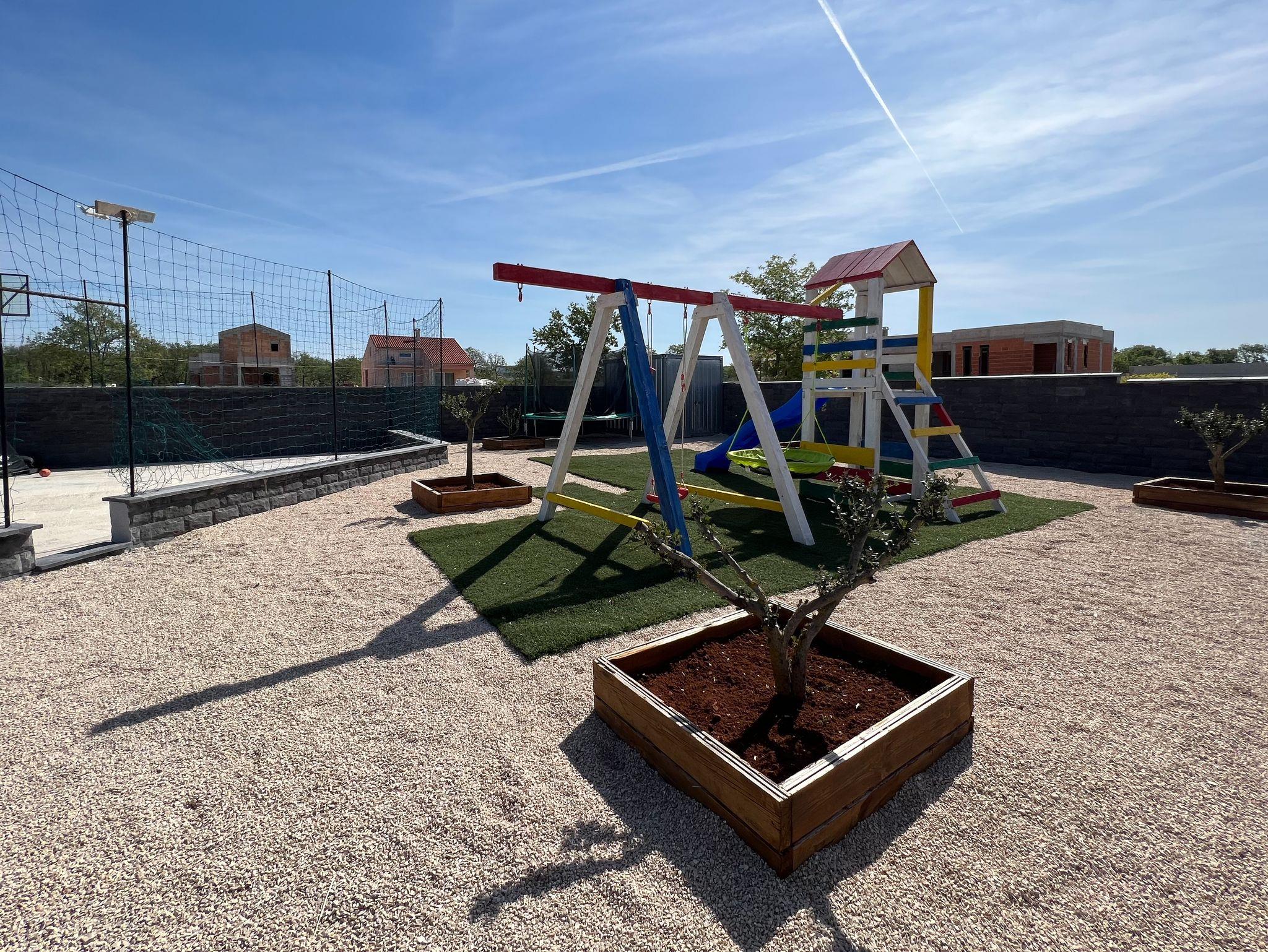 Umgebung des Objekts (Eingerichtet), Hof (900m2, Kinderbereich, Sitzbereich), Parkplatz (Anzahl der Parkplätze: 4, Entfernung vom Objekt: im Hof), Pool: privat, Dimensionen: 9.5m x 4.7m x 1.45m, Heizung: Ja, WiFi Internet, Föhn, Bügeleisen, Bügelbrett, Kinderbett