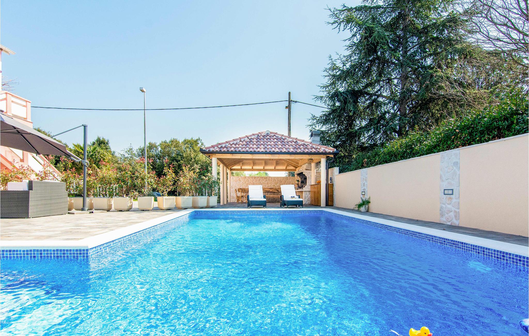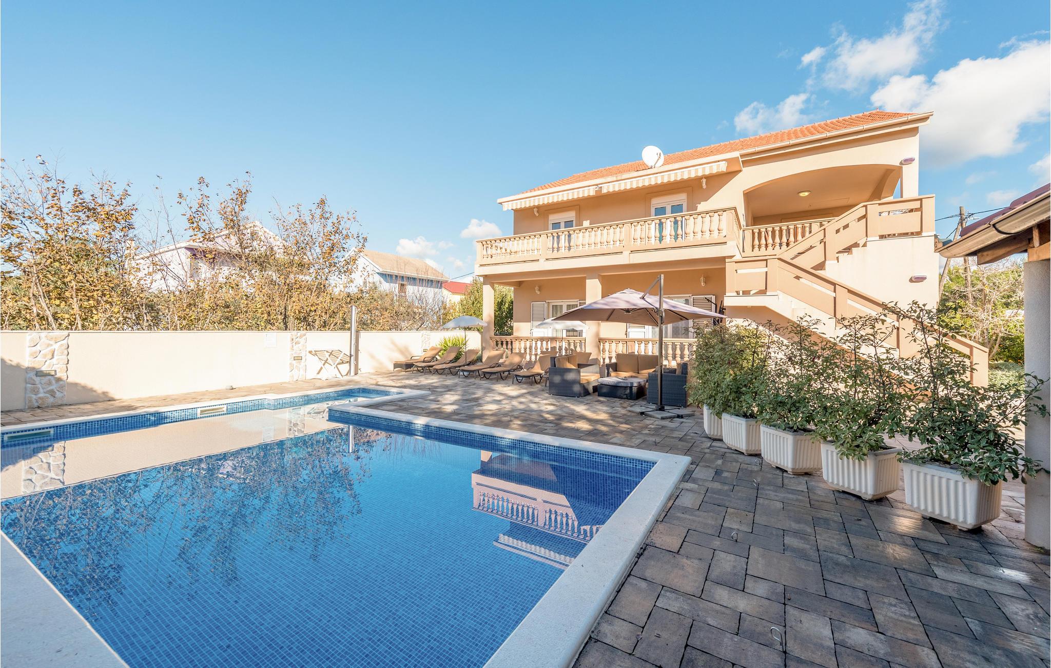 Hold jeres ferie i dette rummelige og elegante feriehus i den romantiske kystby Bibinje. Denne halvdel af et dobbelthus strækker sig over to etager og er forbundet med udendørs trapper. Til lejlighederne hører store terrasser hvor I kan nyde dagens første kop kaffe, og en swimmingpool som giver velkommen forfriskning på de dejlige varme sommerdage. Ved Bibinje ligger skønne strande med mange bekvemmeligheder og ved den nærliggende marina kan I tage på dykkerkurser, eller endagsture i båd. Kombinationen af strand og nærheden til kulturmetropolen Zadar med sine både moderne og historiske seværdigheder, fx den gamle bydel og de moderne installationer: havorgelet og hilsen til solen, samt mange andre tiltrækkende udflugtsmuligheder gør den lille ferieby til et elsket rejsemål.