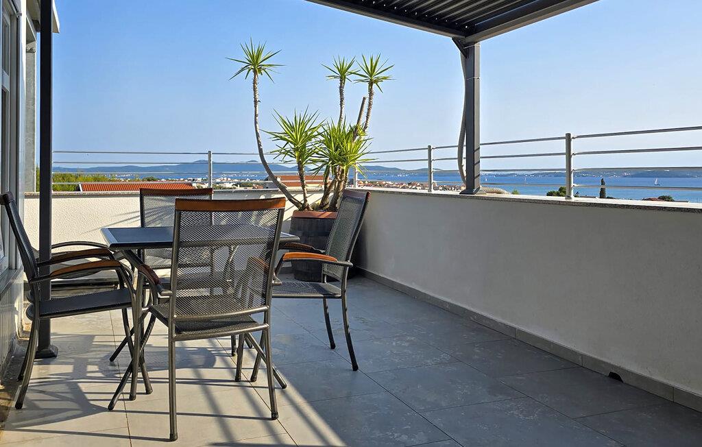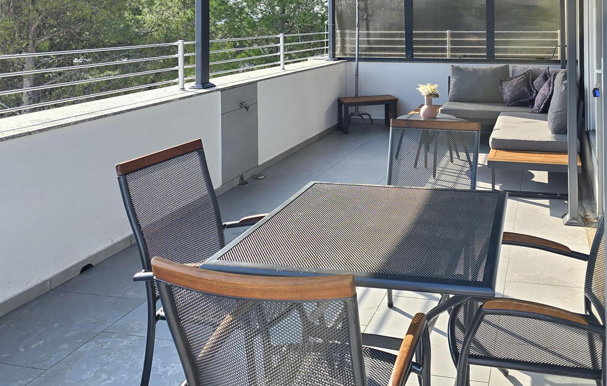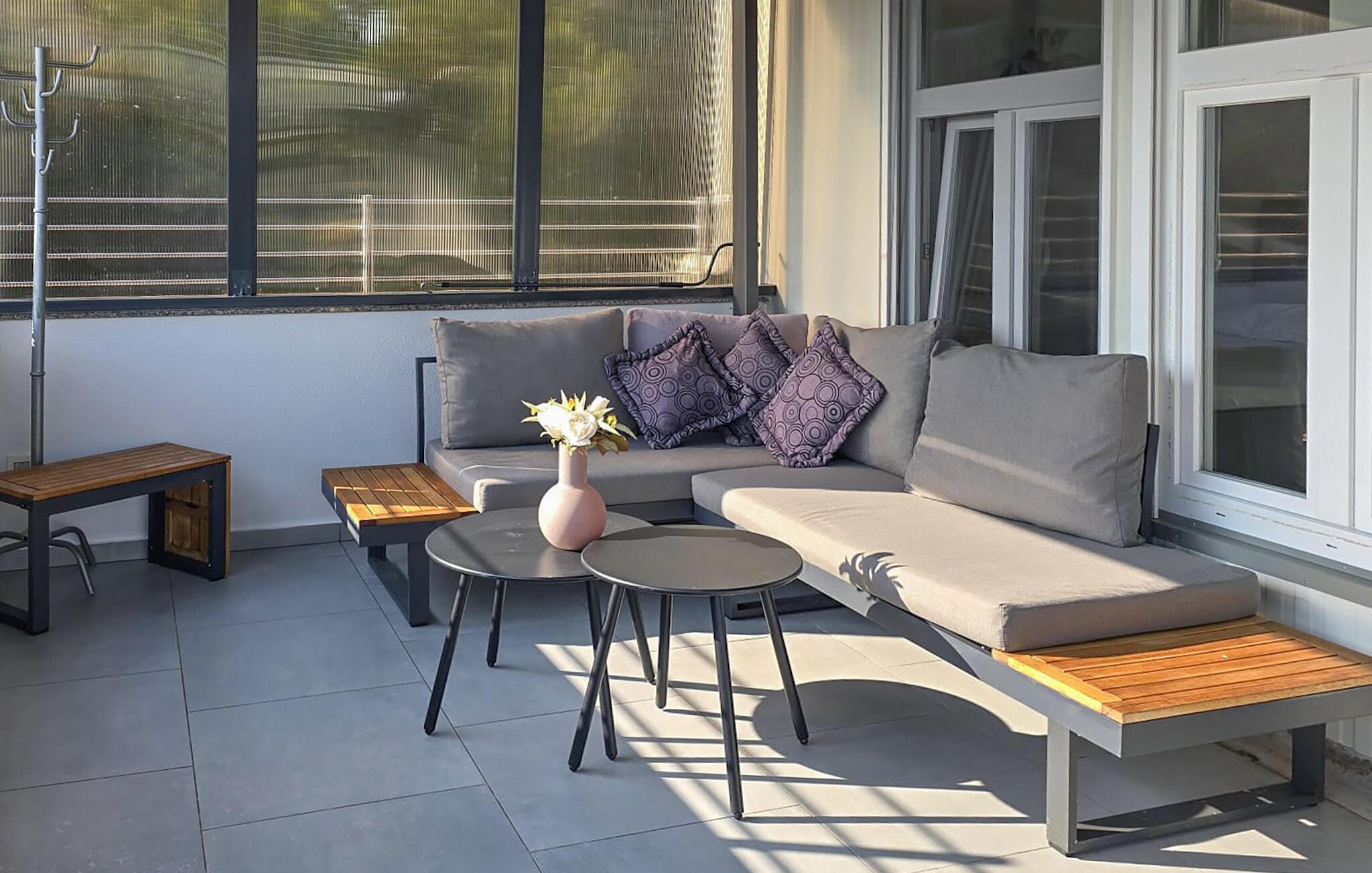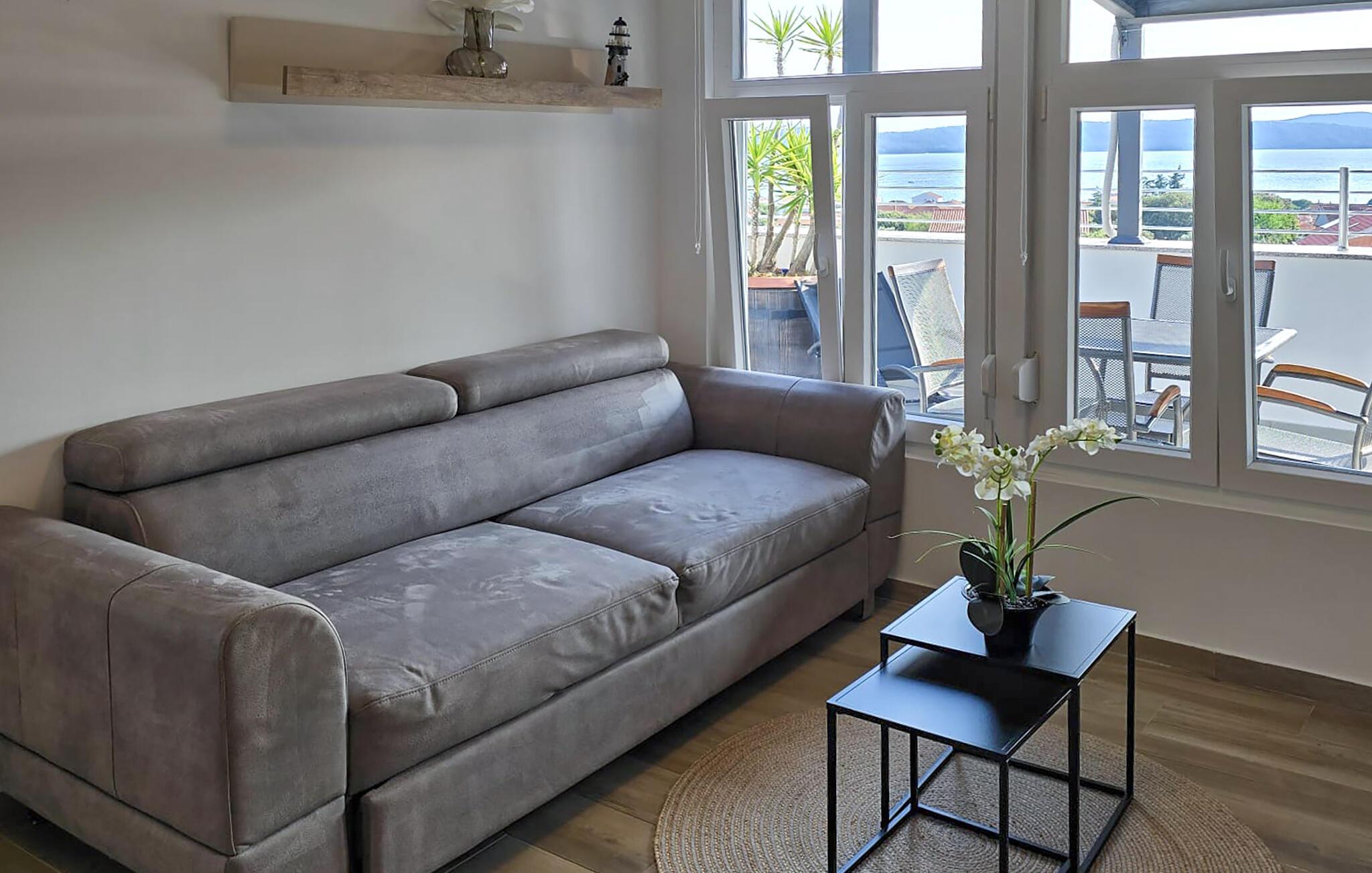 Jeres terrasse er det ideelle sted til en afslappet morgenmad med udsigt over det nærliggende hav. Om aftenen kan I snakke i den varme sommernat med et glas vin.