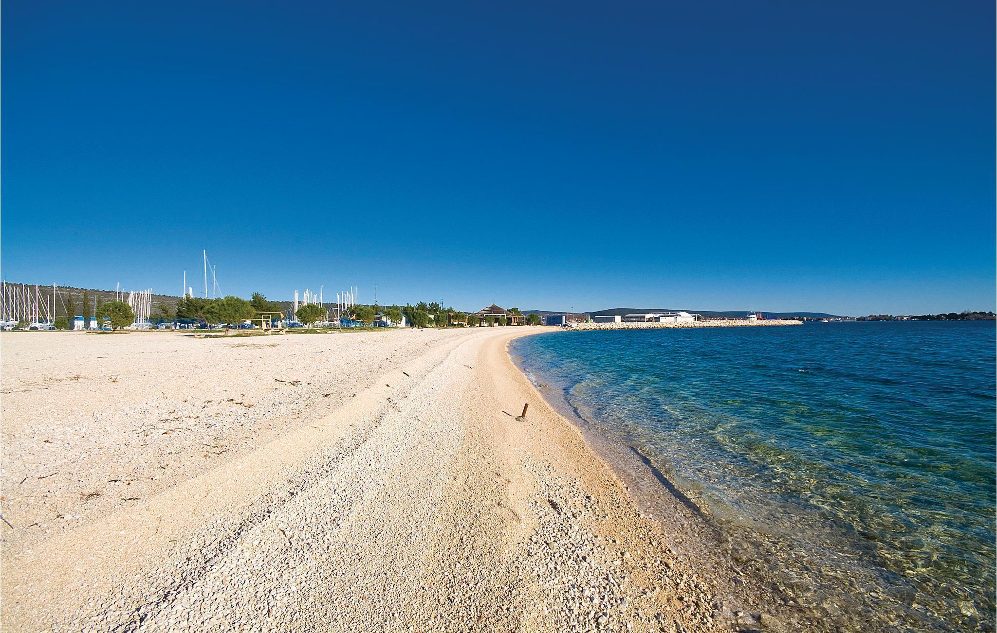 Disse dejlige ferielejligheder ligger ikke langt fra stranden med volleyballnet og en cafebar, hvor I kan spise morgenmad og hygge jer til langt ud på natten med kulørte drinks. Fra balkonen er der udsigt ud over det blinkende blå hav, og den største marina ved adriaterhavskysten. Det er kun fra CDZ243 der er panoramaudsigt. Ved siden af huset er der en fælles pool og en overdækket fælles siddeplads.