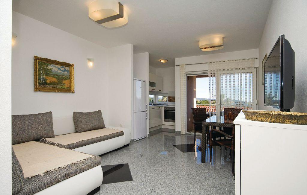 Disse dejlige ferielejligheder ligger ikke langt fra stranden med volleyballnet og en cafebar, hvor I kan spise morgenmad og hygge jer til langt ud på natten med kulørte drinks. Fra balkonen er der udsigt ud over det blinkende blå hav, og den største marina ved adriaterhavskysten. Det er kun fra CDZ243 der er panoramaudsigt. Ved siden af huset er der en fælles pool og en overdækket fælles siddeplads.