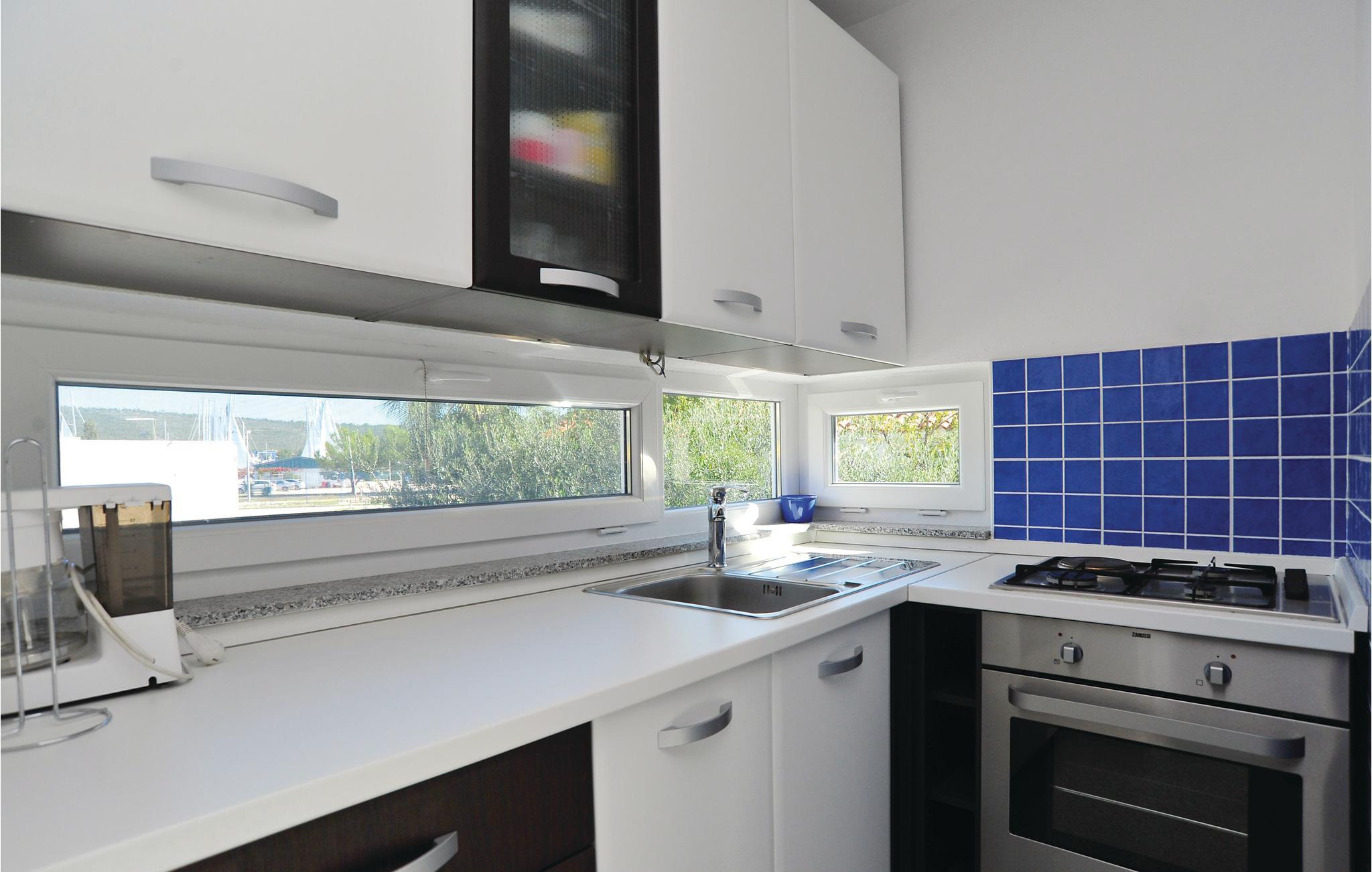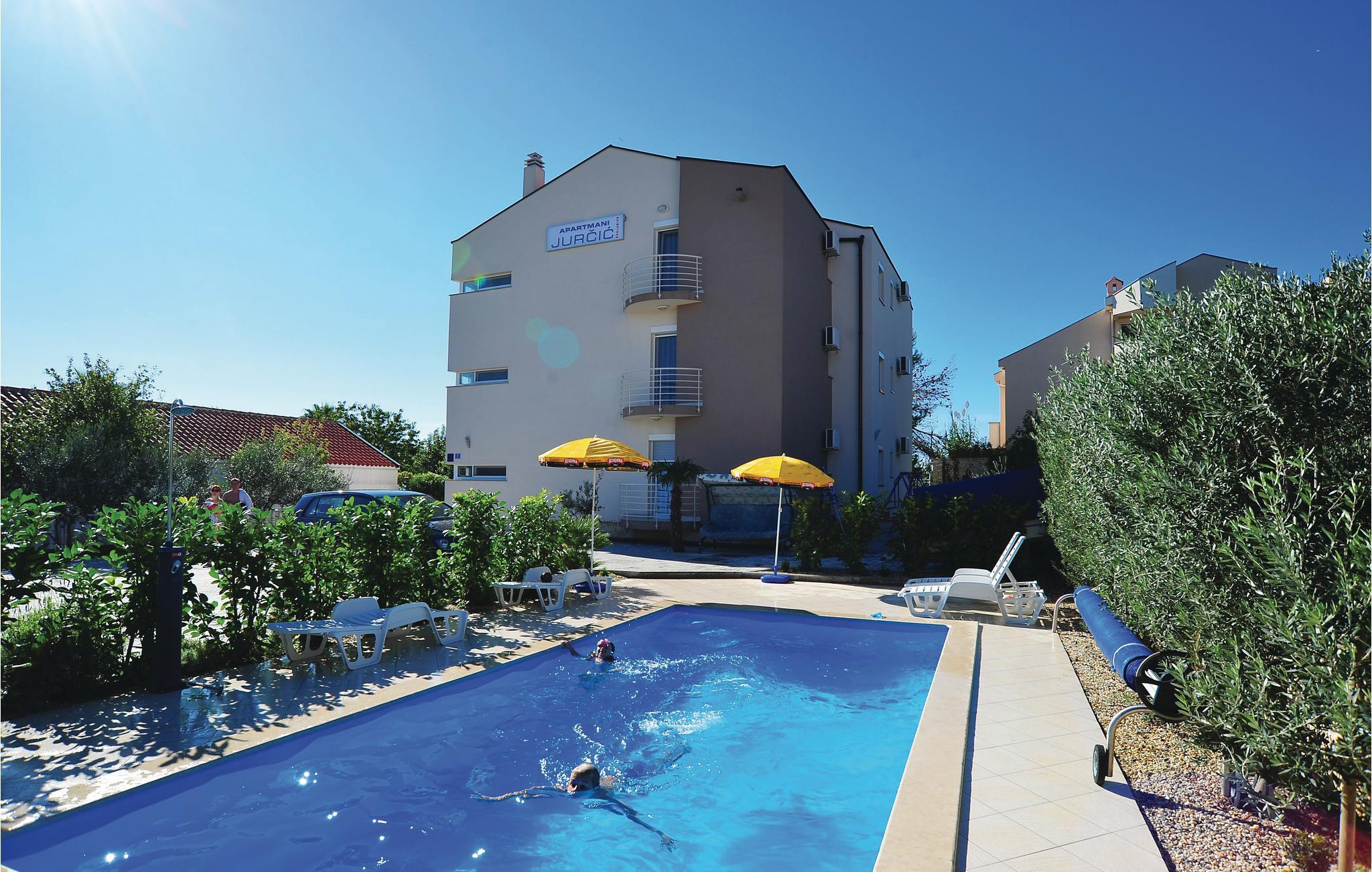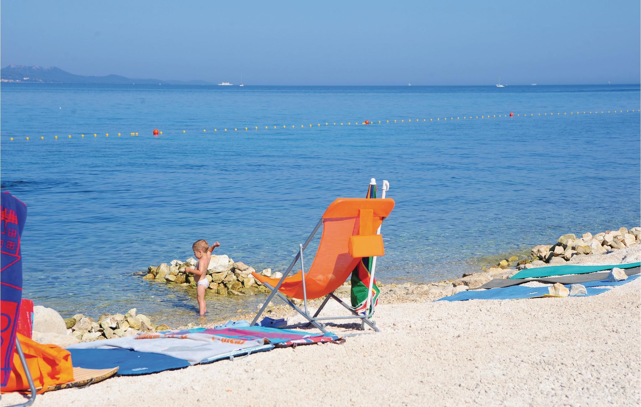 Disse dejlige ferielejligheder ligger ikke langt fra stranden med volleyballnet og en cafebar, hvor I kan spise morgenmad og hygge jer til langt ud på natten med kulørte drinks. Fra balkonen er der udsigt ud over det blinkende blå hav, og den største marina ved adriaterhavskysten. Det er kun fra CDZ243 der er panoramaudsigt. Ved siden af huset er der en fælles pool og en overdækket fælles siddeplads.