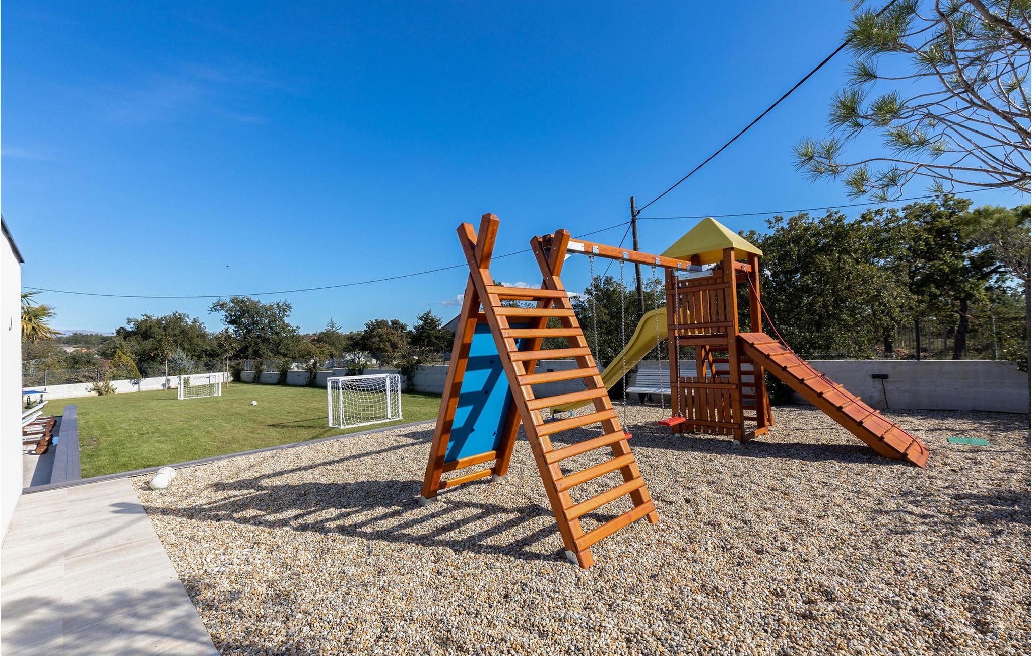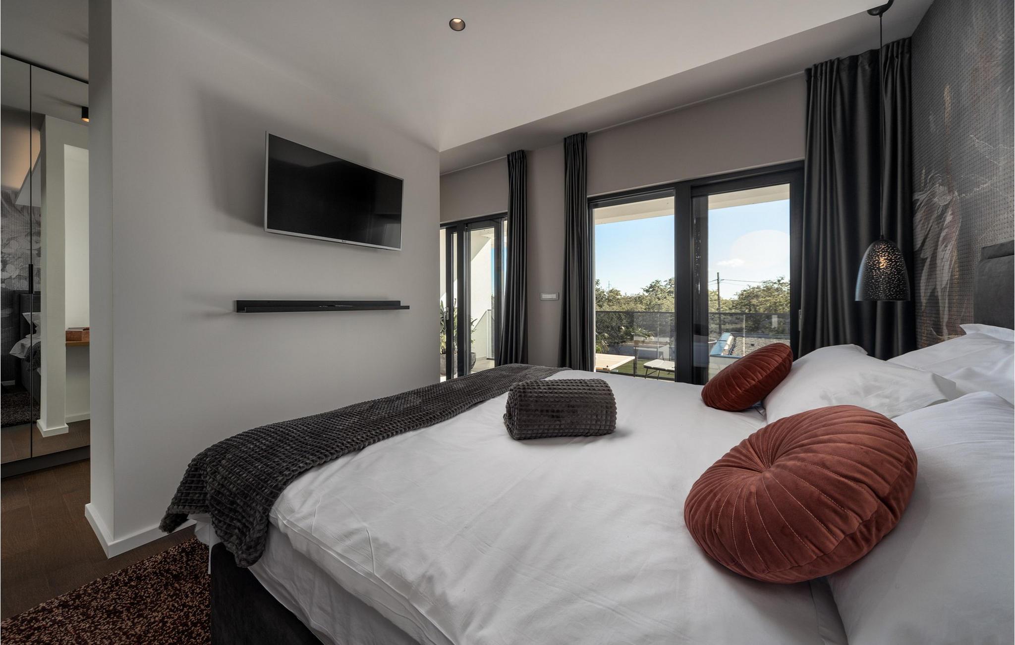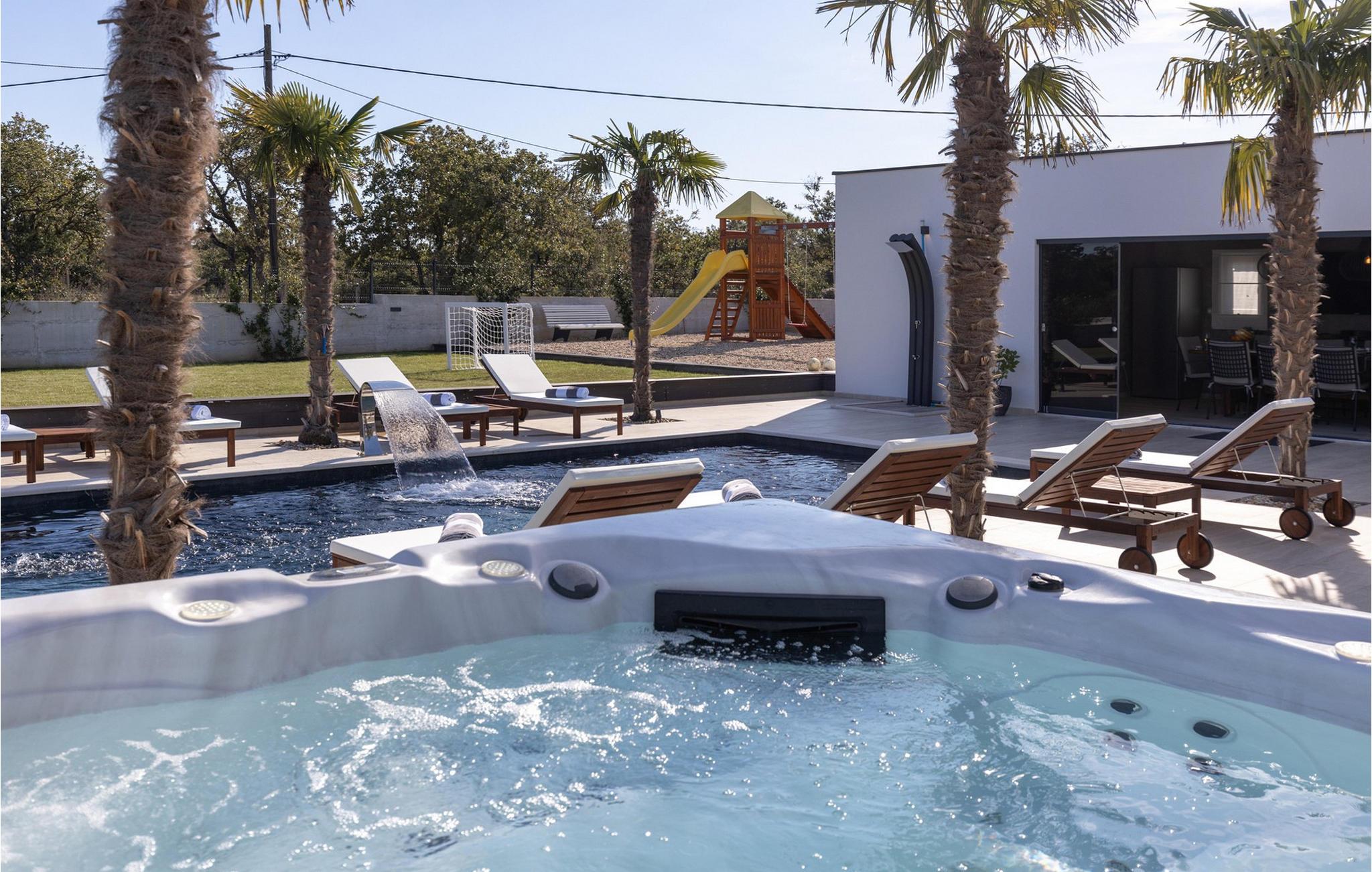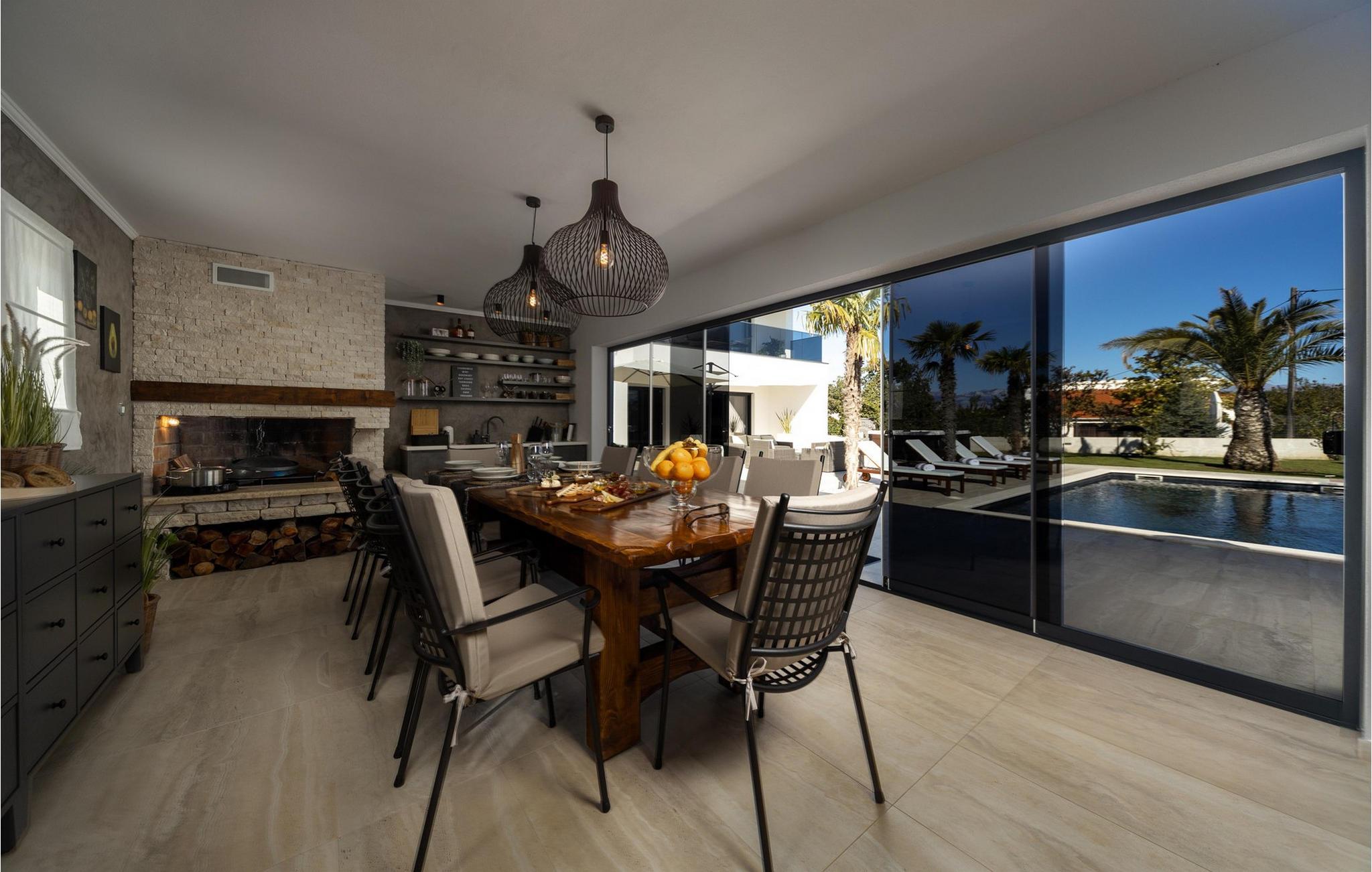 Nyd en dejlig ferie i dette fantastisk beliggende feriehus med pool, spabad og attraktive indendørsaktiviteter. Villa Quercus byder jer velkommen til en moderne og stilfuld atmosfære præget af rene linjer og materialer af høj kvalitet. Den åbne stue og spisestue med store glasfacader kombinerer elegance og komfort og lægger op til at tilbringe tid sammen med at snakke eller nyde en spilleaften. Tilbered lækre måltider i det moderne, veludstyrede køkken og forkæl familien og venner. Aktivitetsområdet med billard, bordfodbold og egen vinbar tilbyder mange muligheder for hyggelige aftener. Start dagen med en dukkert i den forfriskende pool, nyd solen på de behagelige liggestole eller slap af i spabadet med en kølig drink i hånden. På den rummelige terrasse kan I nyde et afslappet måltid, mens børnene leger på legepladsen eller spiller fodbold i haven. Om aftenen forvandles omgivelserne til et udendørs paradis, ideelt til afslapning i slutningen af dagen med blød belysning og middelhavsstemning. Briševo er det ideelle sted for en drømmeferie i Dalmatien. Byen Zadar ligger i nærheden og er fortryllende med sin historiske gamle bydel, kulturskatte og fremragende middelhavskøkken. Tag på udflugter til de charmerende kystbyer Nin, Biograd og Vodice, hvor livlige promenader og hyggelige restauranter venter på jer. Kornati-øgruppen med dens glitrende øer og turkisblå bugter, den imponerende Paklenica-kløft med dens stejle klipper og vandrestier, de spektakulære Krka-vandfald og de verdensberømte Plitvice-søer med deres smaragdgrønne kaskader er også et besøg værd.