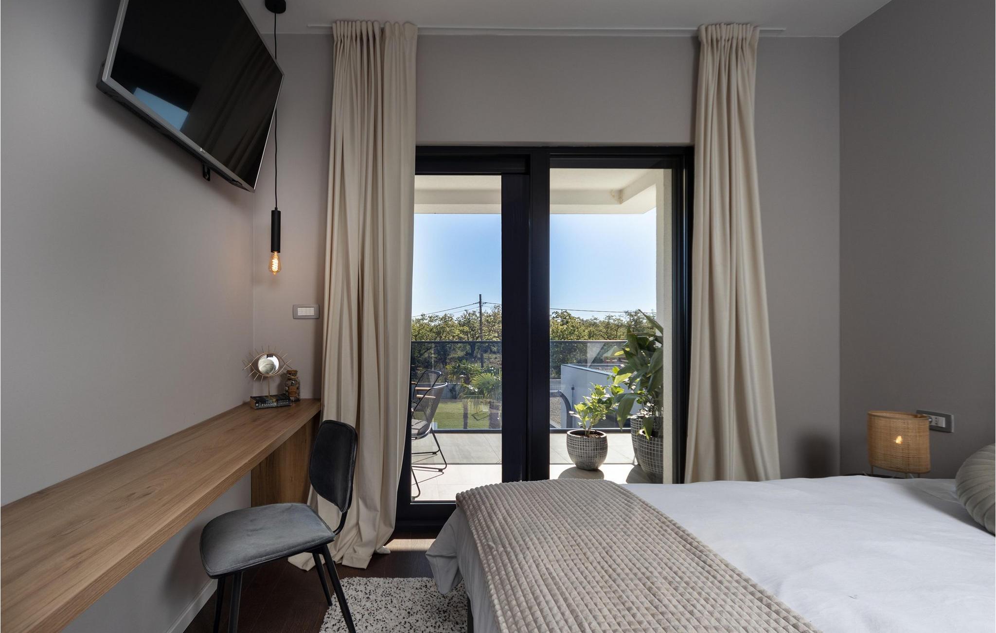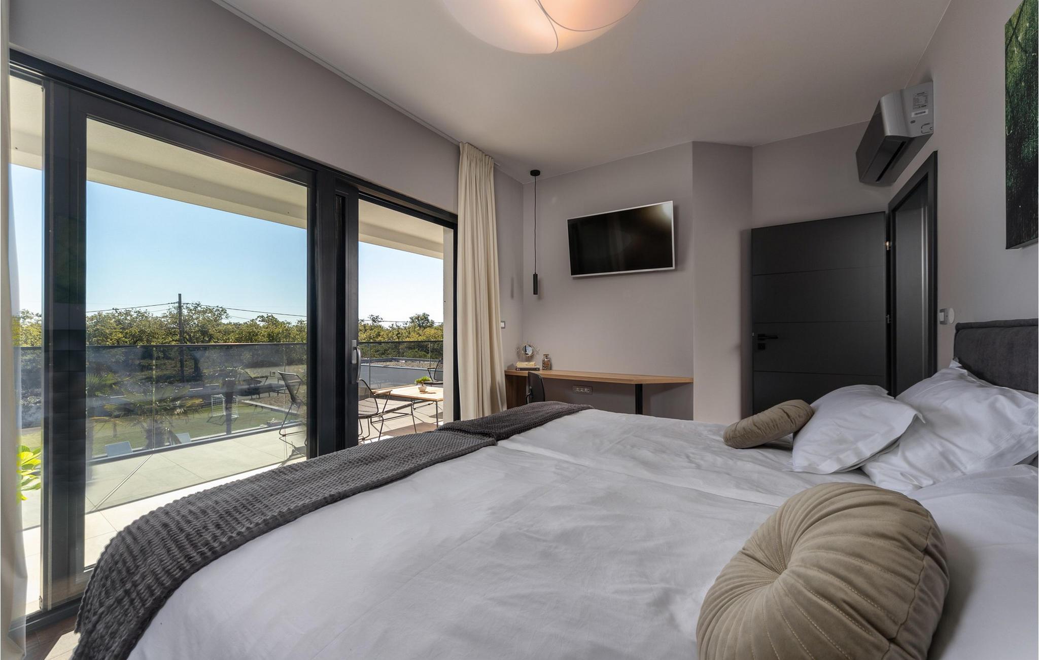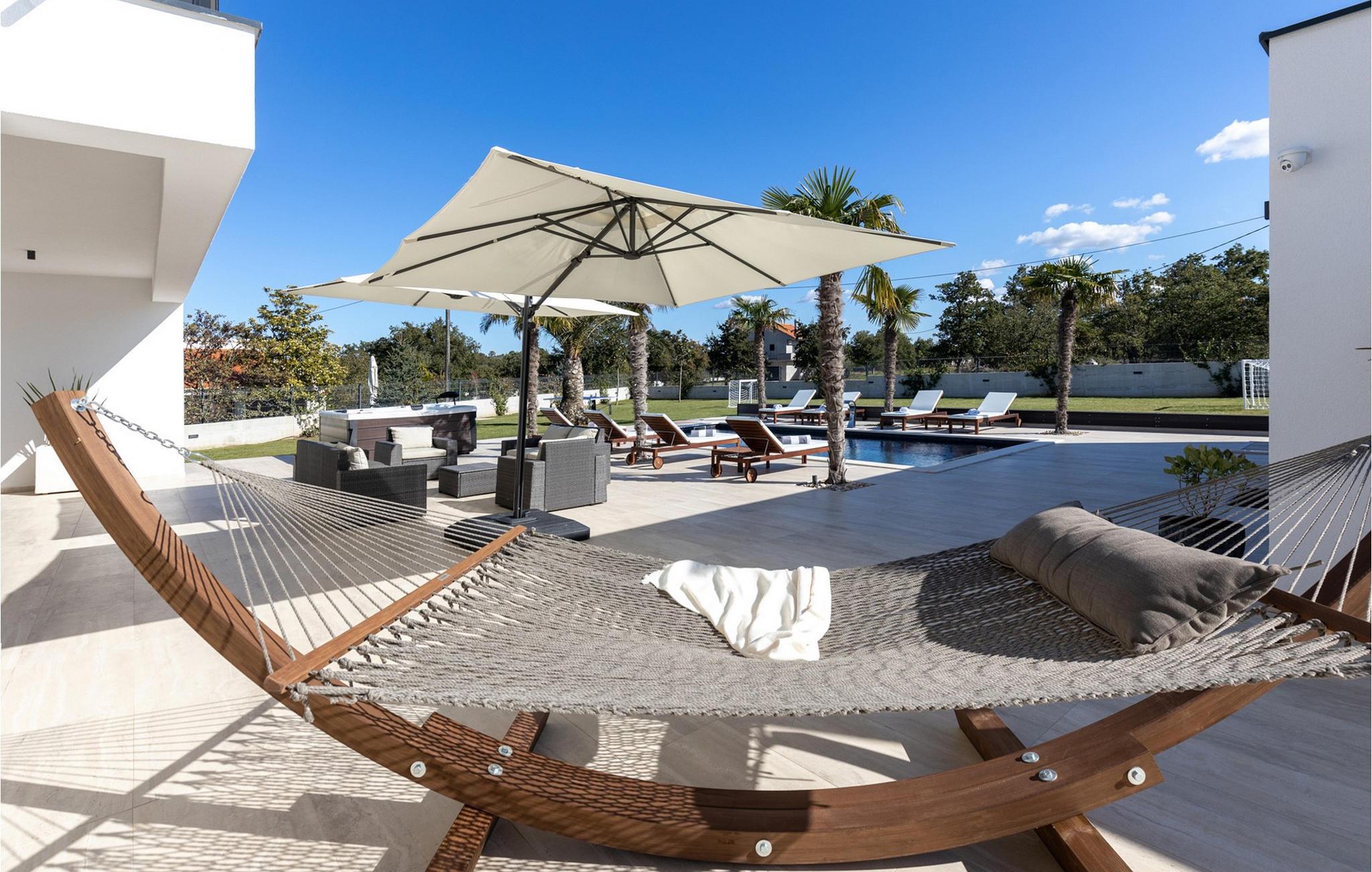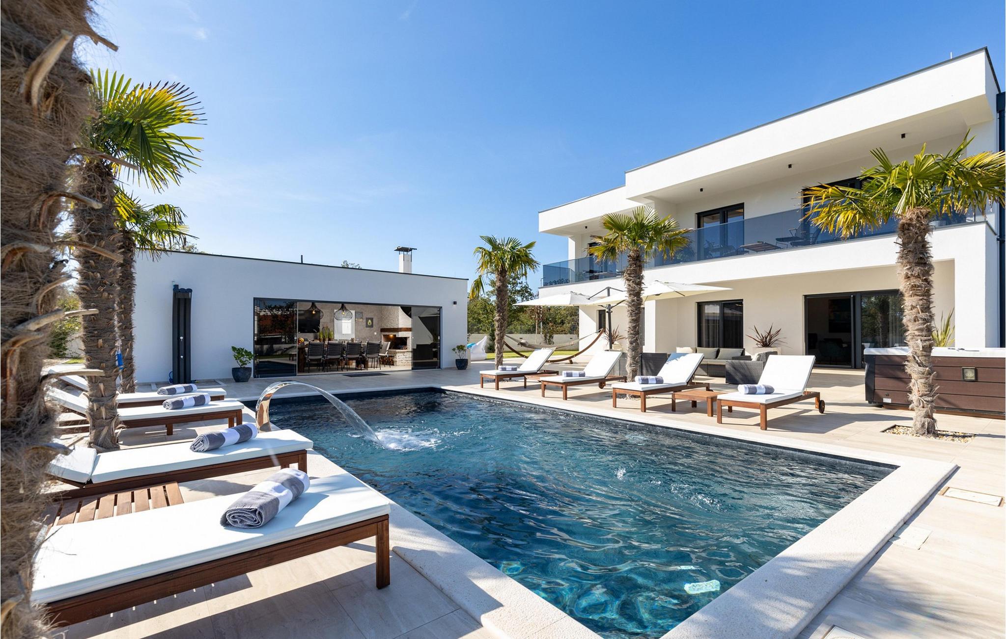 Nyd en dejlig ferie i dette fantastisk beliggende feriehus med pool, spabad og attraktive indendørsaktiviteter. Villa Quercus byder jer velkommen til en moderne og stilfuld atmosfære præget af rene linjer og materialer af høj kvalitet. Den åbne stue og spisestue med store glasfacader kombinerer elegance og komfort og lægger op til at tilbringe tid sammen med at snakke eller nyde en spilleaften. Tilbered lækre måltider i det moderne, veludstyrede køkken og forkæl familien og venner. Aktivitetsområdet med billard, bordfodbold og egen vinbar tilbyder mange muligheder for hyggelige aftener. Start dagen med en dukkert i den forfriskende pool, nyd solen på de behagelige liggestole eller slap af i spabadet med en kølig drink i hånden. På den rummelige terrasse kan I nyde et afslappet måltid, mens børnene leger på legepladsen eller spiller fodbold i haven. Om aftenen forvandles omgivelserne til et udendørs paradis, ideelt til afslapning i slutningen af dagen med blød belysning og middelhavsstemning. Briševo er det ideelle sted for en drømmeferie i Dalmatien. Byen Zadar ligger i nærheden og er fortryllende med sin historiske gamle bydel, kulturskatte og fremragende middelhavskøkken. Tag på udflugter til de charmerende kystbyer Nin, Biograd og Vodice, hvor livlige promenader og hyggelige restauranter venter på jer. Kornati-øgruppen med dens glitrende øer og turkisblå bugter, den imponerende Paklenica-kløft med dens stejle klipper og vandrestier, de spektakulære Krka-vandfald og de verdensberømte Plitvice-søer med deres smaragdgrønne kaskader er også et besøg værd.