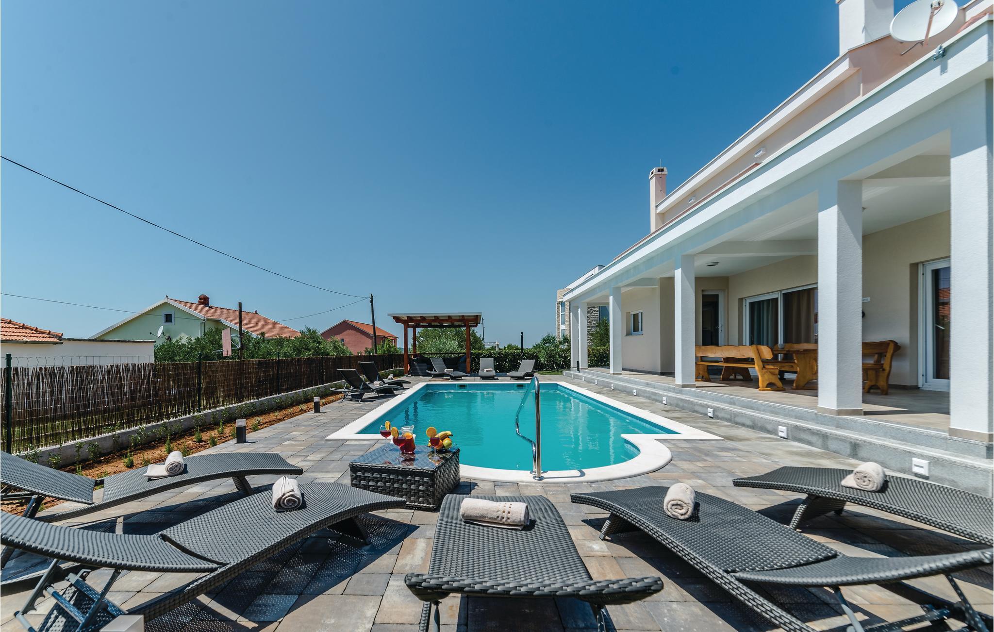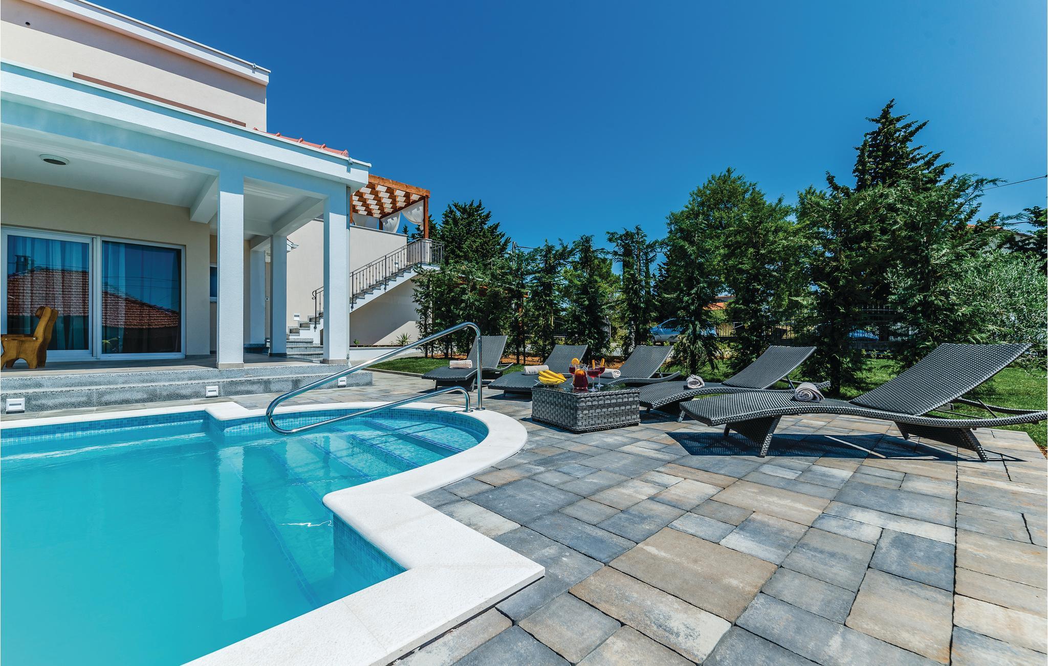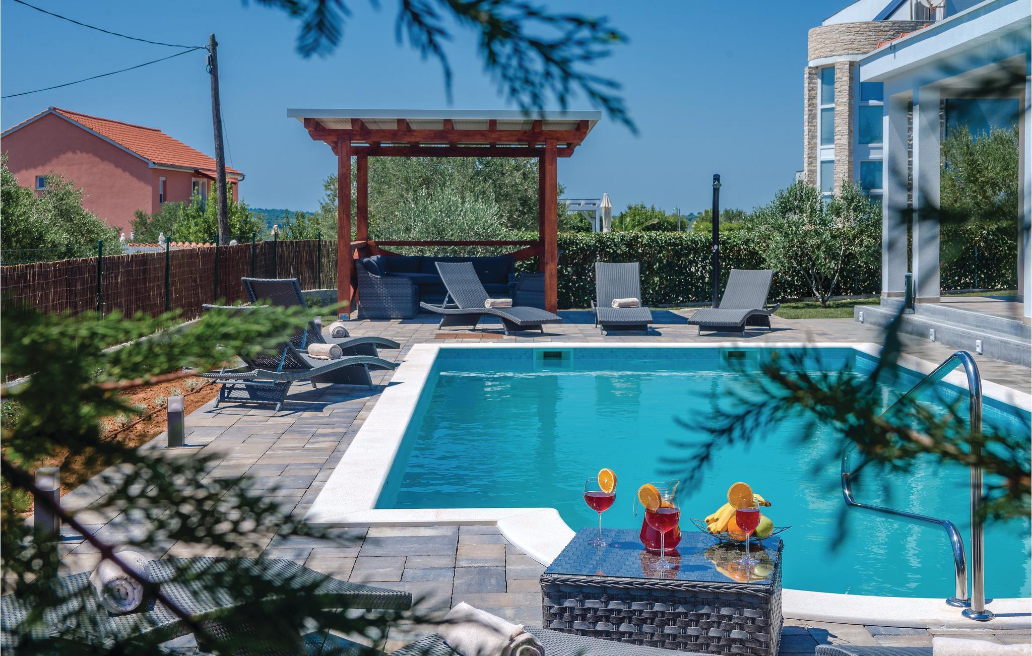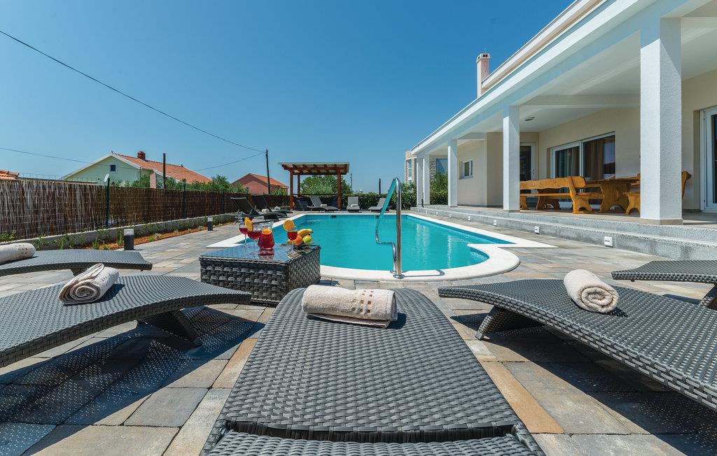 Dette herlige feriehus i nærheden af den historiske by Zadar lægger op til at drømme. Dette underskønne hus lover en dejlig og afslappende ferie. I den store pool kan I køle jer af, svømme i lange baner og bagefter slappe af i whirlpoolen. Den generøse terrasse byder på hyggelige aftener med vin og god mad. Mangfoldigheden af legemuligheder vil fortrylle de små gæster. Besøg Zadar, et paradis for kunstelskere, der byder på en skøn gammel by med mange romantiske gyder, restauranter og taverner.