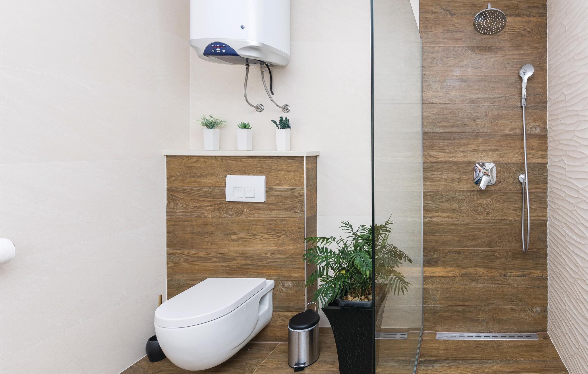 Badeværelse (nr. 1) - WC. Varmt og koldt vand. Bruser