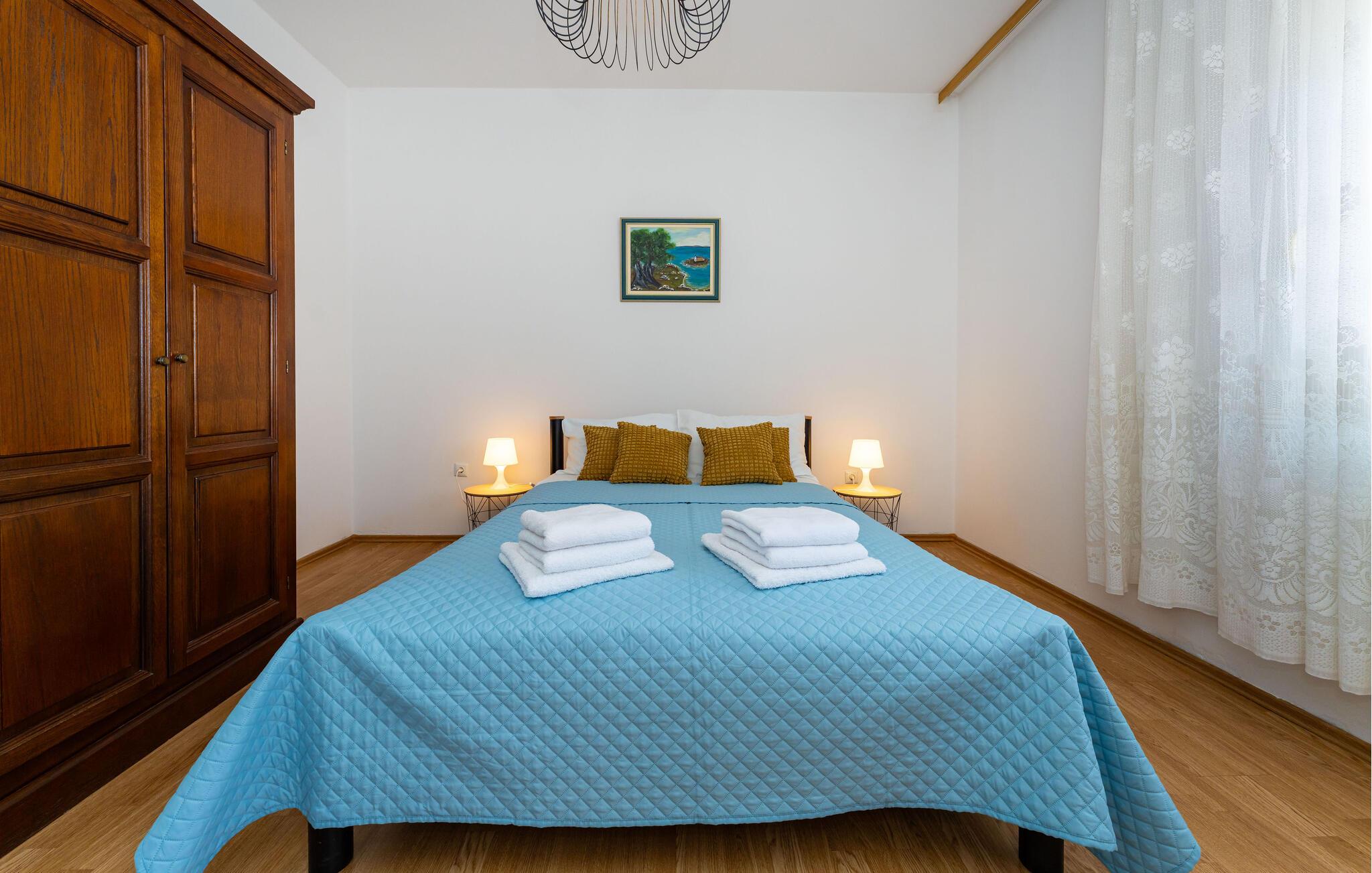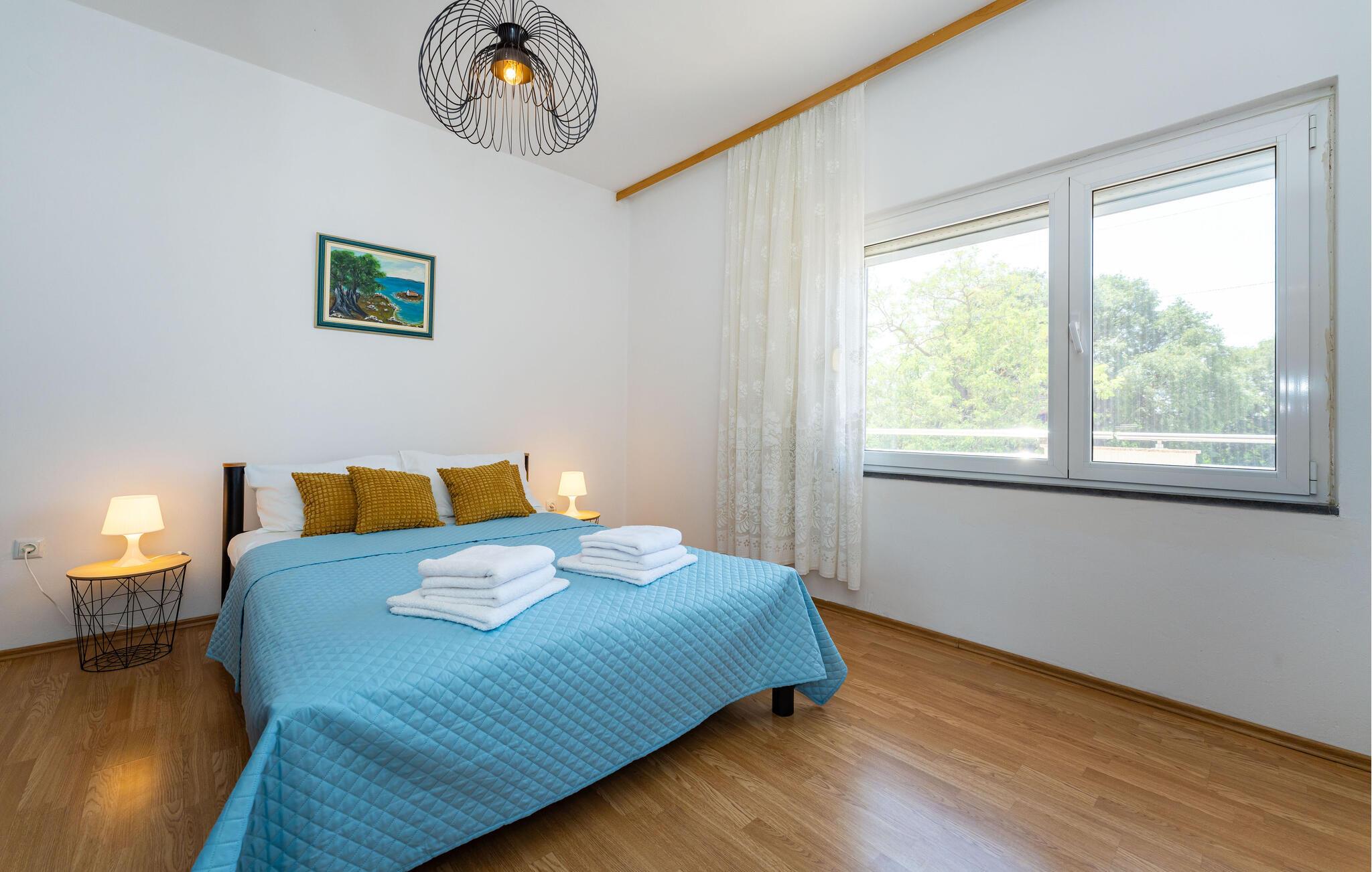 Udforsk Zadar og den hyggelige by Galovac, en region fyldt med aktiviteter og udflugtsmuligheder. Udforsk det maleriske landskab på vandreture eller cykelture gennem grønne enge og idylliske landsbyer. Besøg historiske seværdigheder som kirken Sv. Martin og det arkæologiske museum i Zadar. Naturentusiaster kan tage på udflugter til naturparken Vrana Sø eller til kysten ved Nin. Nyd lokale specialiteter på hyggelige restauranter, og oplev de lokales gæstfrihed.