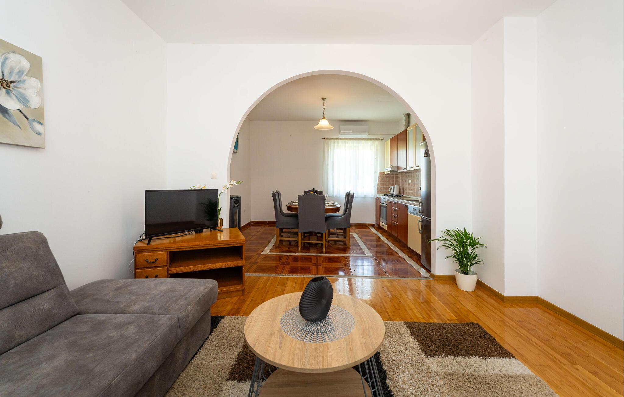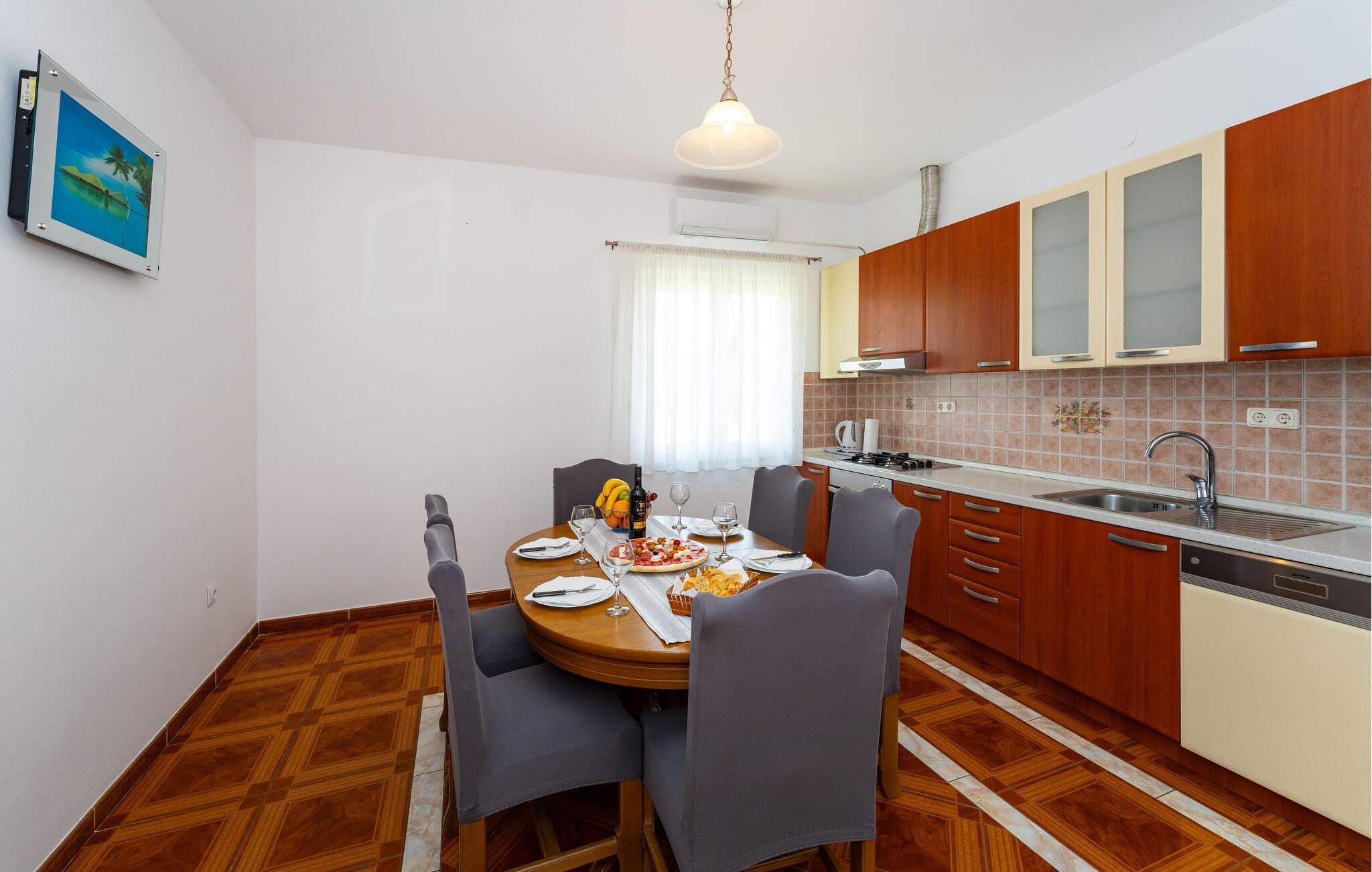 Nyd jeres ferie i denne smukke lejlighed med en klassisk indretning og en hyggelig atmosfære. Slap af i det store opholdsområde, og lav mad sammen i det veludstyrede køkken.