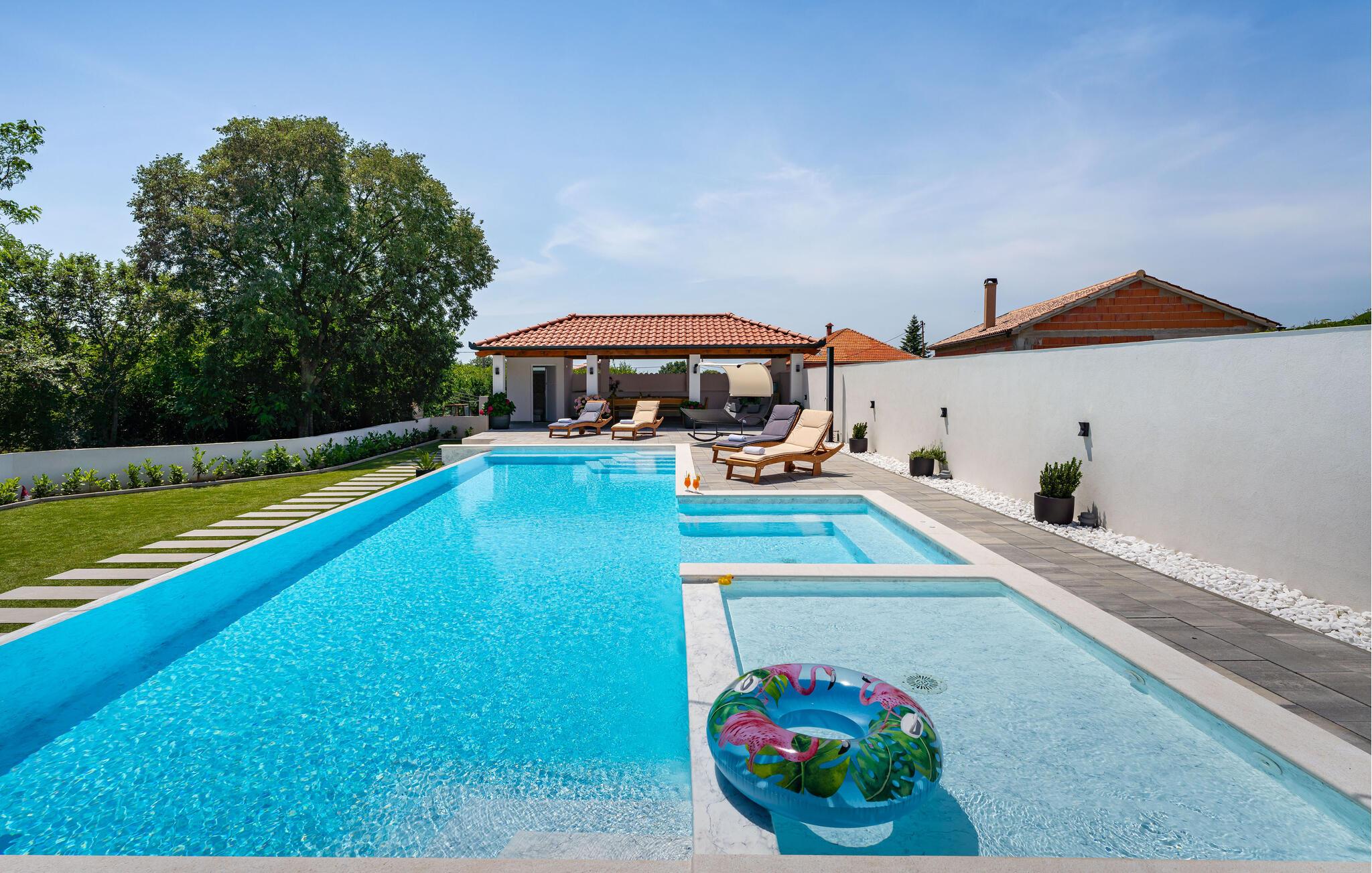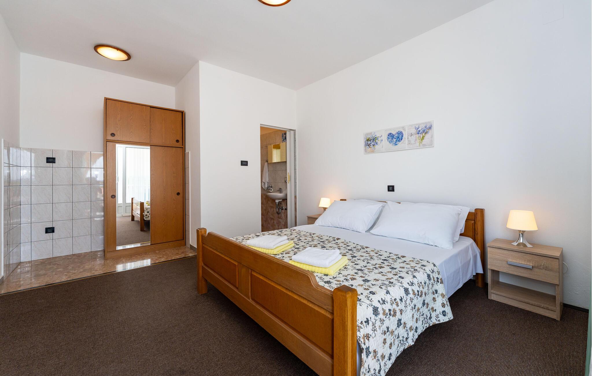 Udforsk Zadar og den hyggelige by Galovac, en region fyldt med aktiviteter og udflugtsmuligheder. Udforsk det maleriske landskab på vandreture eller cykelture gennem grønne enge og idylliske landsbyer. Besøg historiske seværdigheder som kirken Sv. Martin og det arkæologiske museum i Zadar. Naturentusiaster kan tage på udflugter til naturparken Vrana Sø eller til kysten ved Nin. Nyd lokale specialiteter på hyggelige restauranter, og oplev de lokales gæstfrihed.