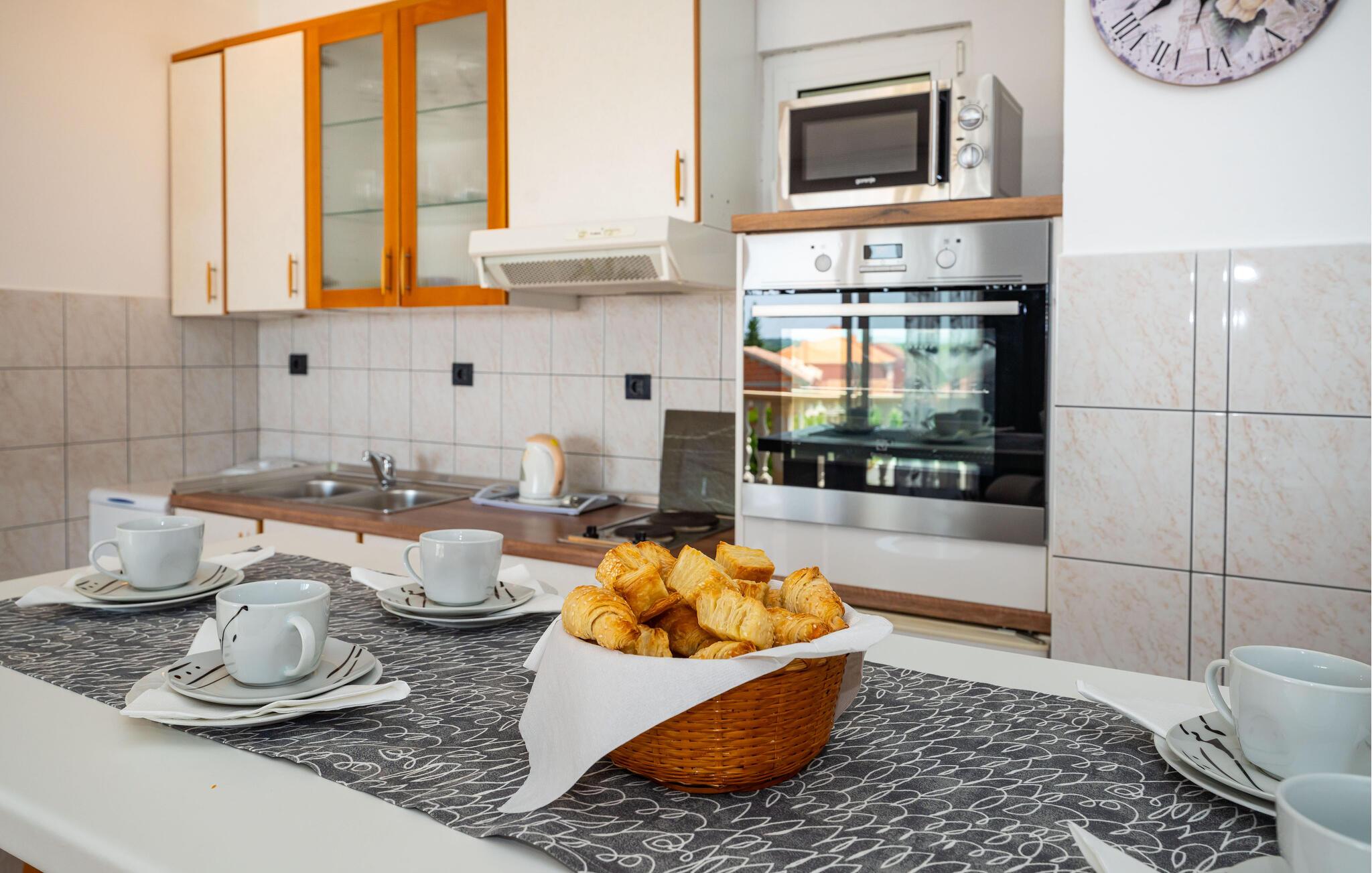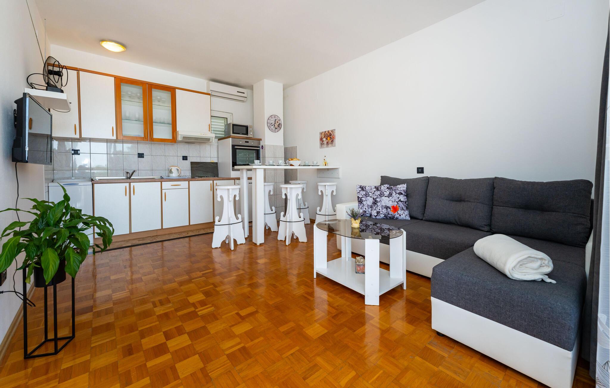 Nyd jeres ferie i denne smukke lejlighed med en klassisk indretning og en hyggelig atmosfære. Slap af i det store opholdsområde, og lav mad sammen i det veludstyrede køkken.