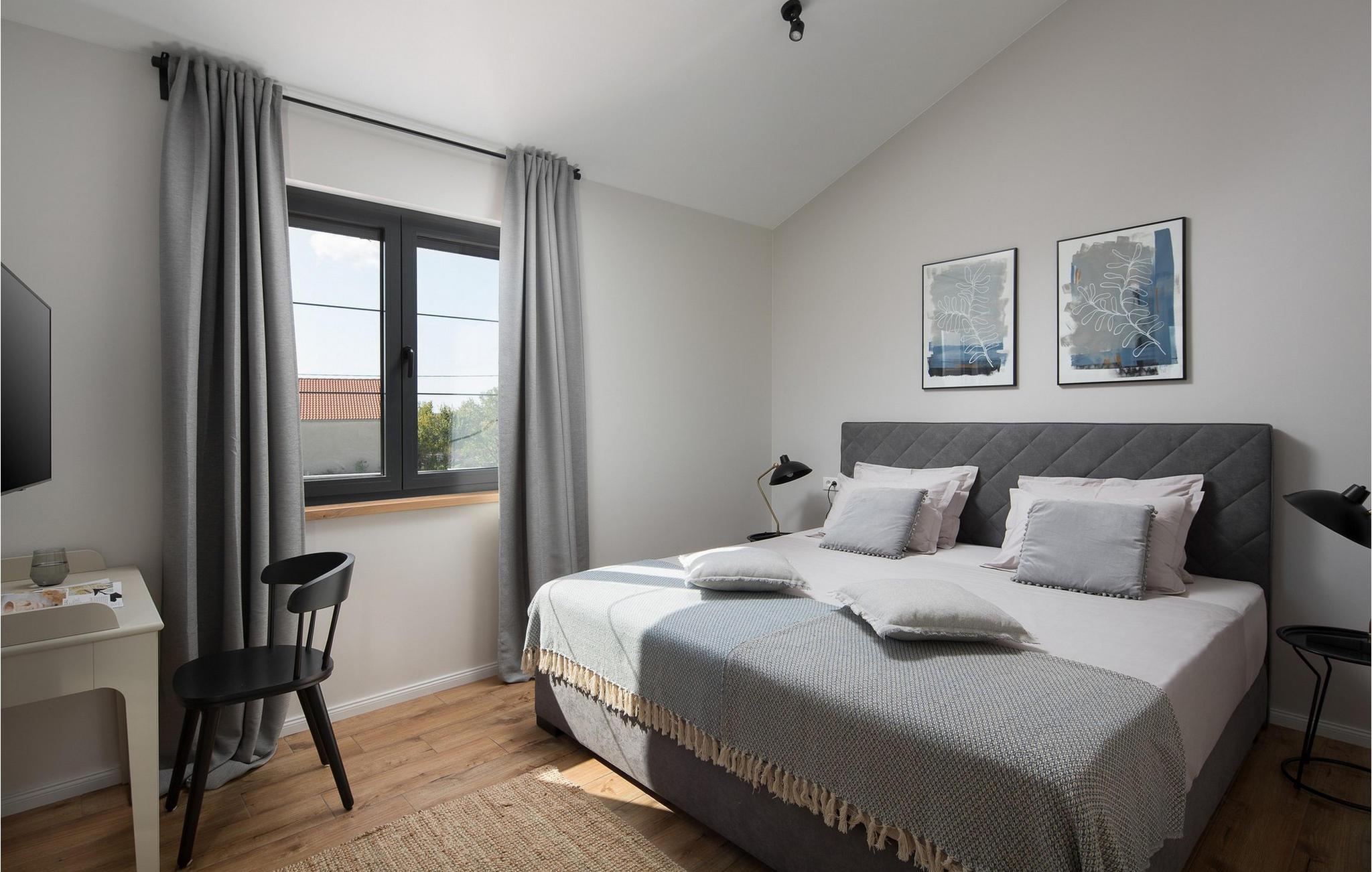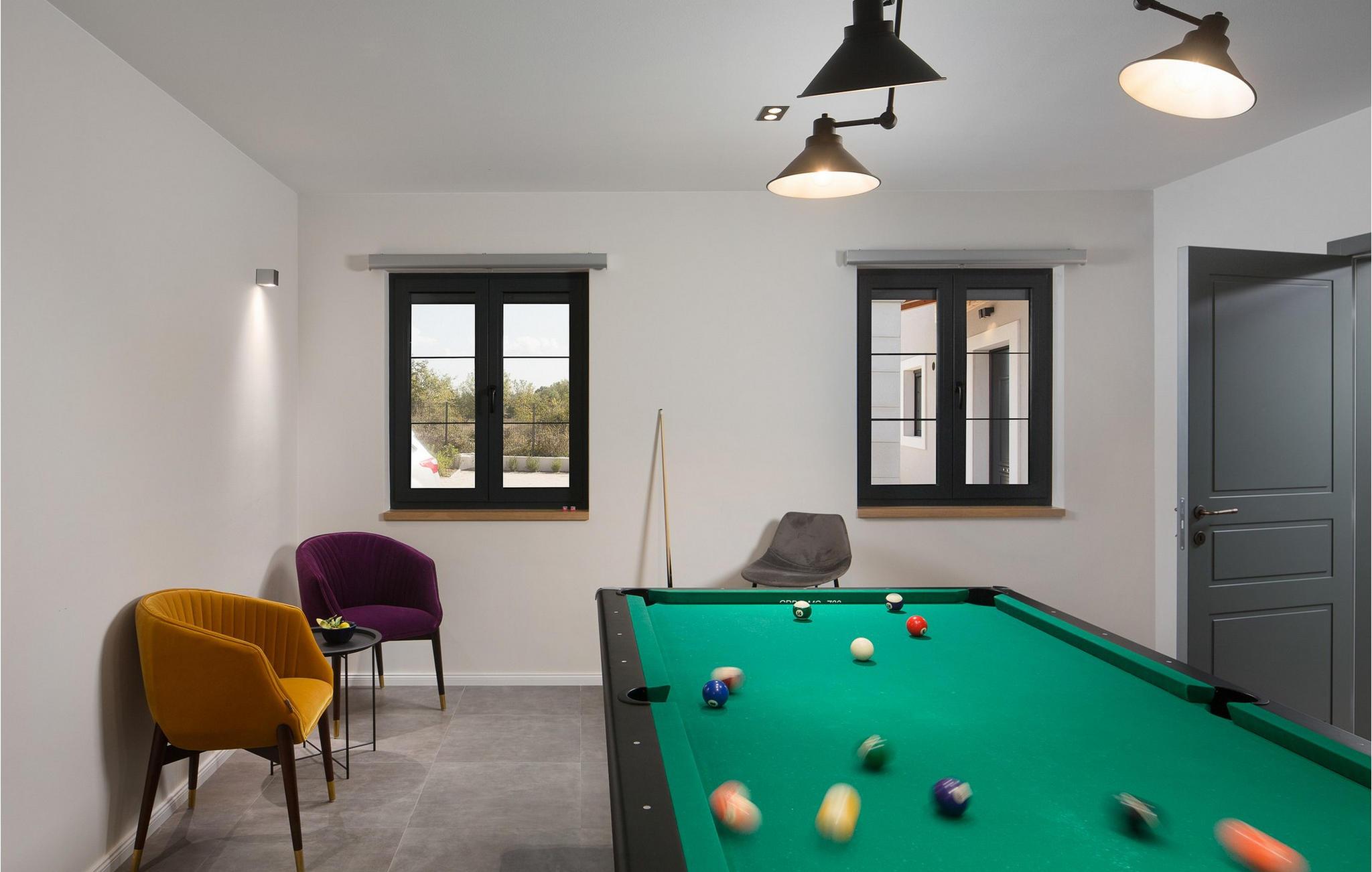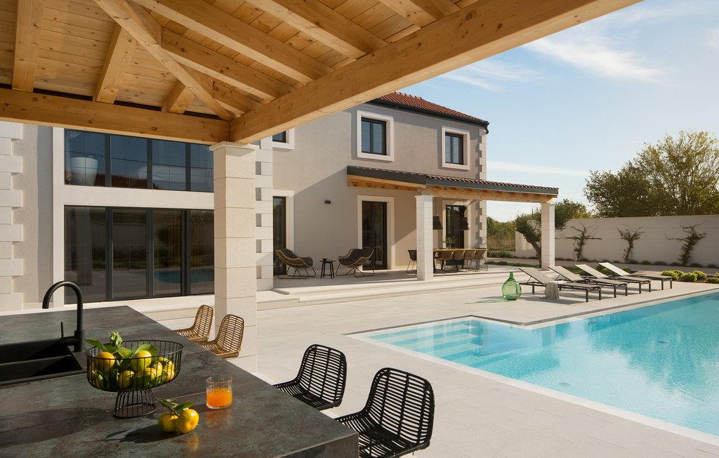 Tilbring en uforglemmelig ferie i dette luksuriøse feriehus med pool og wellness-område. Den rummelige Villa Mañana byder jer velkommen med et lyst og smagfuldt møbleret interiør, hvor moderne design kombineres med stilfulde indretningsløsninger og rustikke elementer for at skabe en virkelig behagelig atmosfære. Glæd jer til harmoniske måltider ved det indbydende spisebord, dyst ved poolbordet, dartbordet eller spil et brætspil i spillerummet, forkæl jer selv med afslappende øjeblikke i saunaen eller spabadet, og hygg jer om aftenen i den hyggelige stue. Ligesom det kærligt møblerede interiør er det elegante udendørsområde også designet til afslapning. se den spektakulære udsigt over de storslåede Velebit-bjerge fra den store terrasse på øverste etage. Den store infinity-pool, der er opvarmet om vinteren, er også et højdepunkt året rundt. Slap af på de komfortable liggestole og nyd den fredelige atmosfære i middelhavshaven og brug sommerkøkkenet til stemningsfulde grillfester efter en solskinsdag ved havet. Oplev de mange maleriske strande og nyd de forskellige fritidsaktiviteter i de charmerende kystbyer Bibinje og Sukošan. Prøv regionale specialiteter i hyggelige tavernaer og slentre gennem Zadars gamle bydel, hjemsted for det berømte Havorgel og "Hilsen til Solen". Bemærk venligst: Denne ejendom accepterer kun ungdomsgrupper (personer på 30 år eller derunder) og polterabender ved ankomsten. Eventuelle skader på indkvarteringen under jeres ophold vil blive fratrukket dette depositum.