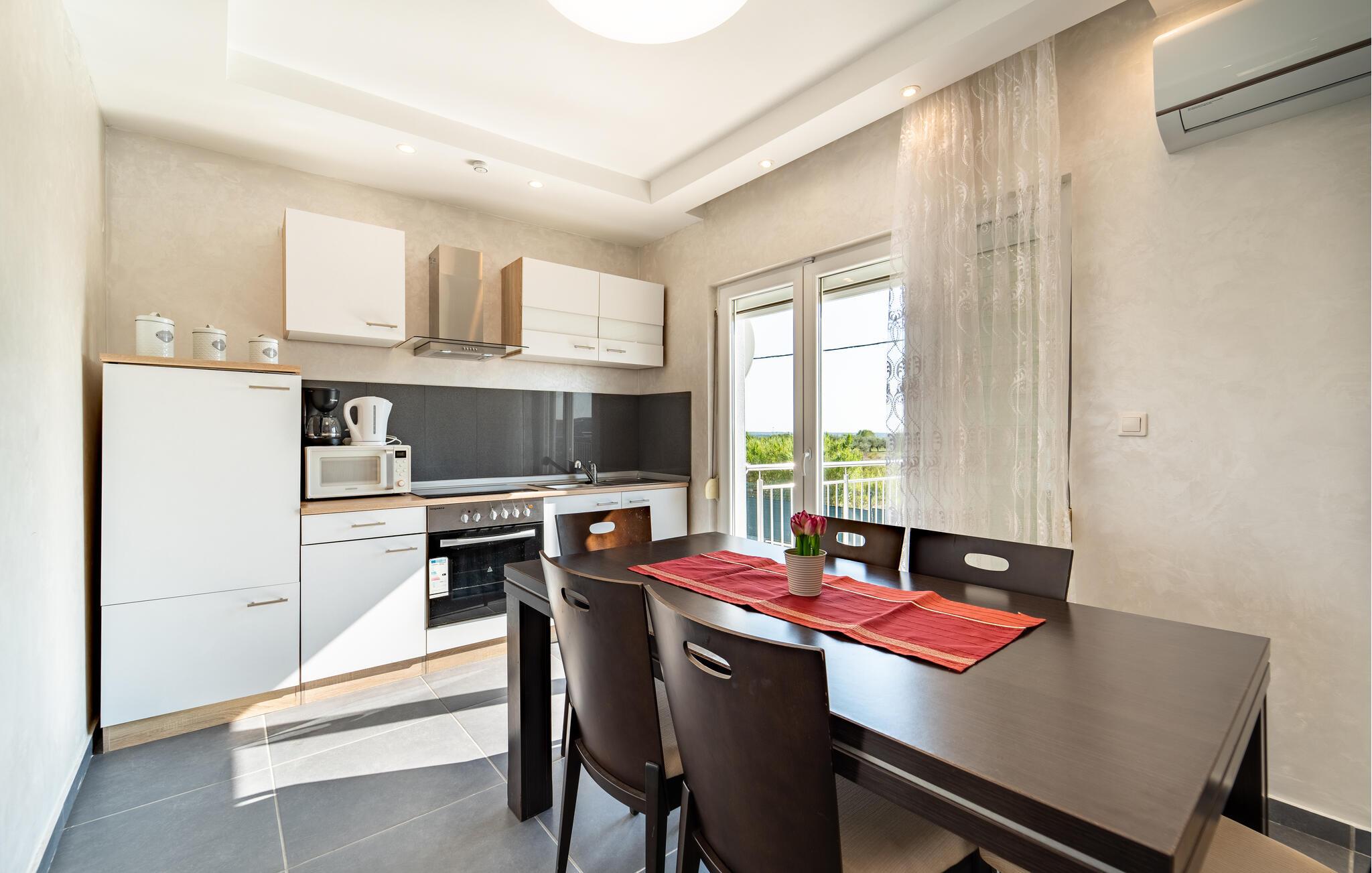 Dette vidunderlige feriehus ligger i byen Islam Latinski på en indhegnet grund med en helt privat pool, samt legeredskaber til børn. Det elegant indrettede indre består af to separate lejligheder der er forbundet med ydre trapper. Besøg den nærliggende by Zadar med sine verdenskendte seværdigheder, museer og restauranter. Gå heller ikke glip af den skønne natur i Nationalparken Paklenica og Naturparken Velebit. Ved floden Zrmanja og i dens flodseng, kan I prøve at rafte. Den nærliggende hovedvej A1 er et ideelt udgangspunkt til ture og den er en hurtig forbindelse til Zadar.