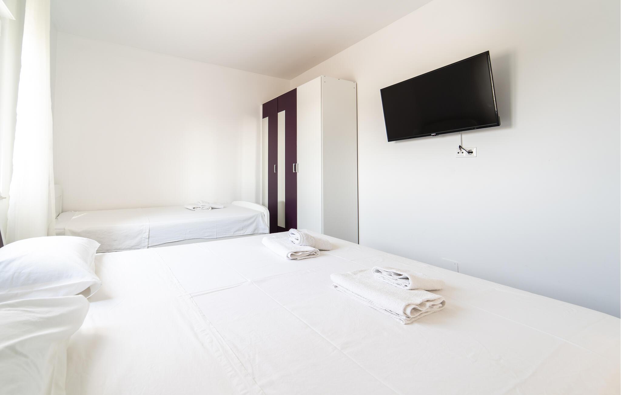 Soveværelse (nr. 1) - 1 Soveplads. (Enkeltseng(e)). 2 Sovepladser. (Dobbeltseng(e)).