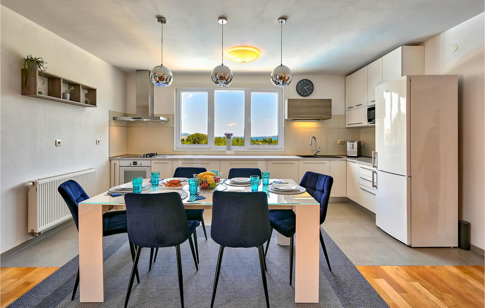 Du har valgt Dalmatien som din sommerdestination, men foretrækker stadig rolige og intime rammer. Villa Immortelle er vores anbefaling, og du vil simpelthen have det som dit andet hjem. Dette moderne hus i stueetagen glæder med sin enkelhed, og samtidig vil intet ønske forblive uopfyldt. Med i alt 3 soveværelser kan den komfortabelt rumme op til 7 personer. De suppleres af en stue med spiseplads, og villaens ægte perle er køkkenet med udsigt over havet. Nå, hvem vil ikke gerne lave mad her?