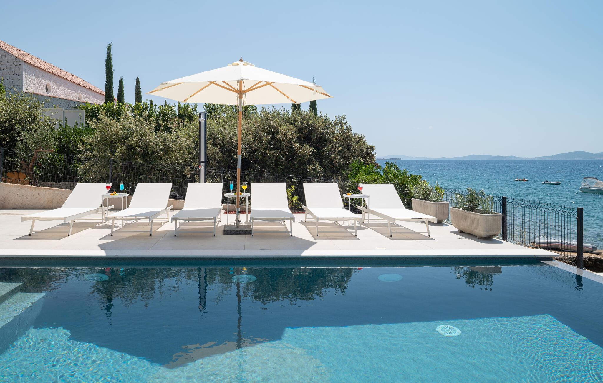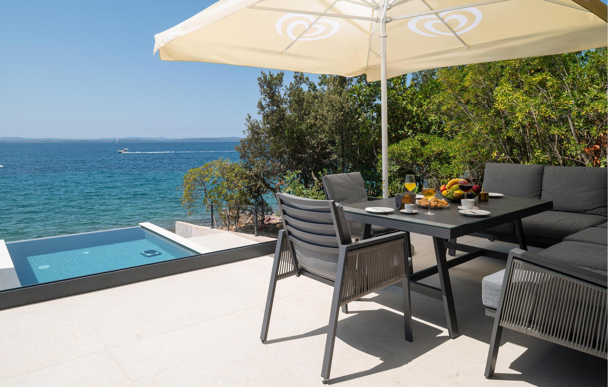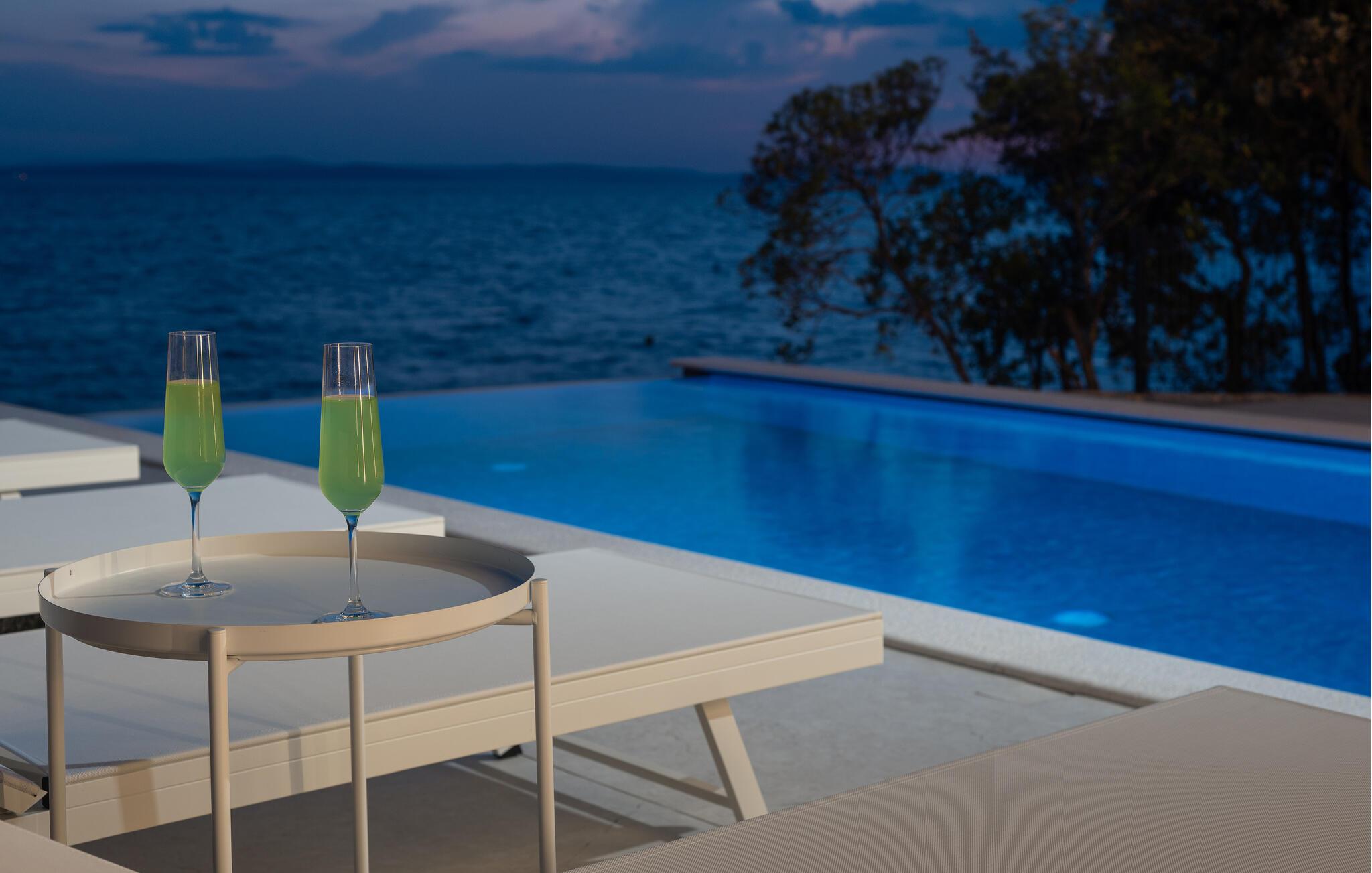 Nyd en uforglemmelig ferie i dette komfortable feriehus lige ved havet med pool og panoramaudsigt. Dette hus, der ligger direkte på stranden, lover en førsteklasses ferie. Gulv-til-loft-vinduer lukker masser af varmt naturligt lys ind, mens I nyder en fantastisk udsigt over Adriaterhavet. Elegante møbler, et diskret trælook og et sofistikeret lysdesign sikrer yderligere et afslappende ophold. Uanset om I streamer jeres yndlingsserie eller lytter til en interessant podcast, kommer I hurtigt i afslappende ferietilstand her. Hop i poolen ved de første solstråler og nyd en forfriskende dukkert om morgenen, mens en mild havbrise blæser hen over. Bagefter kan I slappe af med en kølig drink på terrassen, bladre i jeres yndlingsbog eller lave planer for den næste dag. Om aftenen inviterer terrassen jer til at nyde solnedgangens farvespil med et glas vin. Stranden ligger lige uden for døren og inviterer jer til at tilbringe afslappende timer ved havet. Tag en tur til den nærliggende by Zadar og oplev dens imponerende gamle bydel med romerske og venetianske relikvier. Om aftenen kan I nyde det unikke skue af Havorglet og "Hilsen til Solen" lige ved havnepromenaden. Udforsk Kožinos charmerende omgivelser med dens idylliske kyststier og maleriske udsigter.