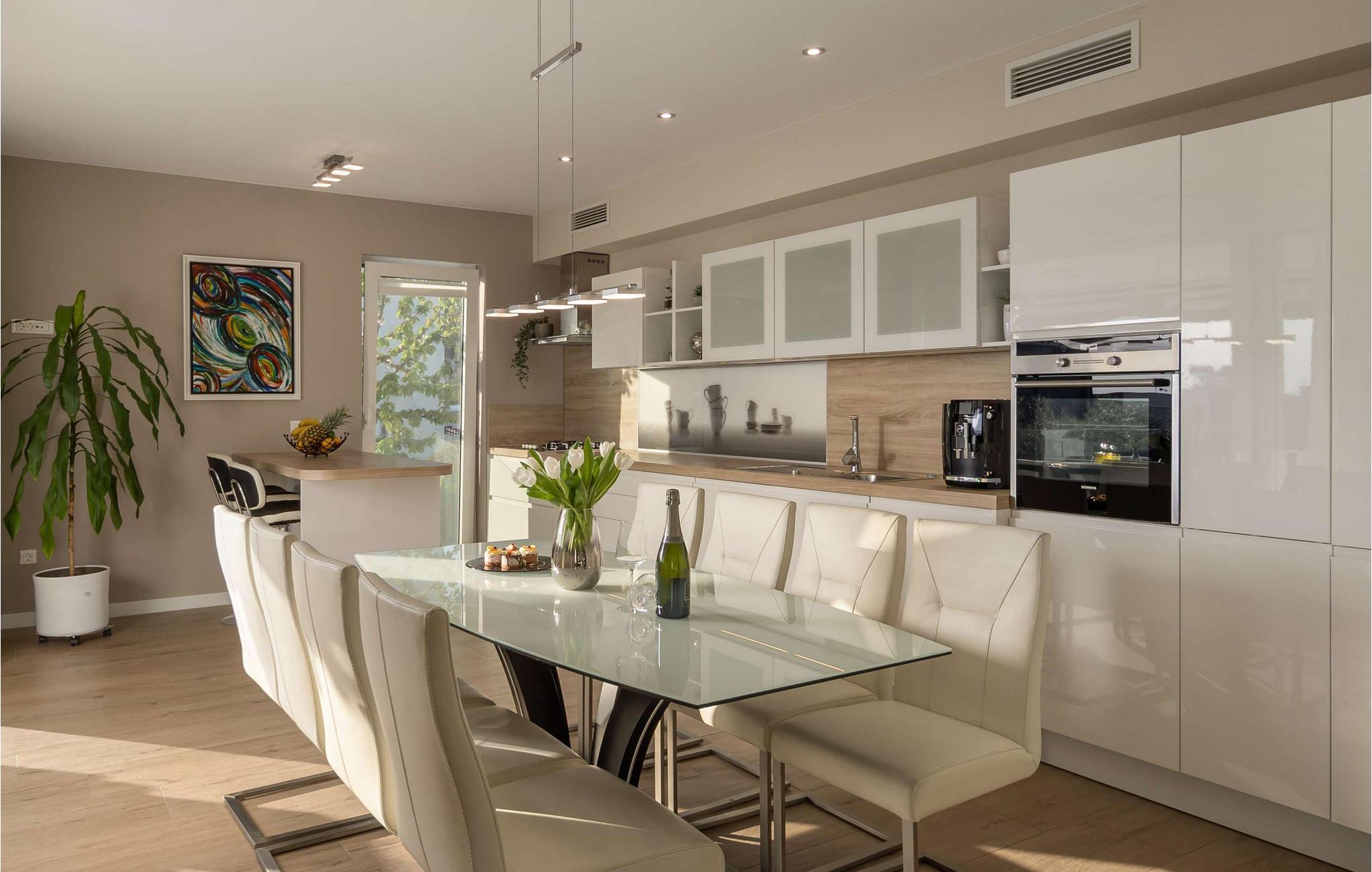 Den storslåede og moderne Villa Milagros byder jer velkommen med en lys atmosfære og stilfulde møbler. Den åbne stue med store panoramavinduer tilbyder en vidunderlig havudsigt og er perfekt til afslappende timer med læsning og en kop kaffe. Det elegante køkken flyder problemfrit over i spisestuen, hvor I kan spise med familie eller venner eller tilbringe en sjov aften med at spille bræt- og kortspil.