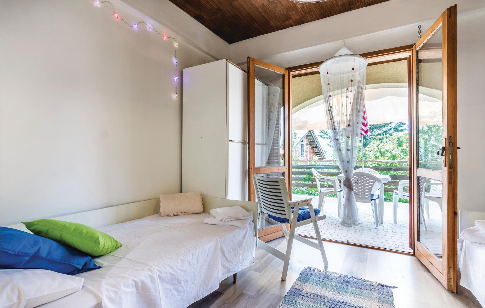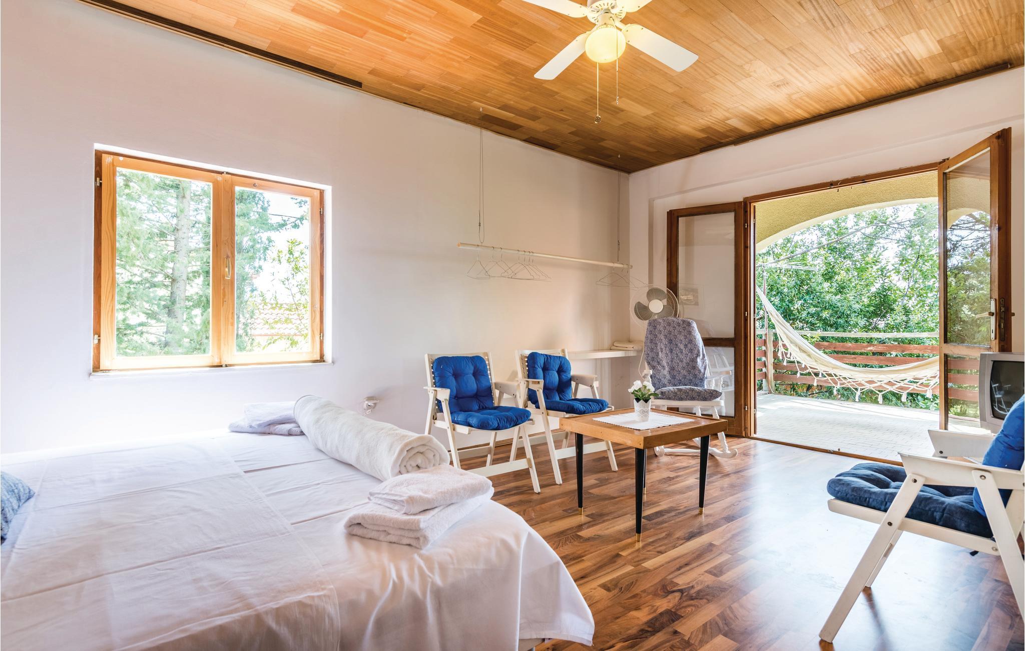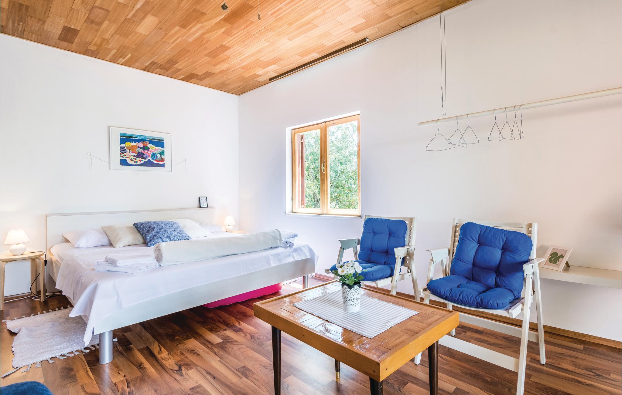 Denne enkelt og funktionelt indrettede ferielejlighed med to soveværelser ligger i grønne omgivelser i den lille landsby Šušnjar II. og på 1. sal. Der er en overdækket terrasse til afslapning. Havet er ca. 50 m herfra. Nyd at bade ved strandene, hvor der findes bænke. Spændende udflugtsmål er Zrmanja flodens slugt (ca. 10 km), Obrovac i nærheden samt byen Zadar. De sidste ca. 70 m vej til domicilet er ikke asfalteret.