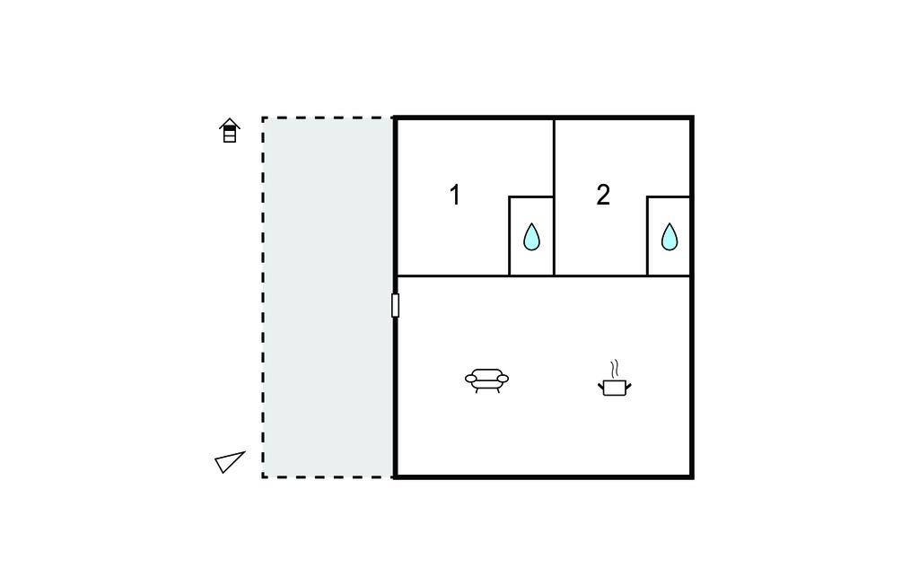 Badeværelse 6m2 (nr. 1) - WC. Varmt og koldt vand. Bruser