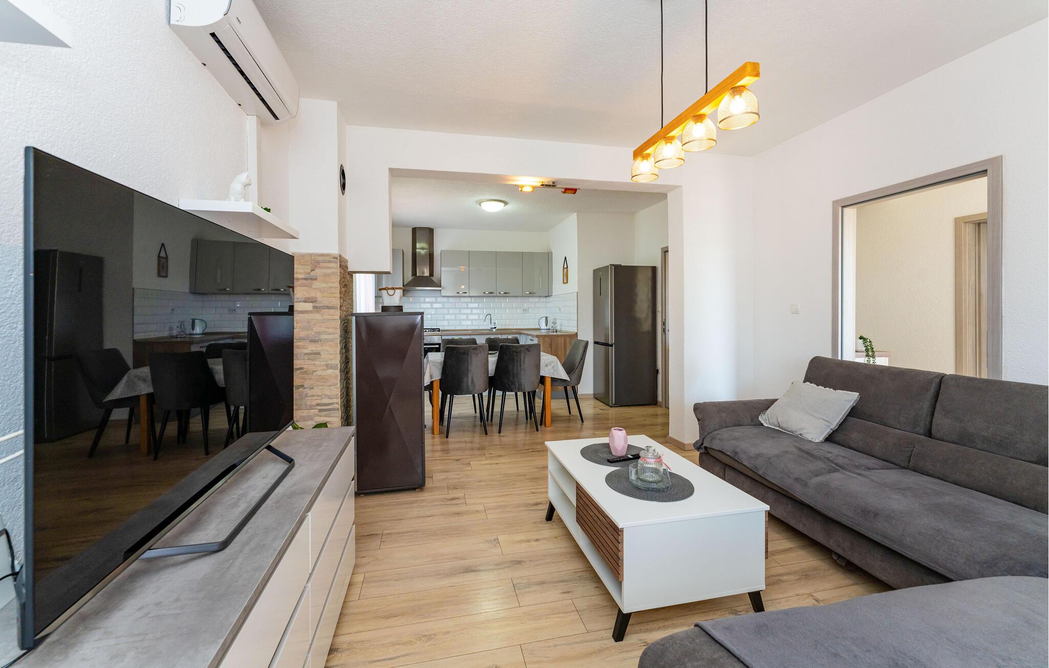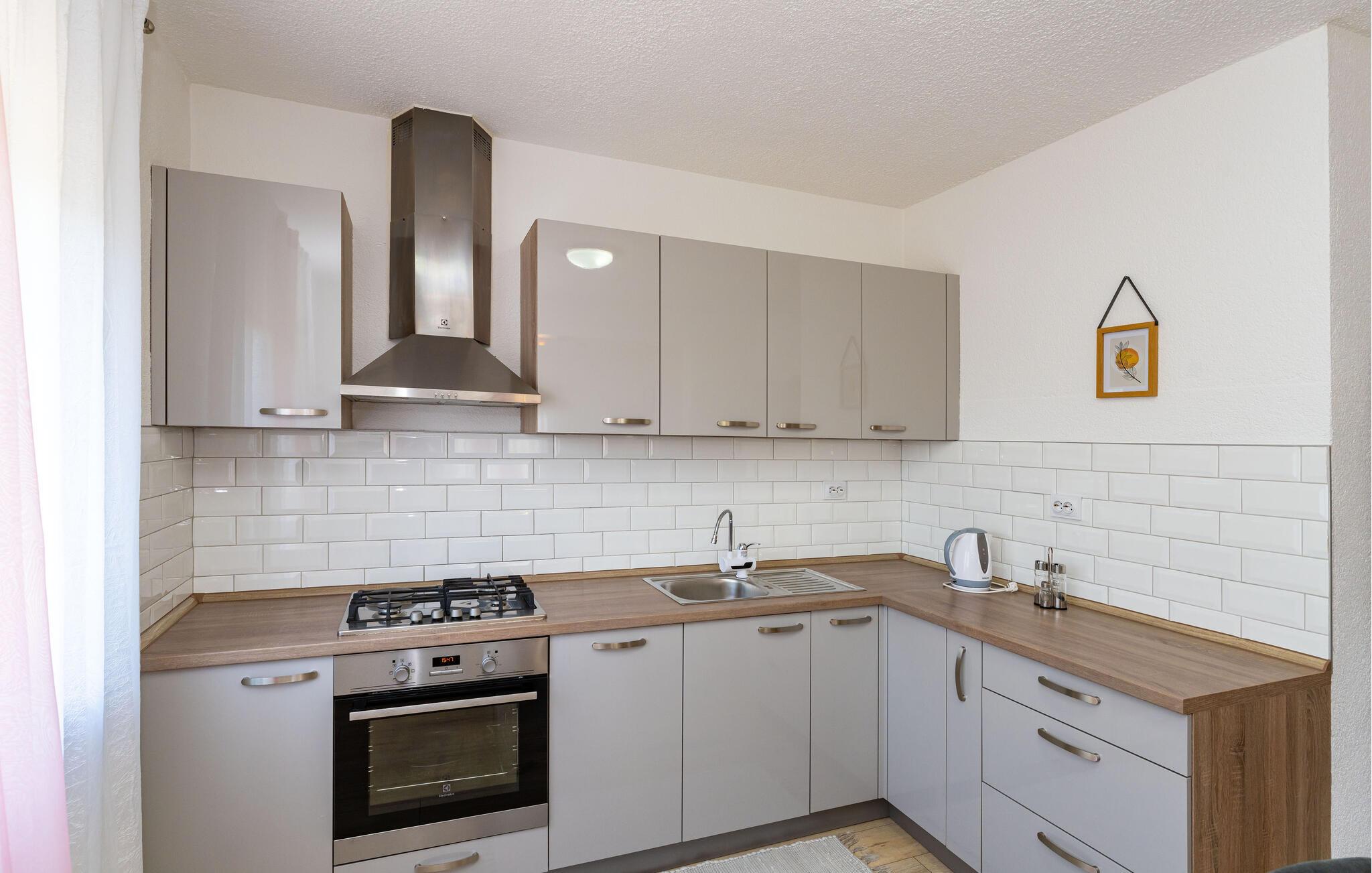 Dette indbydende feriehus ligger mellem Gornji Karin og Susnajara og med boligen fordelt på første sal. Anden sal er der ikke adgang til, men I må gerne bruge terrassen. I husets bagerste del ligger tavernen med grill, hvor I kan hygge jer sammen mens der laves mad. I tilbygningen ligger der et tredje soveværelse. Tag på en dagsudflugt i den historiske by Zadar med talrige kulturmindesmærker og mange gode restauranter samt attraktionerne Hilsen til solen og havorglet. For de aktive kan vi anbefale at rafte på floden Zrmanja i Obrovac, der ligger tæt på.