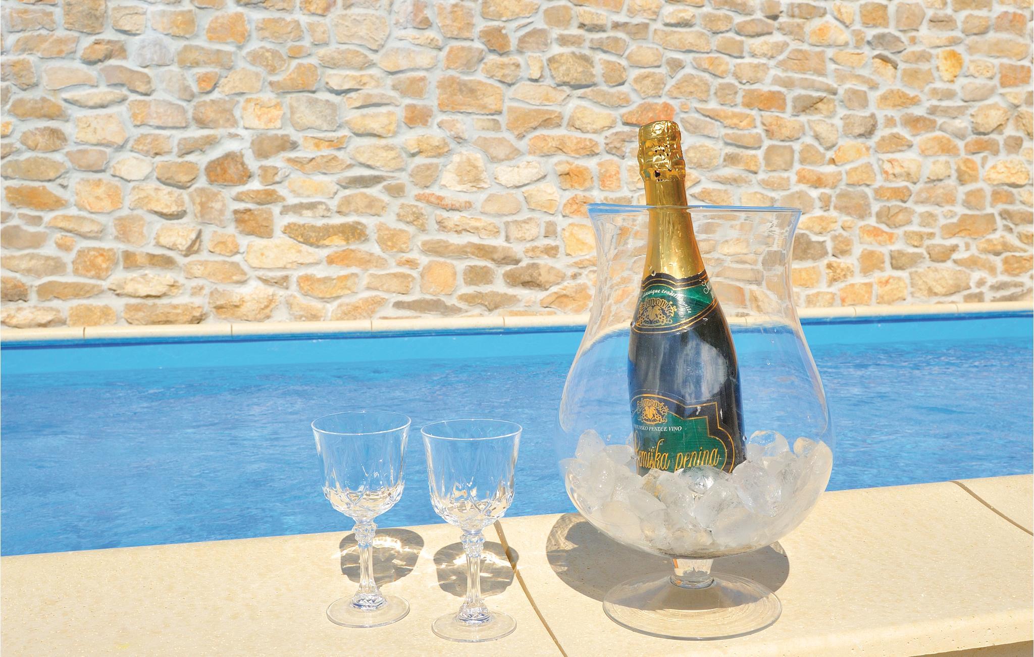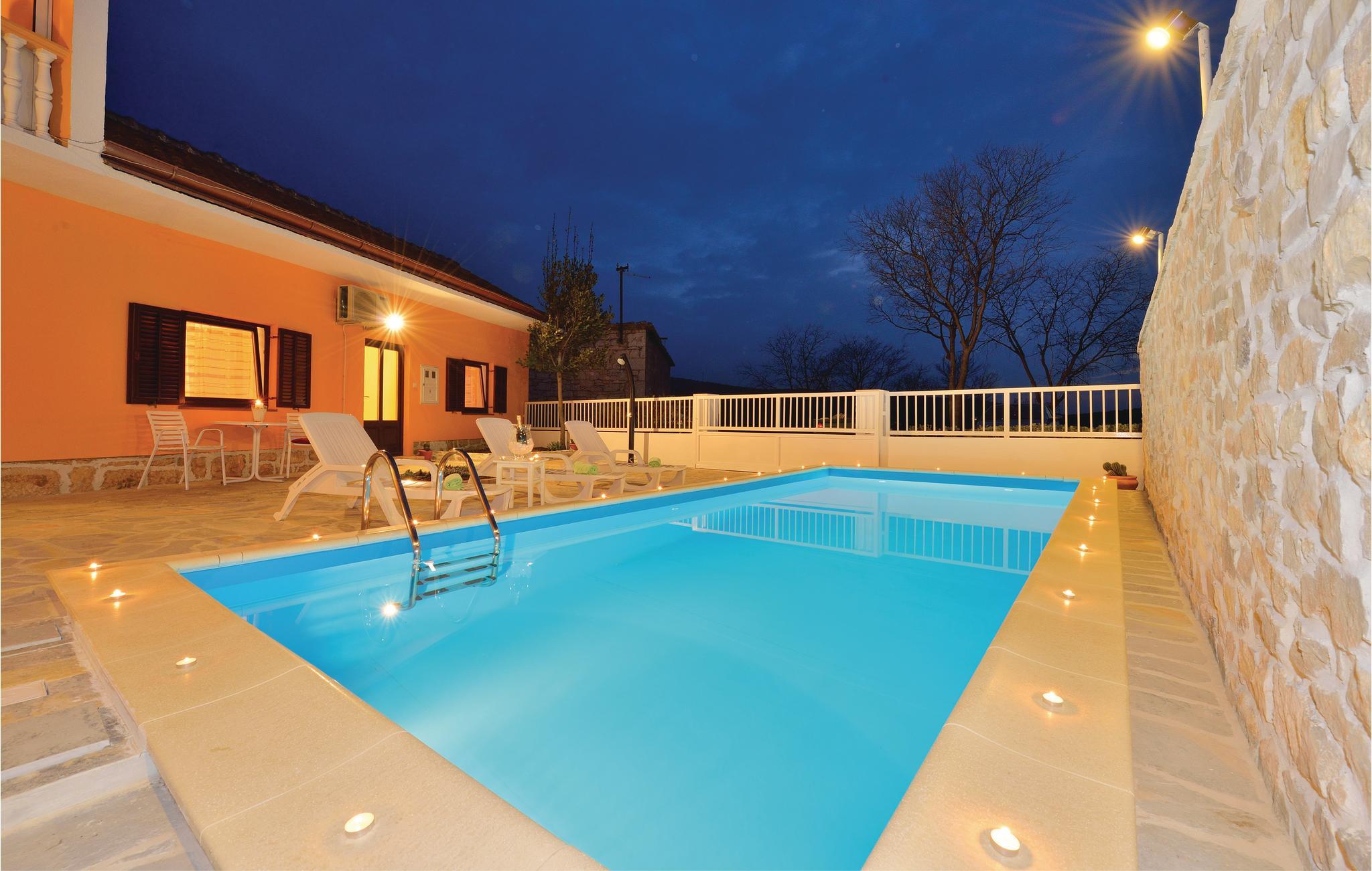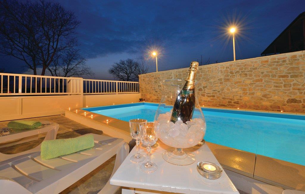 Dette dobbelthus med swimmingpool ligger i Krusevo og er opdelt i to separate boliger. En bolig ligger i stueetagen og er indrettet med et badeværelse og tre soveværelser. Et af værelserne er et gennemgangsrum, da det også har adgang udefra. Ligeledes i stueetagen findes et grillrum med separat indgang, lige ved siden af ligger garagen og via en udendørs trappe kommer I til 1. etage. Her er der et rummeligt køkken med spise- og opholdsstue samt en overdækket terrasse med udsigt til poolen. Til skønne ferieoplevelser hører rafting på floden Zrmanja og at se vandfaldet i floden Bijela.