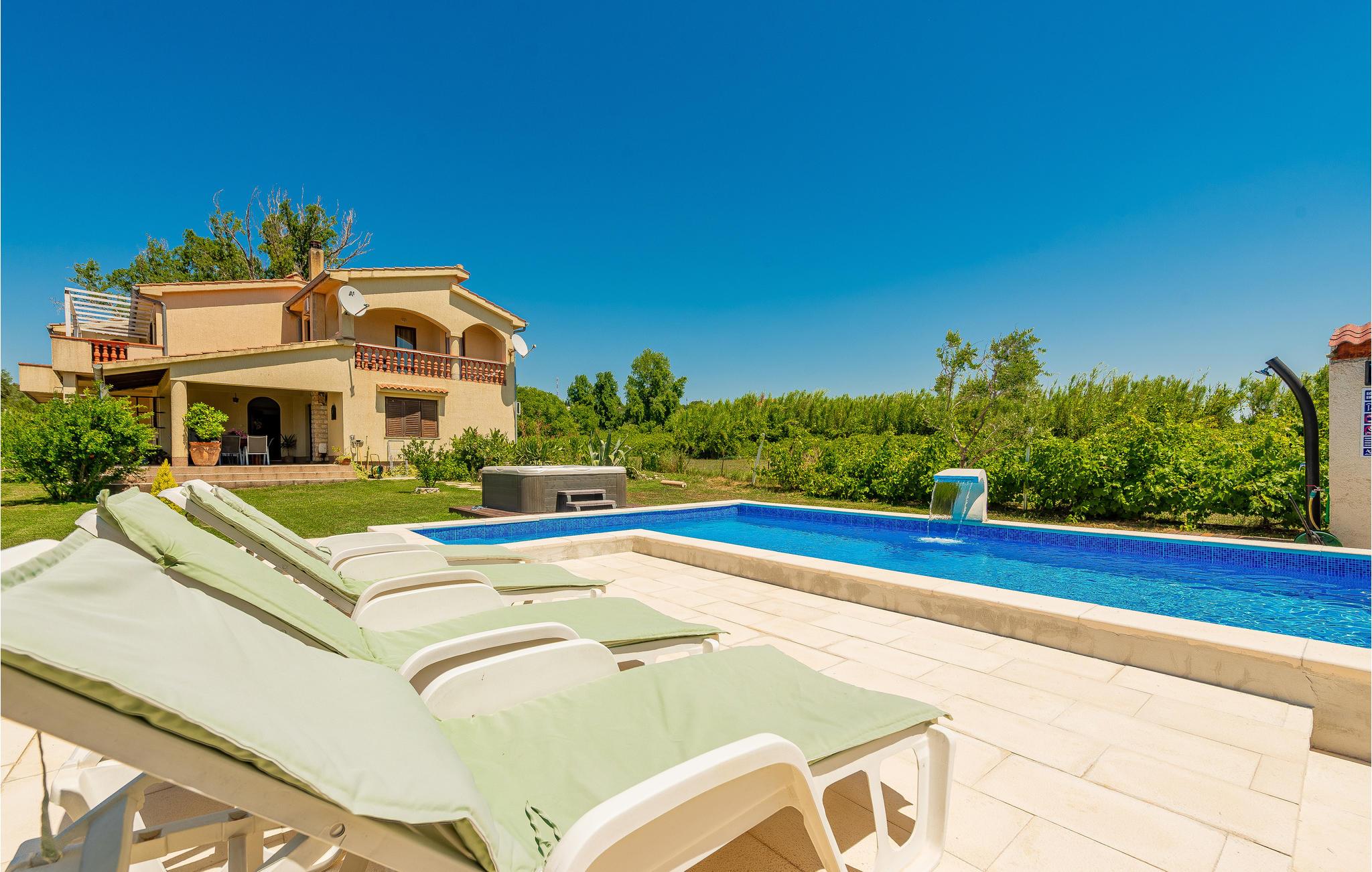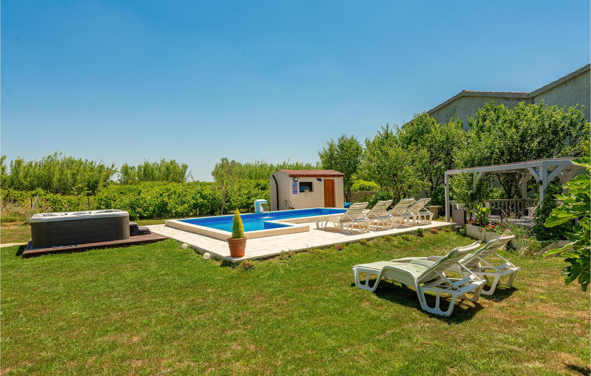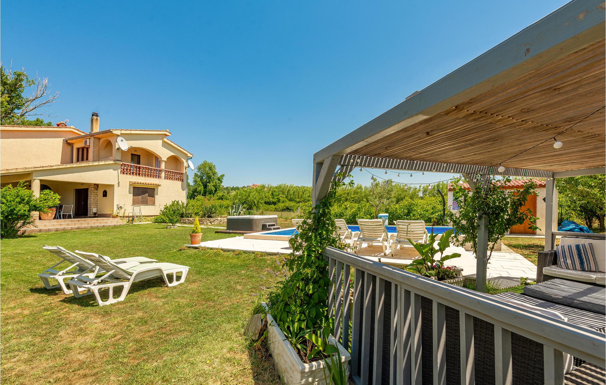 Denne feriebolig består af en rummelig ferielejlighed i stueplan samt tre små ferielejligheder på øverste etage. Den luftige, lyse og smukke indretning, giver de perfekte rammer til en rigtig afslappet ferie. Husets pool er oplagt til de lange varme sommerdage, svøm, leg og pjask. På terrassen er der god plads til hyggelige grillfester, mens de små i familien kan lege i haven. Besøg den historiske by Zadar med en spændende gammel bydel med mange taverner og restauranter. Naturelskere vil blive henrykte over den skønne nationalpark Paklenica