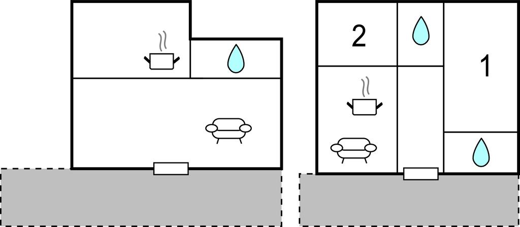 Soveværelse 16m2 (nr. 1) - 1 Soveplads. (Enkeltseng(e)). 2 Sovepladser. (Dobbeltseng(e)).